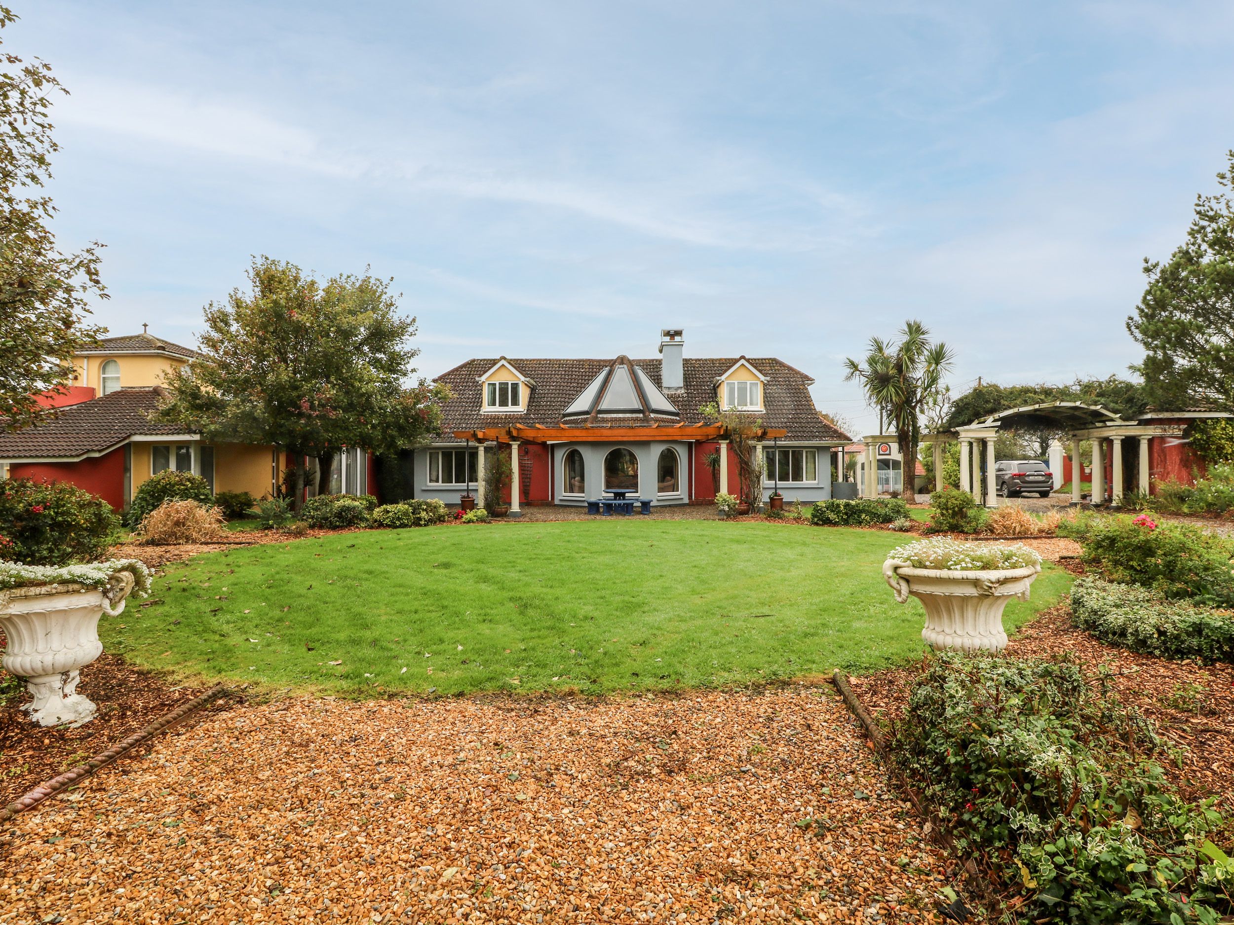My dad booked this house for our whole family after missing so many big family occasions over the past few years. It was unreal and will absolutely leave you with questions! The hone itself is full of influences from Spain and clearly they love art and craft. The rooms were perfect sizes and we were provided with travel cots and highchairs. It was a well stocked, warm and clean house that had a welcome package with breakfast for us all. The owners were fantastic when quizzed over the history of the house (it is well worth seeing!). They were friendly without being intrusive and checking and check out we're seamless. The grounds are what really made this for us. With a number of children ranging in ages, there was something for everyone; playgrounds, a maze, sculptures, statues, fairy houses, Japanese garden with seating area and a wonderful walk down to the lake where you couldn't help but hear the birds. We rarely left the estate and had the most wonderful time together....but also had space by finding a new little space to read etc. It is so close to Carne beach which is stunning and the shops on the campsite there have just opened. Rosslare is a stones throw and was handy for us returning to the UK. Cannot thank the owners enough and absolutely well worth a visit!
