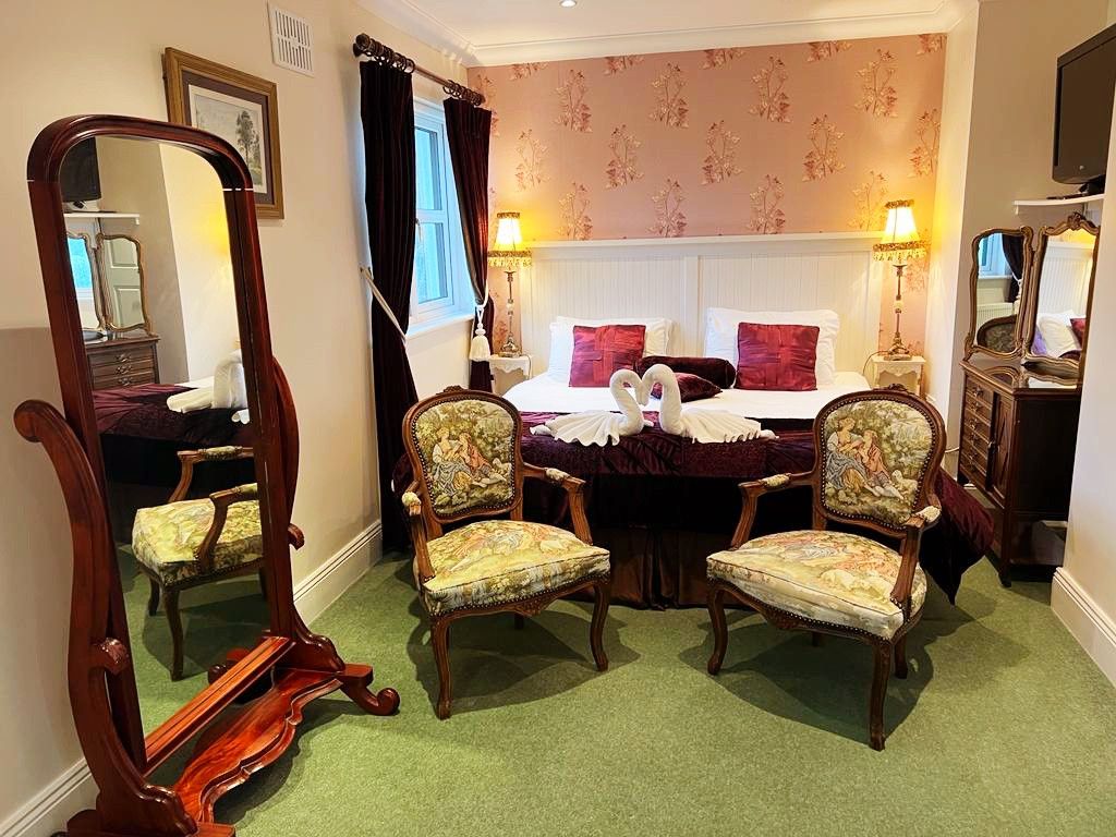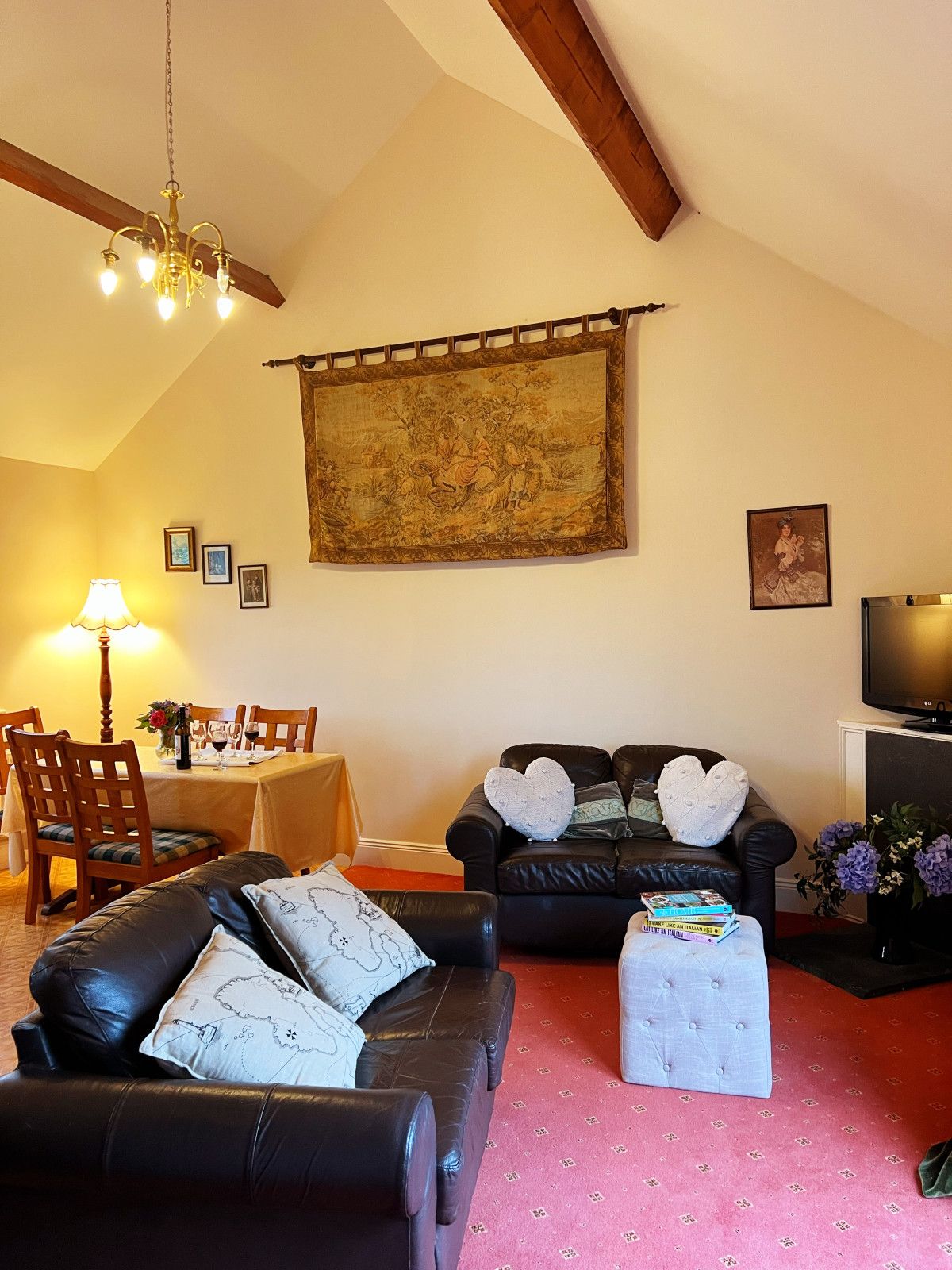 Our Milking Parlour self catering first floor apartment has three tastefully designed bedrooms all with a shower ensuite, along with a kitchen, living/dining area that offers stunning views of Carrick Mountain. There is a Juliette balcony where guests can enjoy the wonderful views of the herb and fruit garden below.