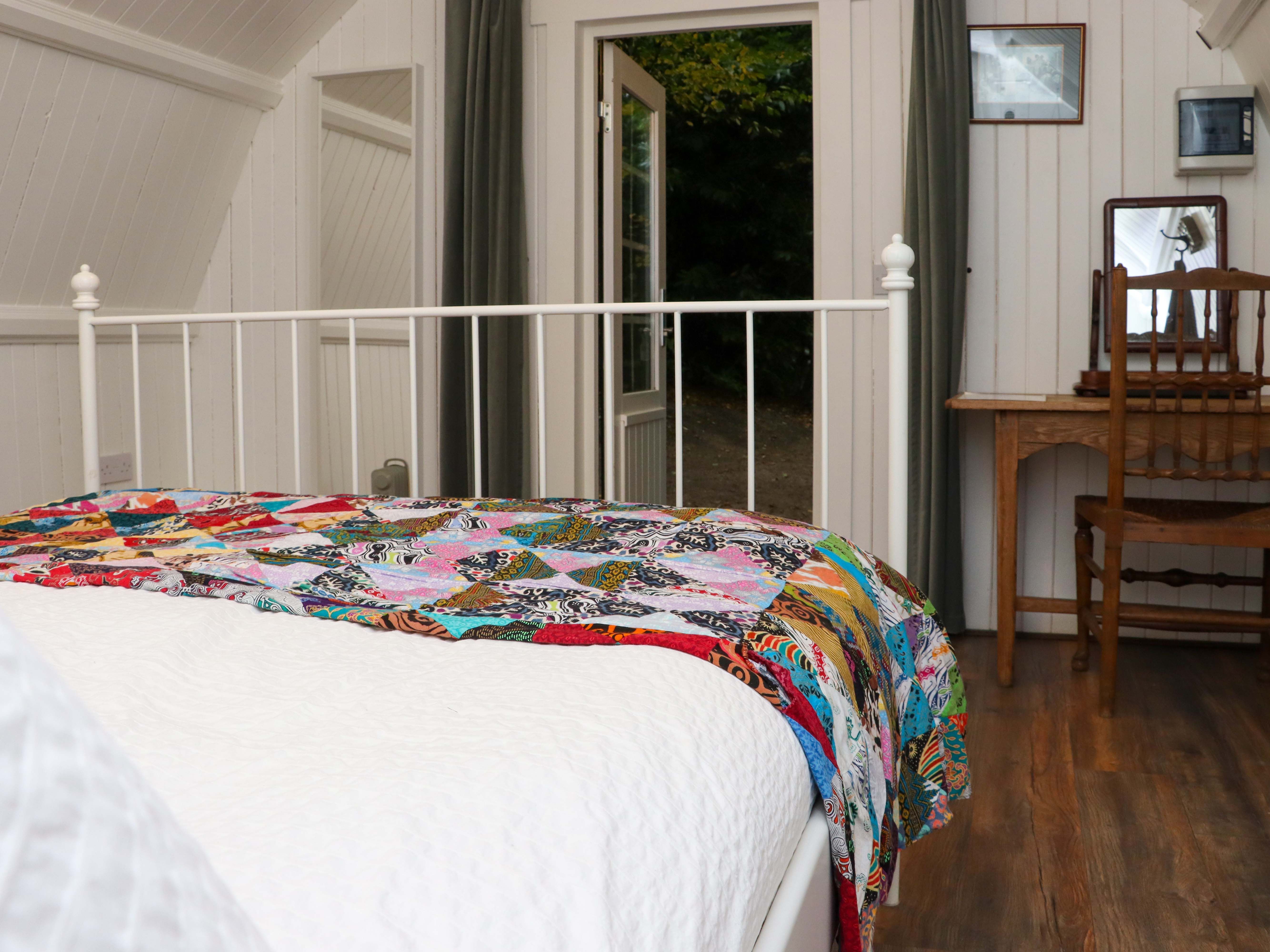 Holiday home Ballybeg Pod 8 is a studio-style pod, consisting of a double bedroom and a private front decking with two chairs. Communal facilities include showers, bathrooms, and a kitchenette with an electric hob, two microwaves, fridge and dishwasher, with continental breakfast items provided in the kitchen for guests. Fuel, power, bed linen, and towels are included in the rent. Outside, there are communal gardens with lawn, numerous seating areas, a courtyard with a central fountain, a shared Canadian hot tub available upon request (subject to availability), shower facilities, and off-road parking for two cars. Travel cot and highchair available upon request. Sorry, no pets and no smoking. Shop 2.2 miles, pub 1.2 miles. Ballybeg Pod 8 is your idyllic countryside getaway. Note: Thursday/Monday check-in/out only. Note: Check-in from 3pm, check-out by 11am. Note: The pods only allow bookings up to 4 nights. Note: WiFi is limited but available in the common areas 20 yards away.