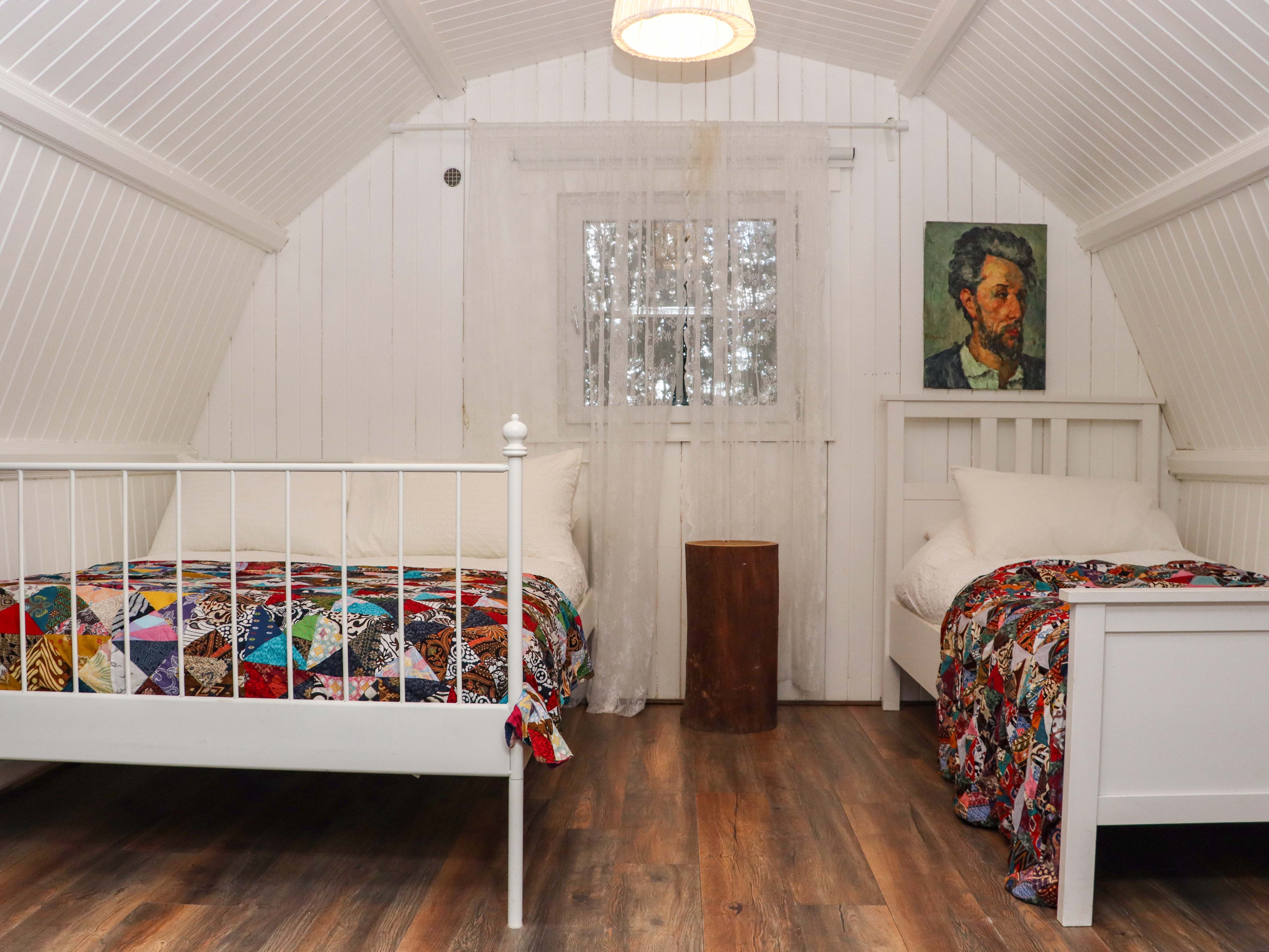 Accomodation Details Single-storey. Studio-style layout with a family room with double bed and single bed. Shared facilities, including showers, bathrooms, and a kitchenette