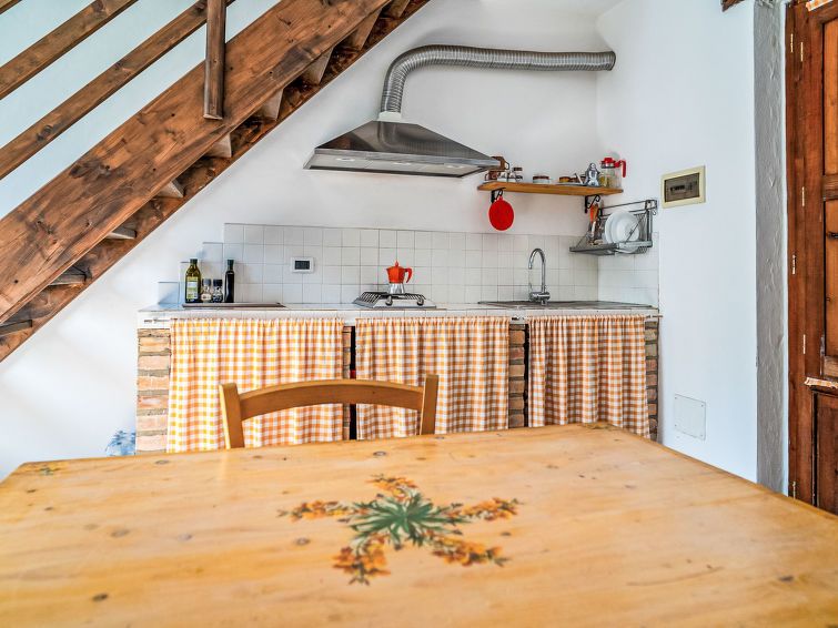 "Bilo Giallo", 2-room maisonette 50 m2. Spacious, partly with sloping ceilings, very comfortable and beautiful furnishings: living/dining room with 1 bed, TV and air conditioning. Exit to the garden, to the veranda. Open kitchen (2 hot plates, dishwasher, kettle). Exit to the garden, to the veranda.