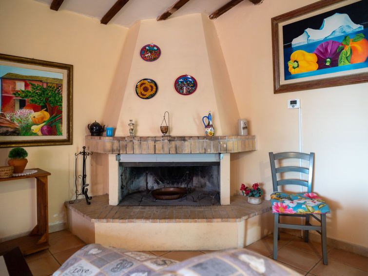 4-room villa 110 m2 on 2 levels. Practical furnishings: large living/dining room with open-hearth fireplace and TV. Exit to the terrace. Kitchen (oven, dishwasher, 5 gas rings, toaster, microwave). On the lower ground floor: 2 double bedrooms. 1 room with 2 beds. Shower/bidet/WC. Terrace 45 m2, roofed.