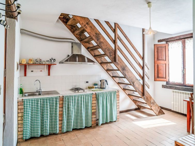 "Grappolo Verde", 2-room maisonette 50 m2. Spacious, partly with sloping ceilings, very comfortable and beautiful furnishings: living/dining room with 1 bed, TV and air conditioning. Exit to the garden, to the veranda. Open kitchen (2 hot plates, dishwasher, kettle). Exit to the garden, to the veranda.