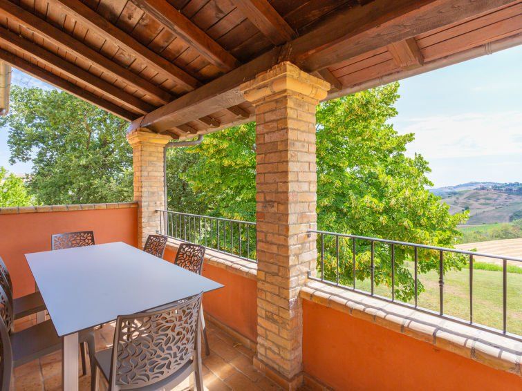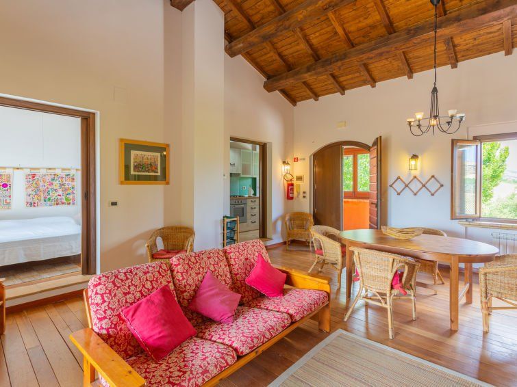 "I Due Carpini (CTT202)", 3-room apartment 60 m2 on 1st floor. Beautiful and cosy furnishings: upper floor: (exterior staircase) living/dining room with Scandinavian wood stove, dining table and satellite TV. Exit to the balcony. 1 room with 1 french bed (160 cm). 1 room with 1 bed and 1 french bed (160 cm).