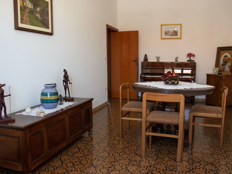 "Patrizia", 5-room apartment 120 m2 on 1st floor. Practical furnishings: living/dining room with 1 sofabed and library. 1 double bedroom. Exit to the balcony. 1 room with 2 beds. 1 room with 1 double bed. Large kitchen (Gas stove, 4 gas rings, kettle). Bath/bidet/WC. Gas heating, boiler.
