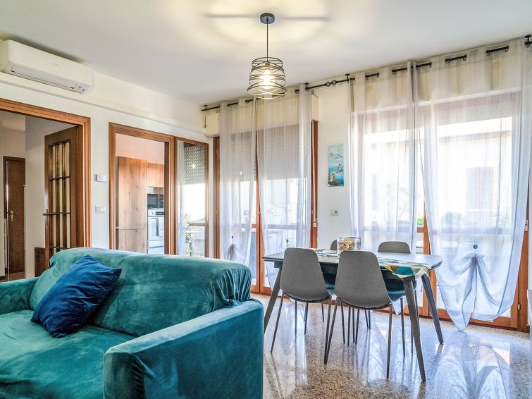 "Giulianova Sea Side", 3-room apartment 70 m2 on 2nd floor. Very: living/dining room with 1 sofabed and air conditioning. 1 double bedroom. 1 room with 2 beds. Kitchen-/living room (5 gas rings, kettle, microwave) with TV. Exit to the balcony. Shower/bidet/WC. Heating. Facilities: washing machine.