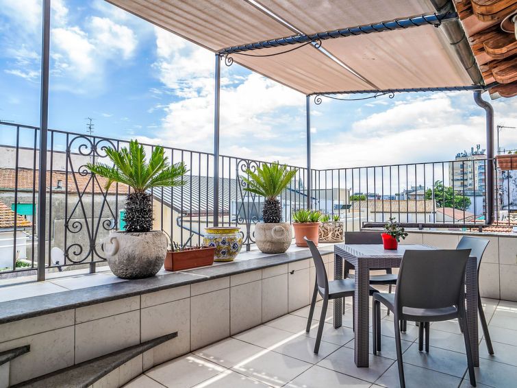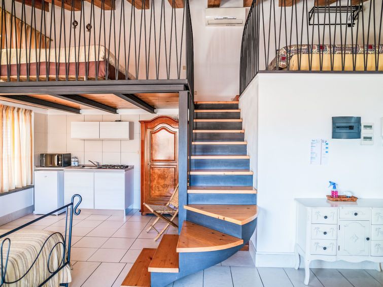 "Roof", 2-room apartment on 3rd floor. Very comfortable and cosy furnishings: living/dining room with 1 double bed, TV and air conditioning. Exit to the balcony. With sloping ceilings with 1 bed and 1 double bed. Kitchenette (4 gas rings, kettle, electric coffee machine). Exit to the balcony.
