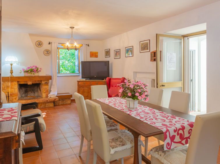 "Le Querce (PIT550)", 5-room house 180 m2 on 2 levels. Rustic furnishings: living/dining room with open-hearth fireplace, dining table and TV. Exit to the garden. 1 room with 1 double bed. Kitchen (oven, 4 gas rings, microwave, freezer) with dining table and dining nook. Shower/WC.