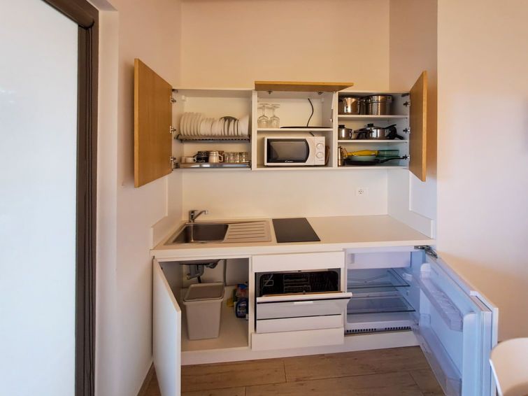 "Roseto Apartments Trilo 1", 3-room apartment 55 m2, on the ground floor. Object suitable for. Very practical and beautiful furnishings: living/dining room with TV and air conditioning. Exit to the garden, to the patio. 1 double bedroom. 1 room with 2 beds. Open kitchen (dishwasher, 2 induction hot plates, microwave).