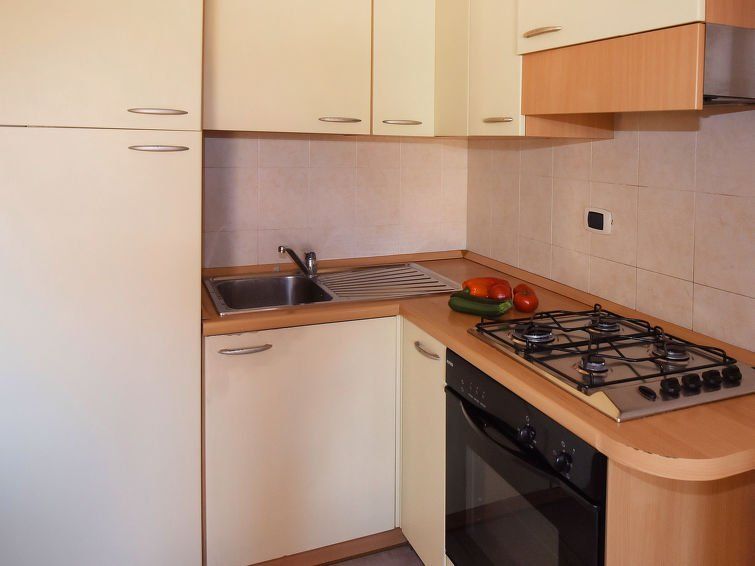 1-room studio 30 m2. Practical furnishings: living/dining room with 1 sofabed, 1 double bed and TV. Exit to the terrace. Kitchenette (4 hot plates, oven, freezer). Shower/bidet/WC. Balcony. Balcony furniture. View of the sea. Facilities: washing machine. Internet (WiFi, free). Maximum 1 pet/ dog allowed.