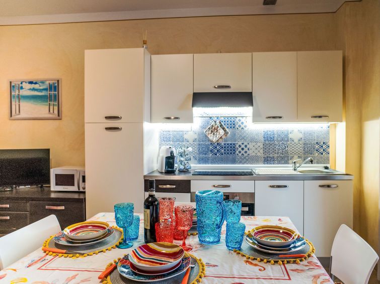 "Tortoreto Vista Mare 1", 2-room apartment 45 m2, on the ground floor. Comfortable and beautiful furnishings: living/dining room with 1 sofabed and air conditioning. Exit to the terrace, pergola. 1 double bedroom. Exit to the loggia. Kitchenette (4 hot plates, oven, dishwasher, toaster, kettle, electric coffee machine) with TV.