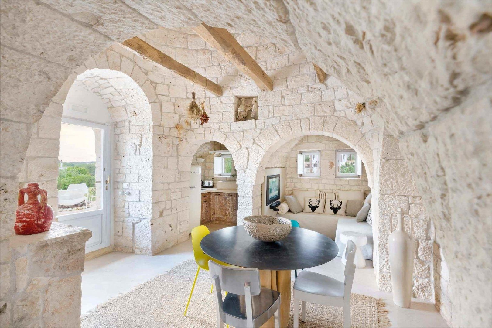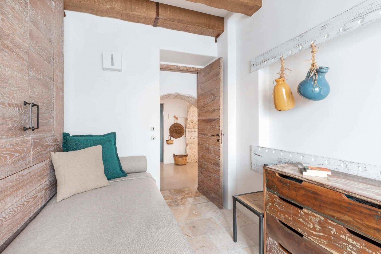 Outside, ancient olive trees encircle the pool, and a poolside cabana offers respite from the midday sun plus plenty of comfortable seating and a well-equipped outdoor kitchen so you can make the most of your glorious location in the heart of the Valle d'Itria.