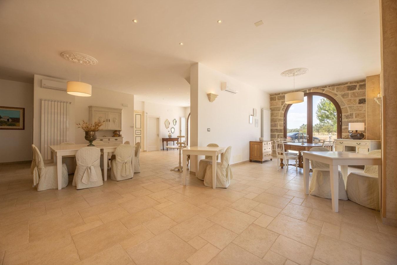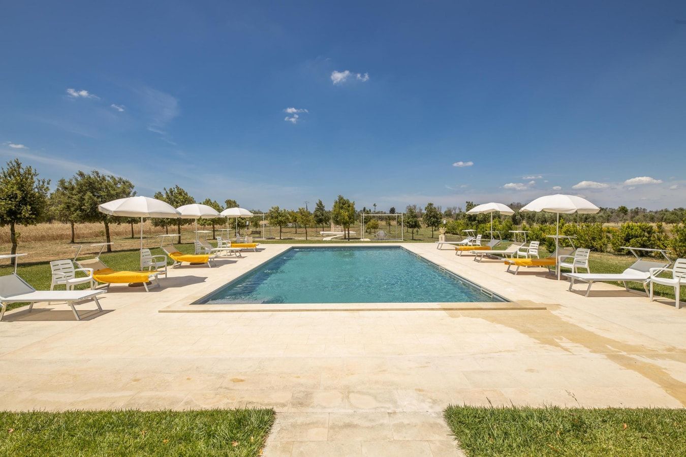 Nestled between Lecce and Gallipoli in the idyllic Salento countryside, this beautiful five bedroom home sits on a verdant 20,000sq/m estate. The villa contains a sprawling living area, a charming kitchen for experimenting with Puglian produce, and an en-suite for every bedroom. Out on the grounds, guests can enjoy a bottle of Primitivo in the shade of the terrace, or spend their days lounging and making a splash by the stunning private pool. Though the villa is certainly remote, both the Ionian and Adriatic seas are a 35-minute drive away, while the nearby province of Cutrofiano is renowned for its ceramics and craft tradition.
