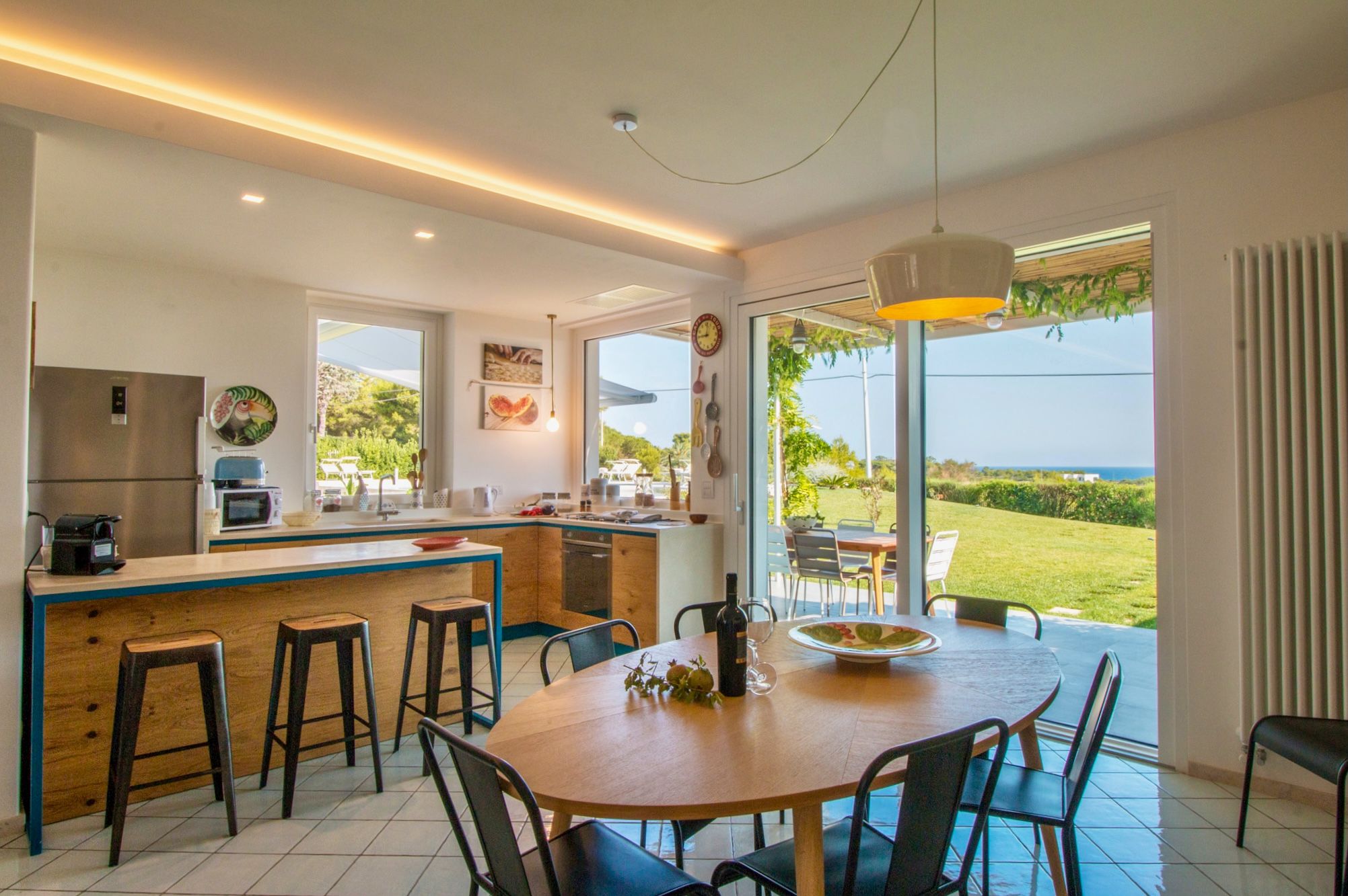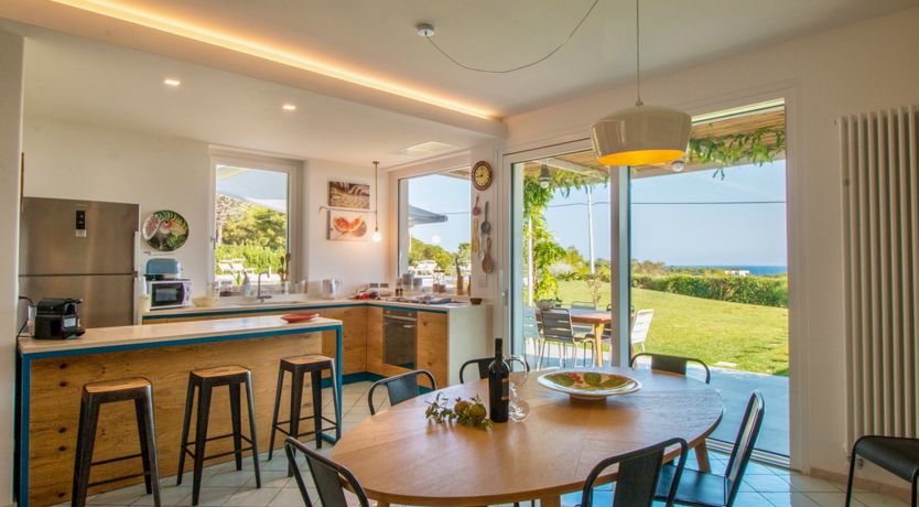 Behind the rich Mediterranean vegetation of vines, flowers, fruit trees and ornamental plants growing in the garden – prepare to be mesmerized by the sea blue views in the distance. With such a prime location, be on the beach in just five minutes as the villa resides only one kilometre from the sandy stretches of Capitolo with a wealth of restaurants, clubs and bars. To enter the home, you'll have access past a luscious garden adorned with trees and plants or the option to walk around to the entrance by the pool and via the outdoor living area featuring comfortable seating and an alfresco dining area with a barbecue. Inside, you'll find open space –ensuring a sociable stay and one where guests can enjoy the experience as a group. Gather around the living area for an evening aperitif after a day in the sun or come together to cook an authentic Italian meal together in the kitchen/ dining room corner. With stunning sea views from the bedroom upstairs, you may end up fighting over who gets the master suite, but let's face it, in reality, everyone is a winner when staying in this blissful hideaway.