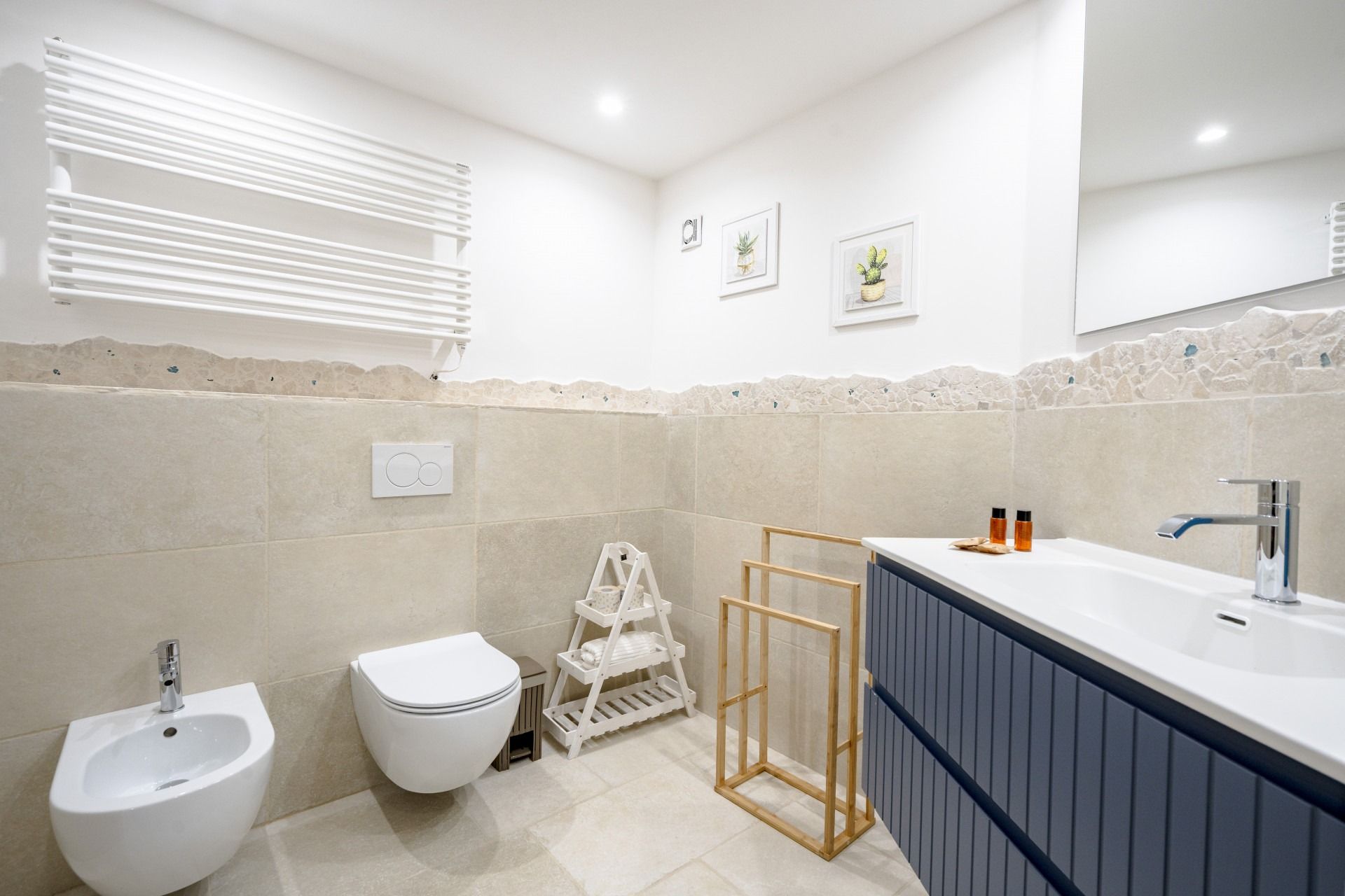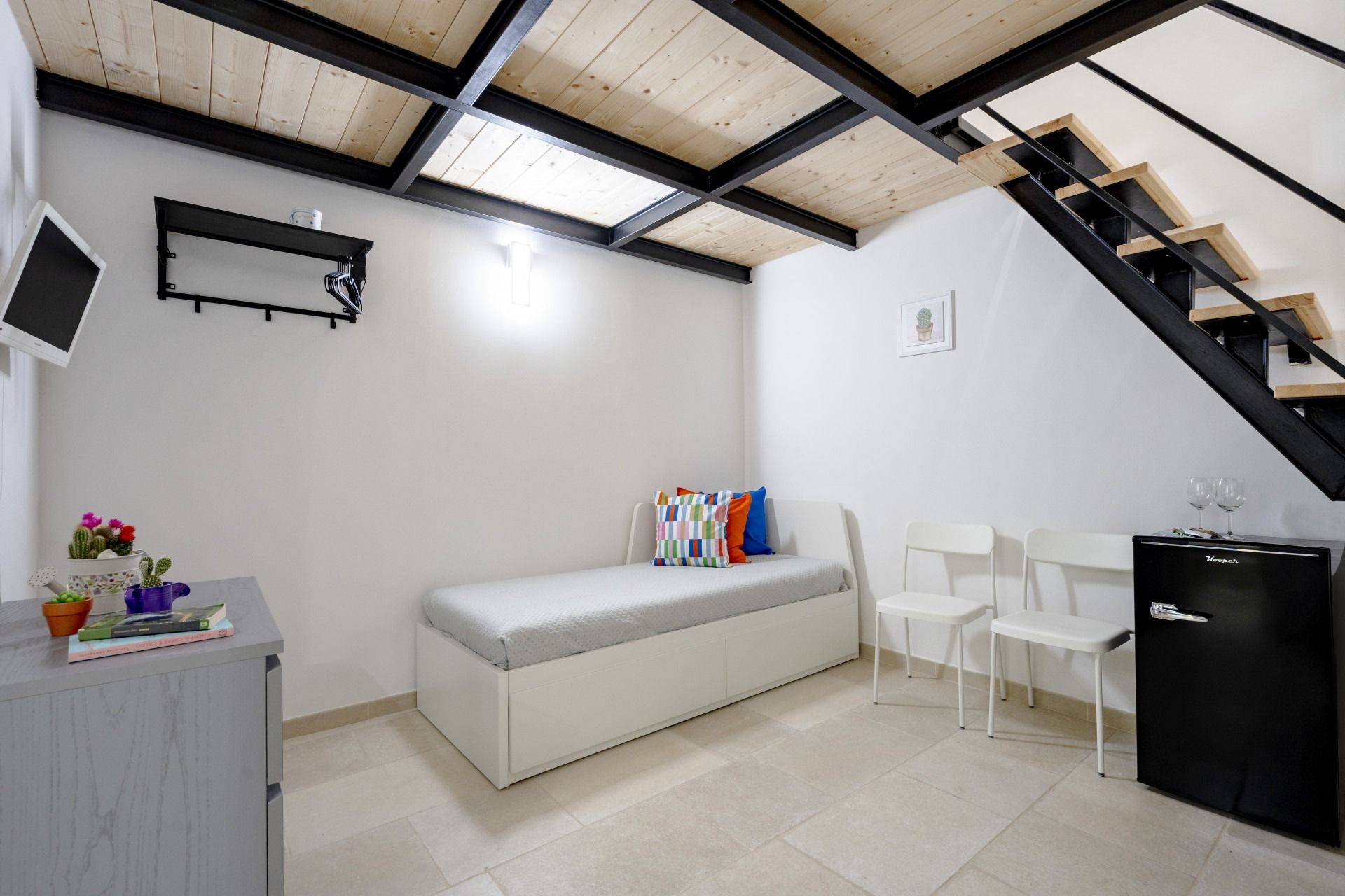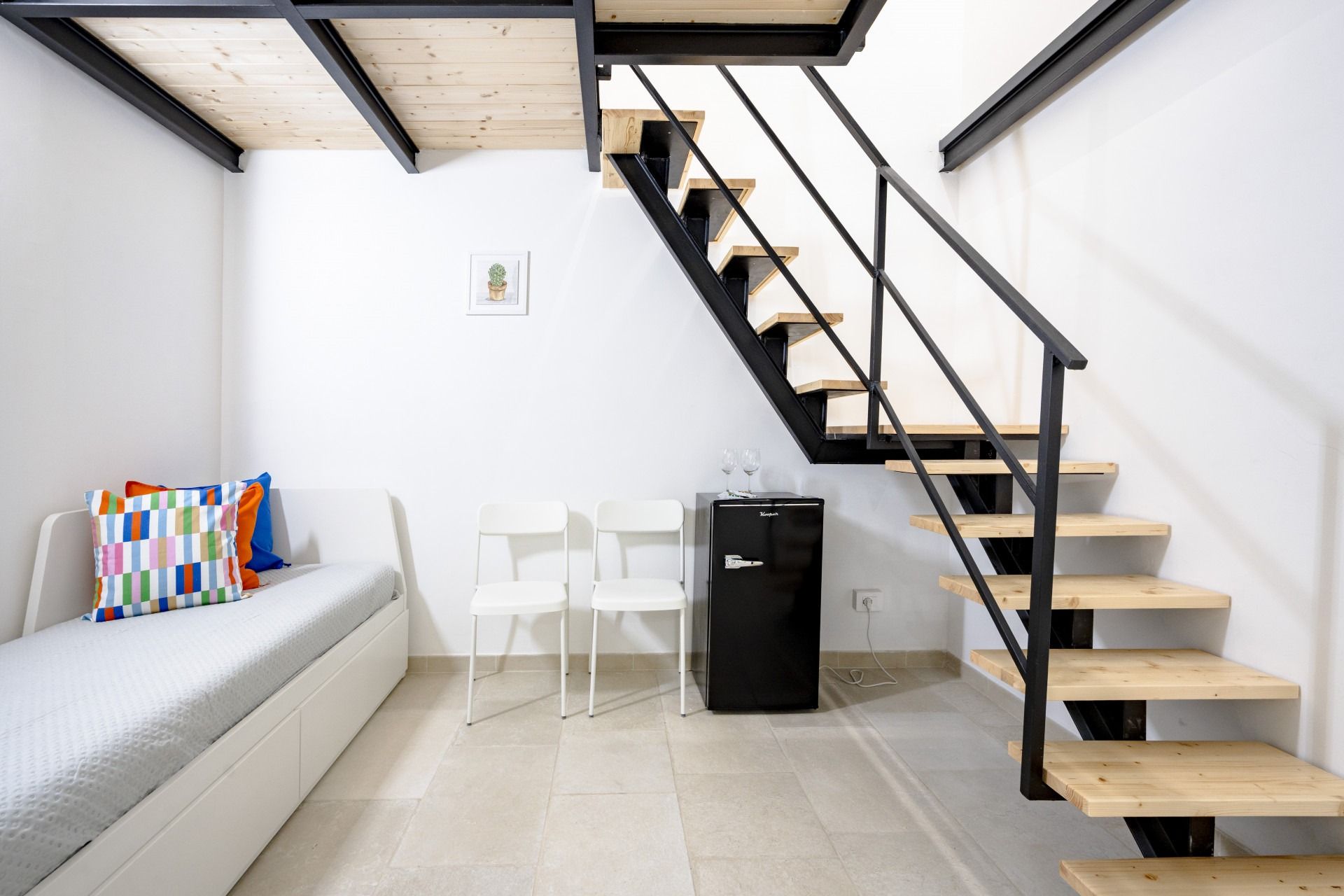 This home is small in size, but it packs quite a punch. And, while the main bedroom is on a mezzanine and the third guest will be on the single sofa bed in the living room – meaning privacy is limited – for a short city break, there's a lot to be said for it. It's worth noting that the kitchen is compact, but with so many great cafes, restaurants, bars, and nearby, chances are you'll be out enjoying the local cuisine or savouring a light bite on the shared patio.