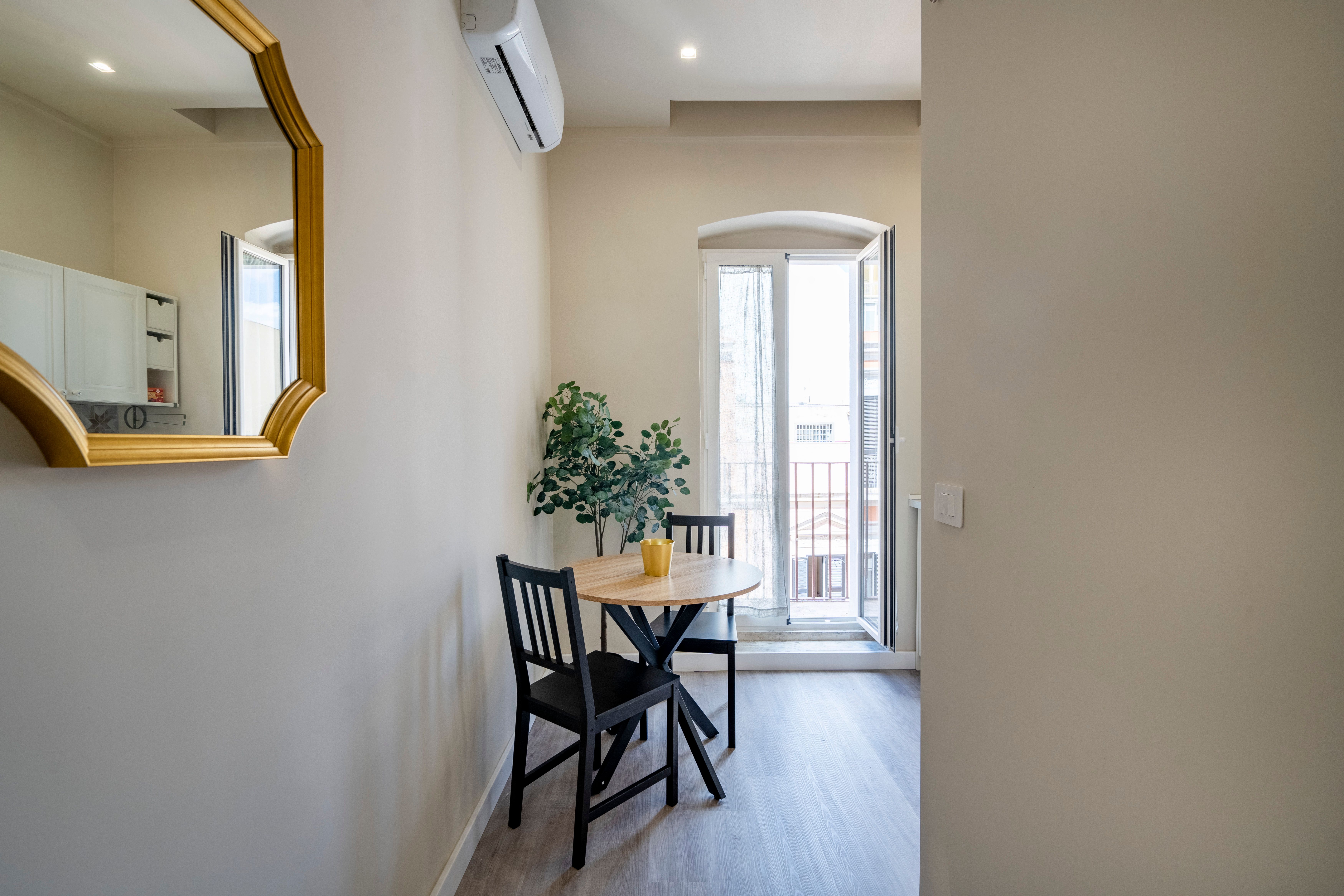 This stylish apartment in the heart of Bari is ideal for couples or solo travellers looking to enjoy the local culture and cuisine. While compact, the space is thoughtfully designed for a convenient stay. Located on the third floor of a classic building, there’s no lift, and the stairs are steep. But once you're up, you can relax, open the balcony door, and plan your Bari adventure in comfort. It’s a practical and cosy base for exploring all that Bari has to offer, including the Old Town and seafront, just a 20-minute walk away.