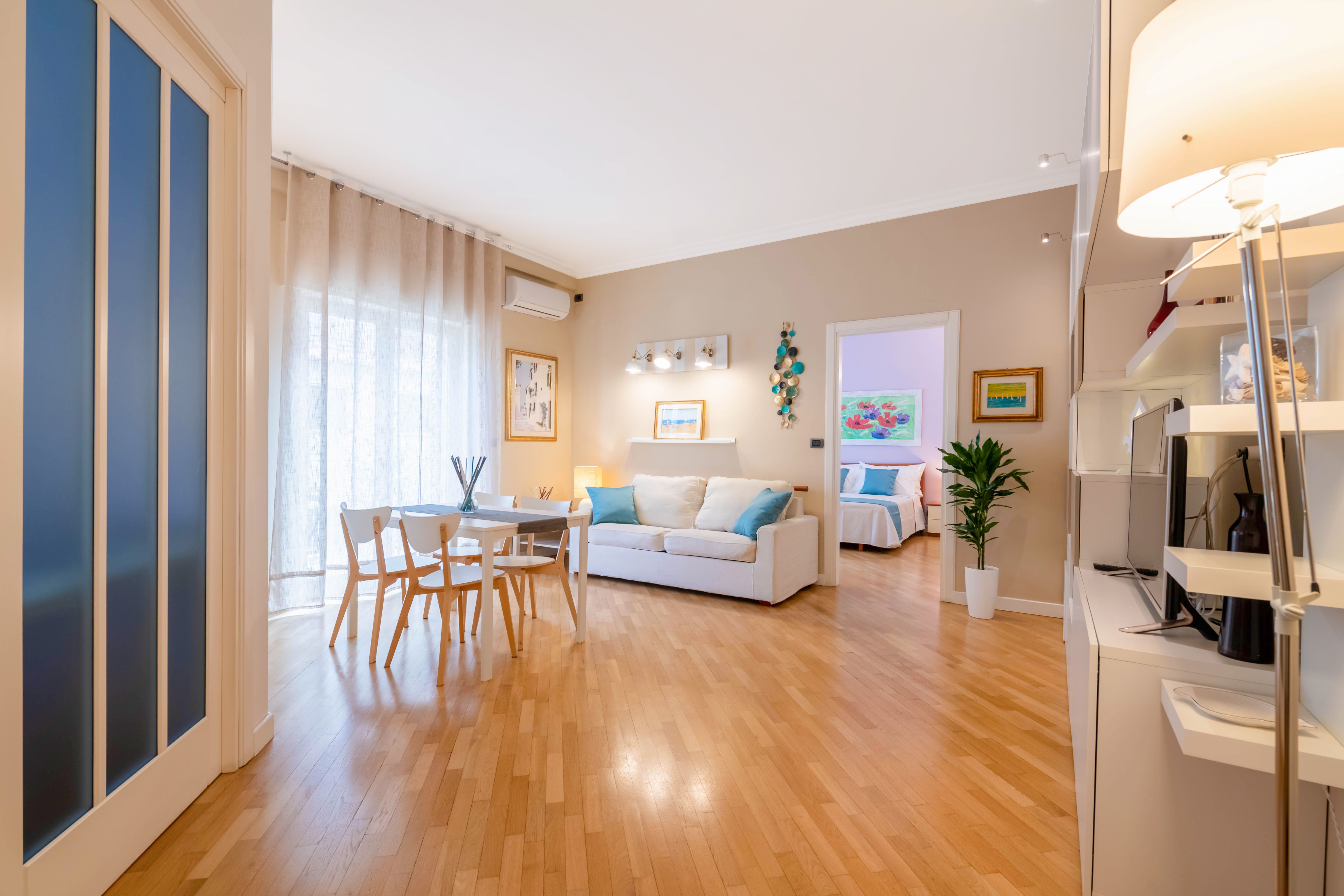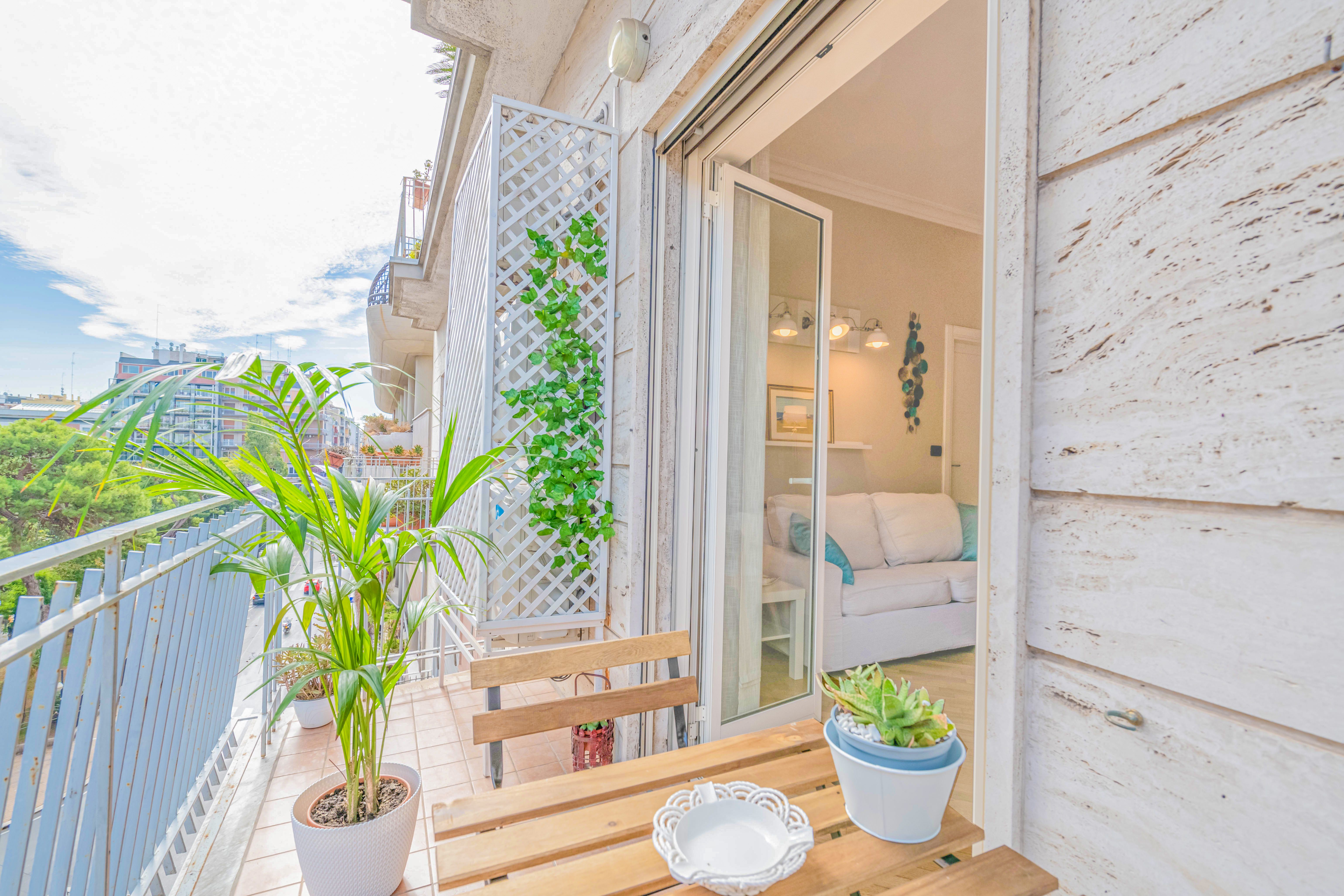 This apartment is located in the heart of Bari, a city adorned with winding streets rich in restaurants, shops, and historical sights. Being right in the centre of the action, this place is ideal for those who want to spend their days discovering the surroundings. The property itself is equipped with all the essentials for a comfortable stay, and the double sofa bed in the living room – which adds another two to the guest count – is handy if you're travelling as a group. Although the real highlight here is the private balcony, which offers views over Piazza Garibaldi.