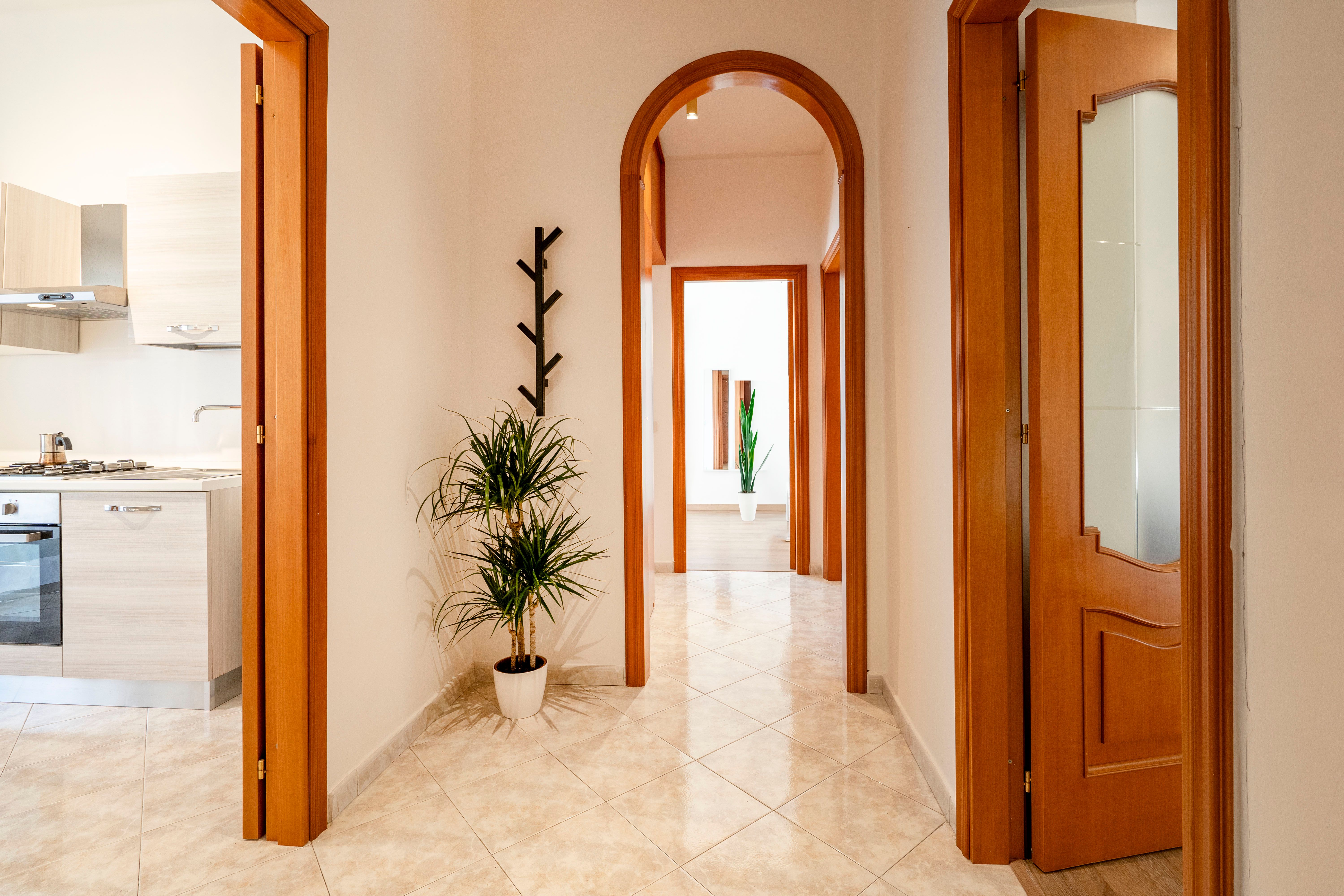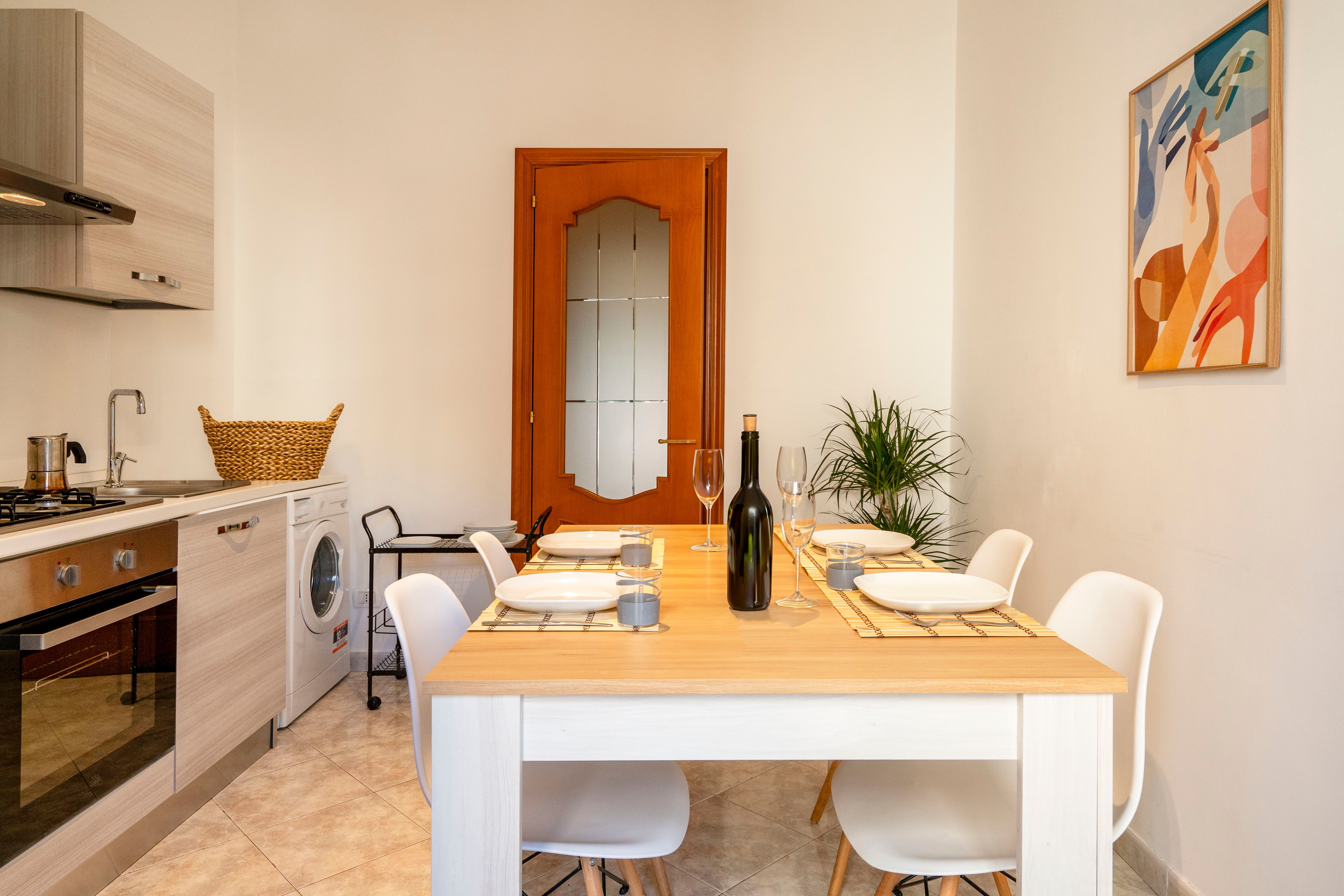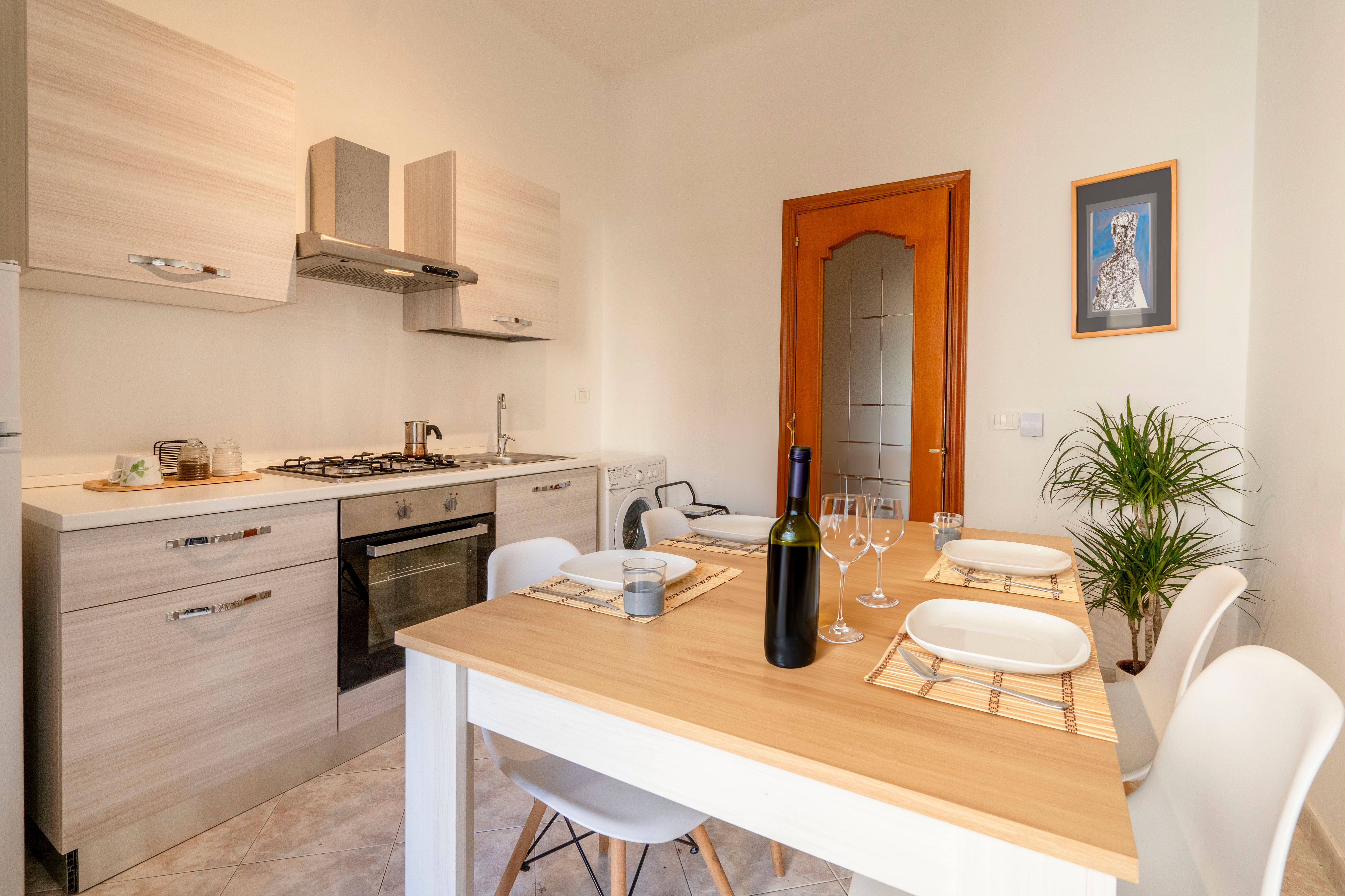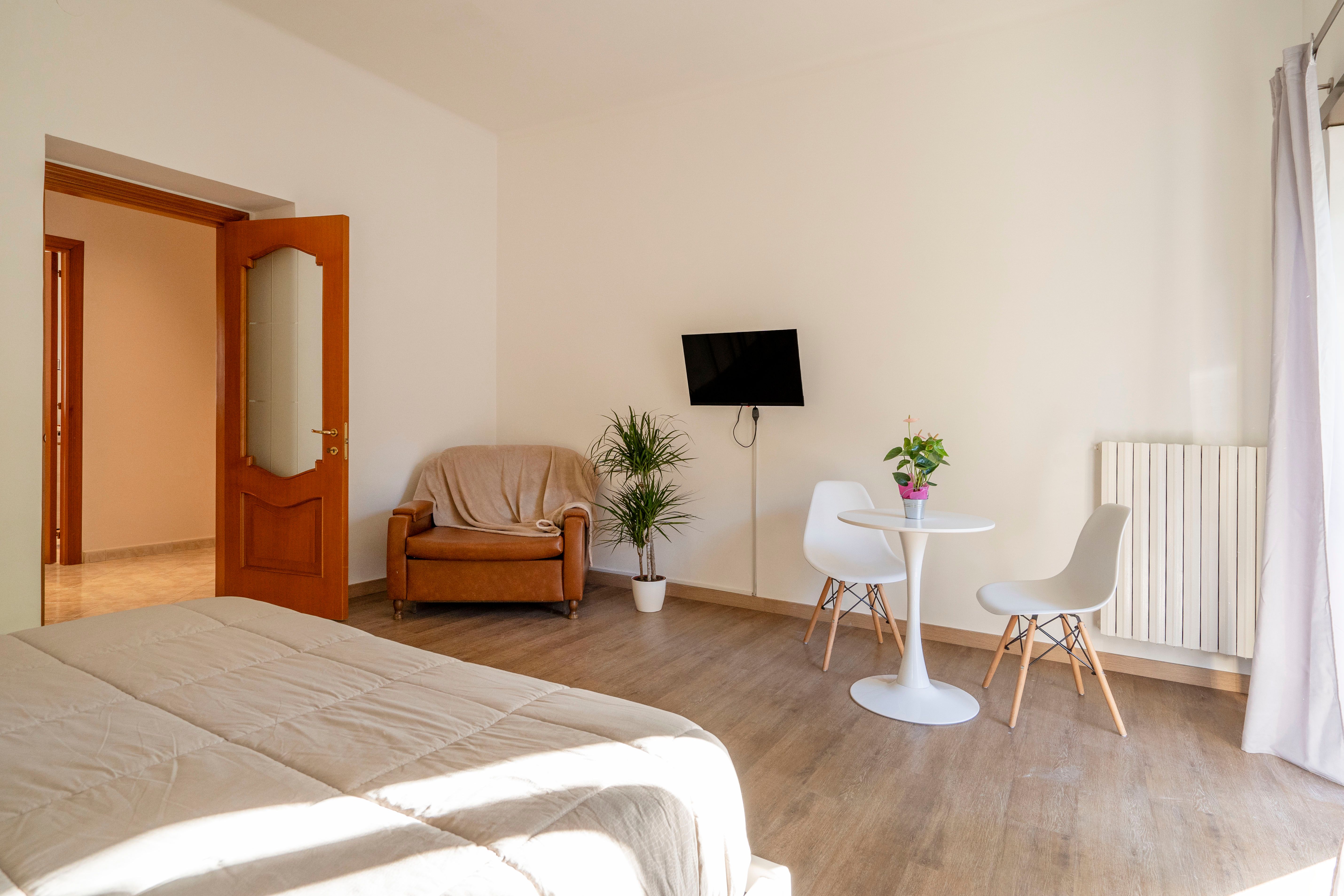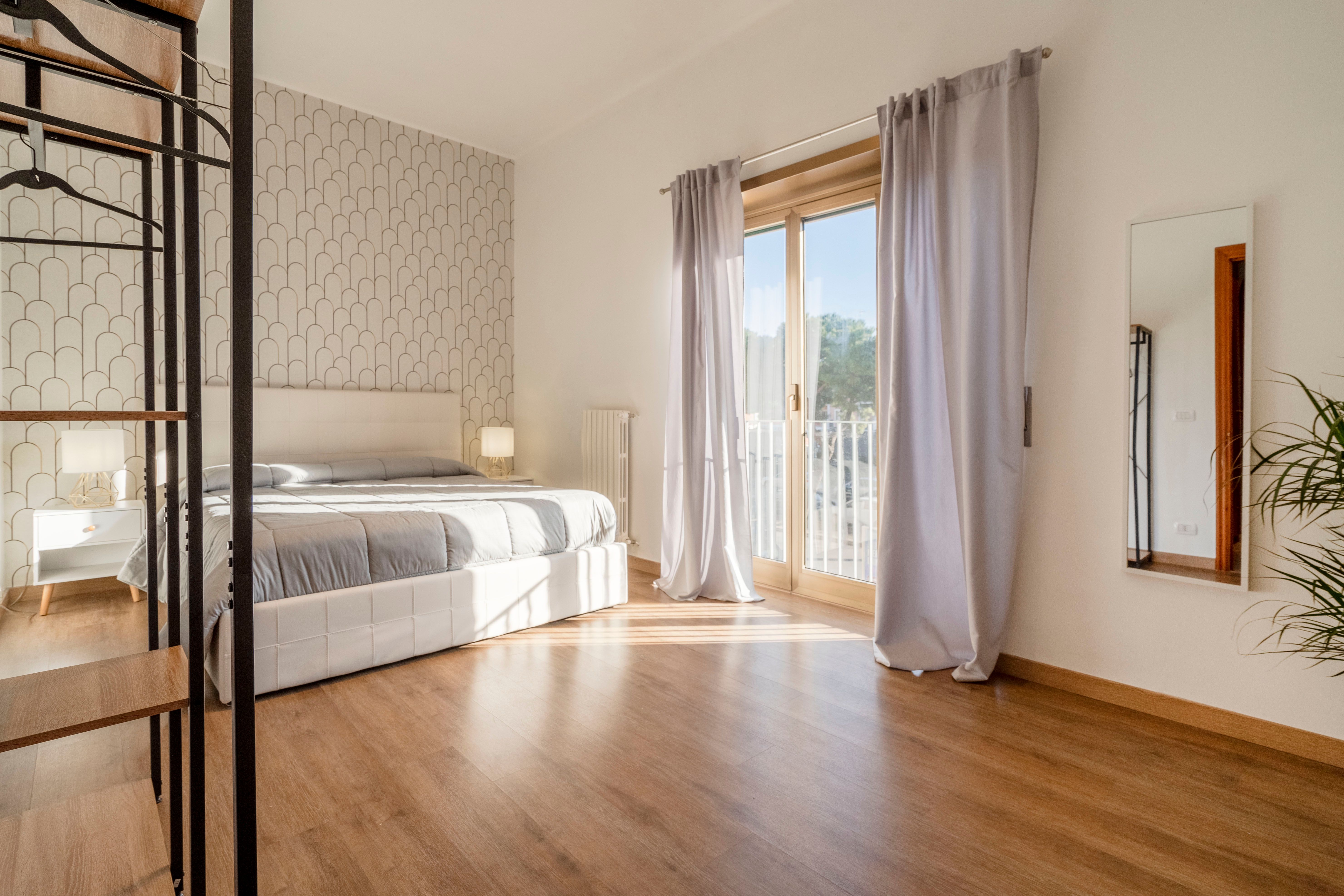 This bright, high ceilinged apartment is a comfortable and convenient option for travellers visiting the ever vibrant city of Bari. With three bedrooms to split across four guests, you can choose a configuration that best suits your party, with each room offering plenty of space and lots of Puglian sunlight. Though there's no recognised living area, you'll be able to draw up plans and try out some local recipes in the well stocked kitchen, as well as socialise out on the private balcony. The Adriatic coastline is around a forty minute walk north, passing through the bustling city centre, while Bari's pristine location means day trips to Polignano a Mari, Monopoli, and other coastal gems are firmly on the table.