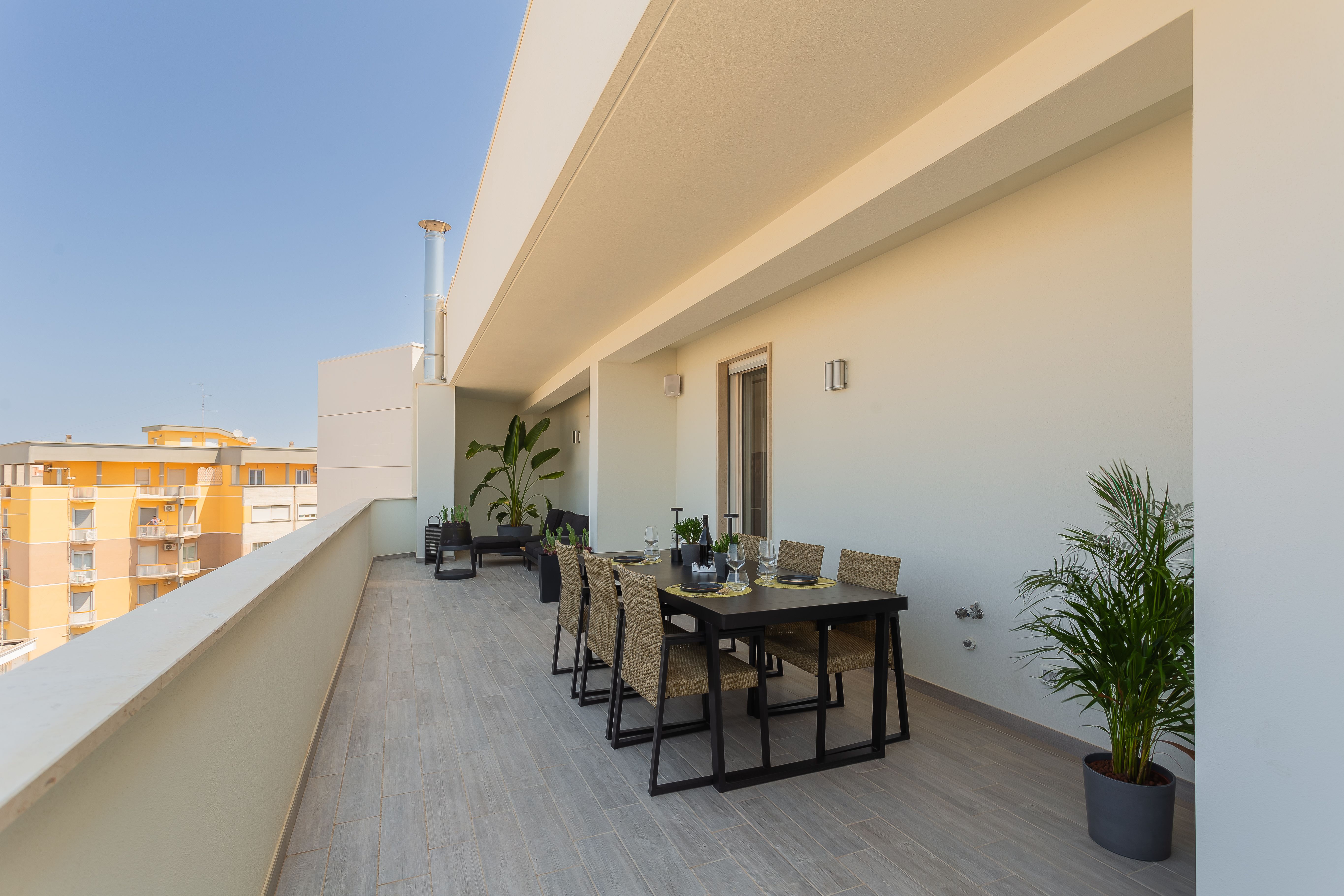 You're well placed to explore all of Puglia's best bits from this Bitonto apartment. The Old Town’s authentic restaurants and lively bars are just a stroll away, and the paid on-site parking makes day trips to nearby Alberobello and Bari easy. Back home, the polished interiors speak for themselves, and both bedrooms are flooded with natural light thanks to the direct balcony access. It’s worth noting that the kitchen is compact and only suitable for rustling up lighter bites, and seating at the breakfast bar is limited. But it’s the alfresco dining table and sofa where we think you’ll spend most of your time. The sunset vistas over Bitonto are a knockout.