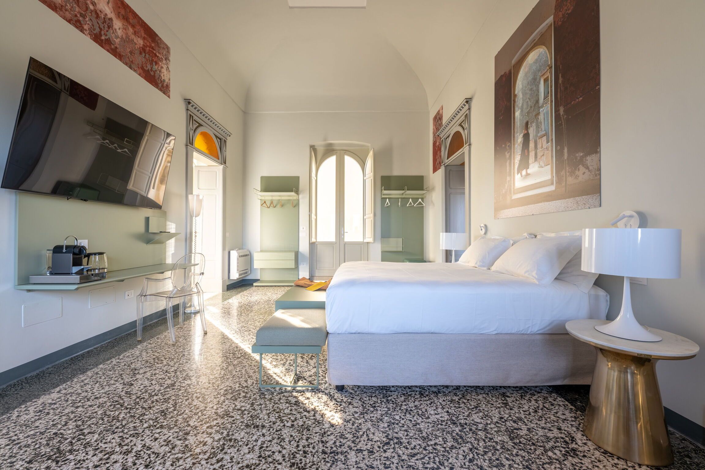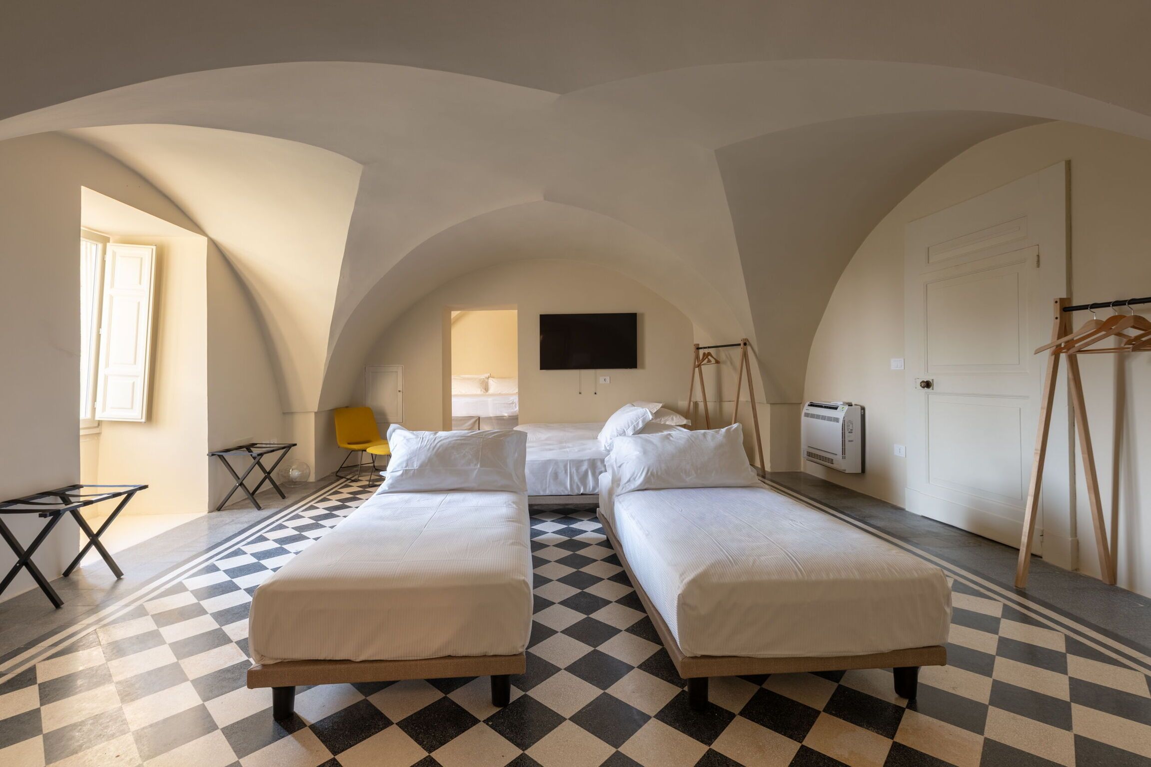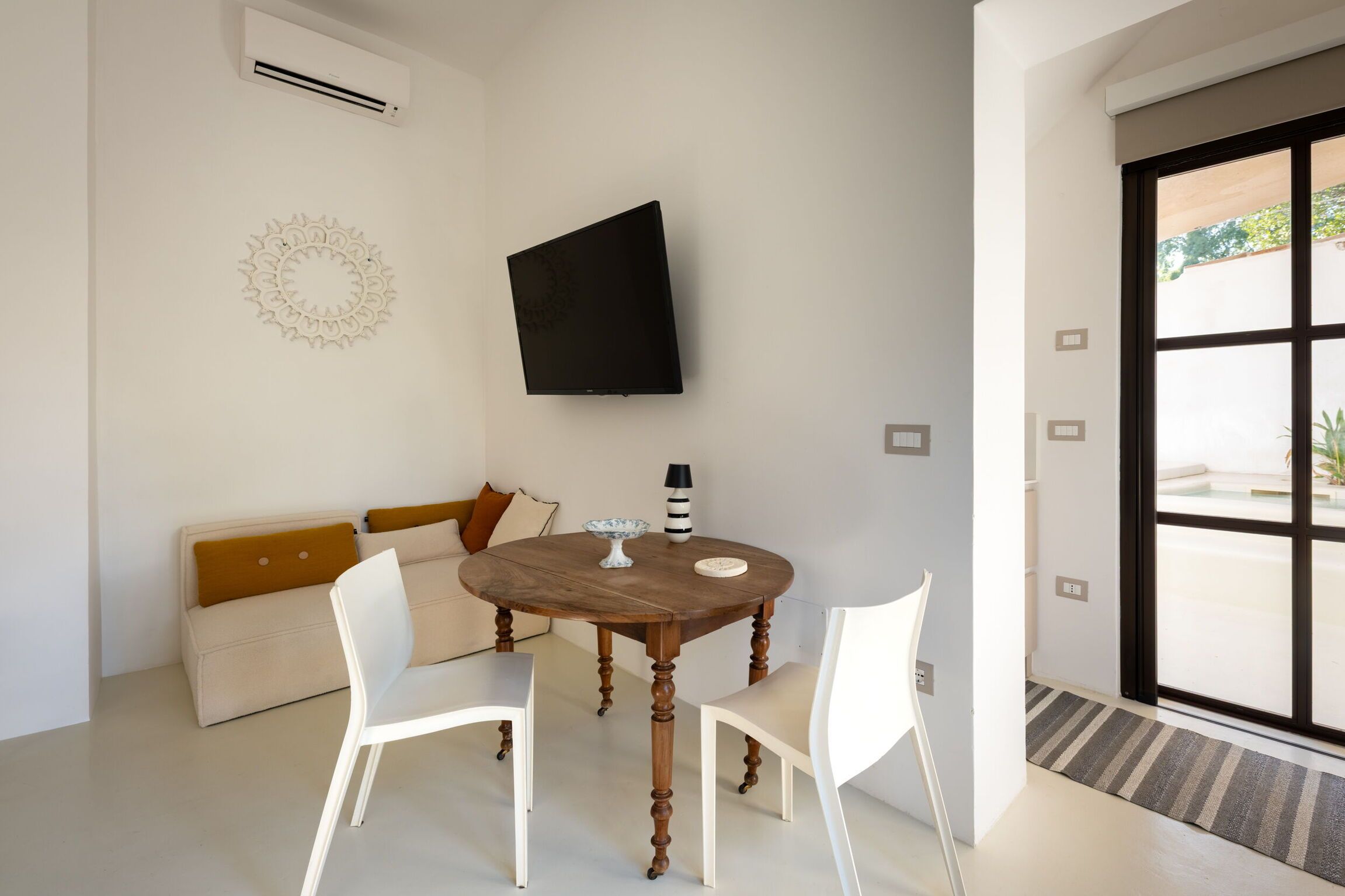 If you're after an Italian escape with a difference, here's your chance to stay in a historic palace. Set in the heart of Salento, the garden has a pool, barbecue areas, and space to relax among the fruit trees. Inside, high arched ceilings and a marble staircase add to the grandeur. The home is split into separate suites and apartments, making it ideal for families. One suite has two connecting bedrooms with a cinema and games room, another has its own kitchen and living area with a sofa bed, and there’s also an annexe with a small kitchenette. You can walk to local shops, bars, and restaurants in a few minutes, while Otranto’s beaches are only a twenty-minute drive away.
