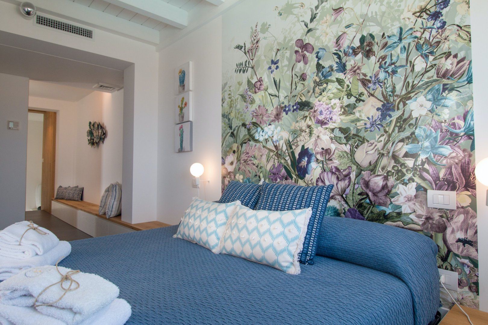Spend lazy afternoons dipping in and out of the pool, soaking up the sun and dining alfresco under the bamboo pergola. We can think of no better place to be with friends and family, enjoying a couple of limoncellos under the gentle shade, surrounded by fruit trees and ornamental plants. Inside the villa, it’s the soft coastal palette, marble floors and separate living areas that creates a light and airy feel. The same goes for the bedrooms, benefitting from bold wallpaper prints and subtle colours, inspiring moments of rest and relaxation.
