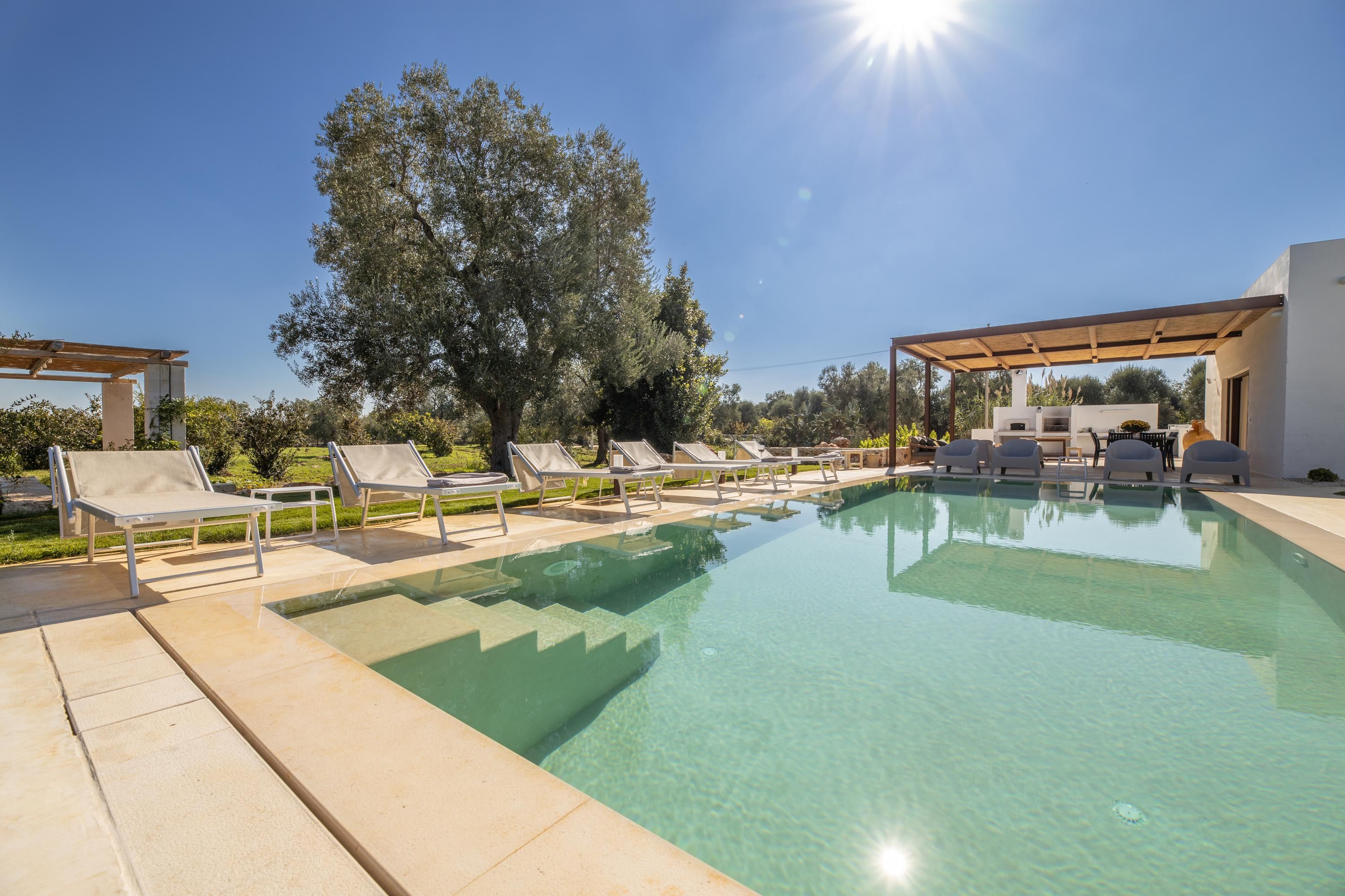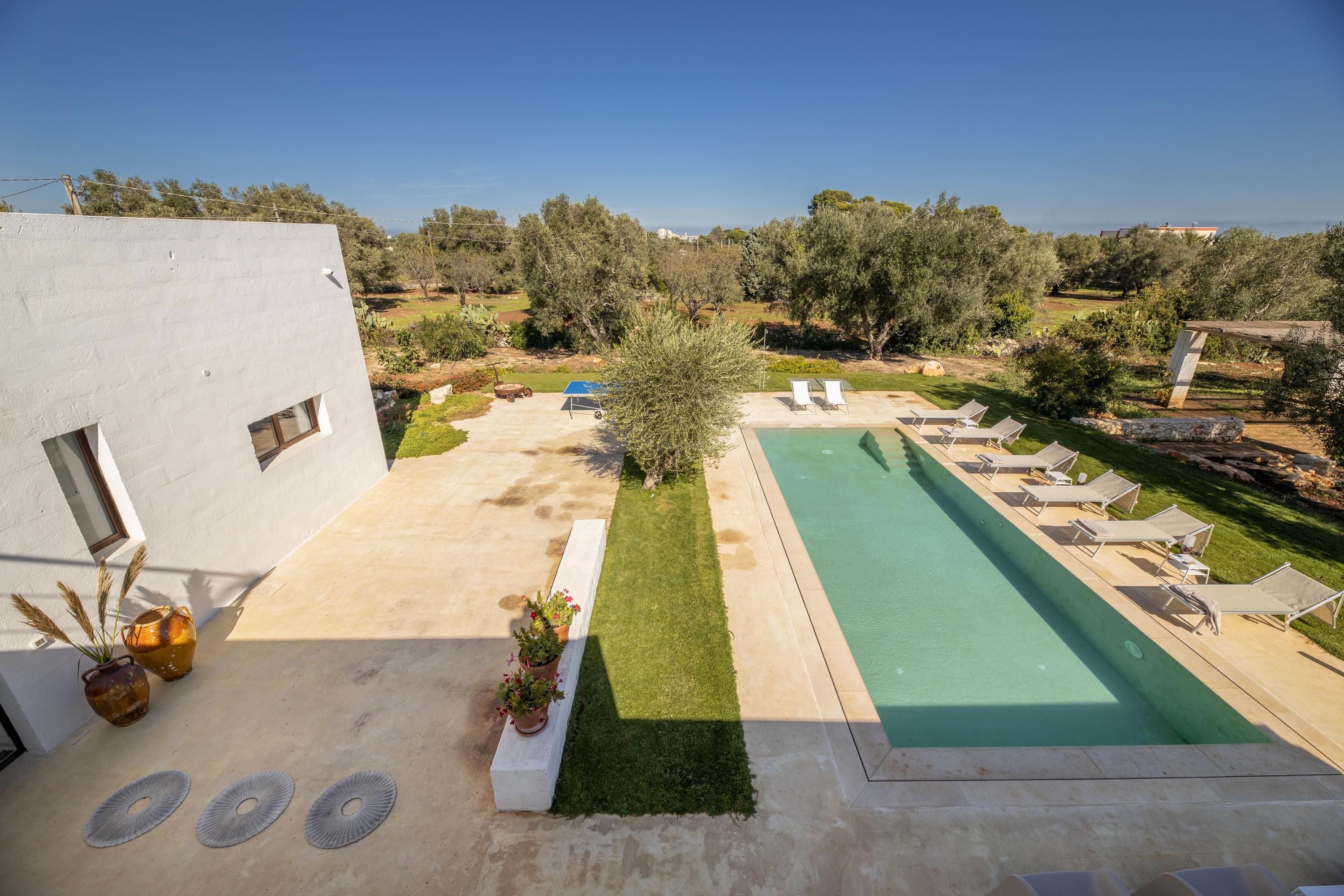 Fifteen minutes from the coast and surrounded by historic towns, this Italian villa has it all. In the garden, you'll find a pool lined with sun loungers and a sunny table tennis corner. The large, shaded terrace has both a dining table and lounge seating, complete with a barbecue for long, alfresco lunches. Inside, there's another long dining table, a cosy living room with a sofa bed for one, and a relaxing indoor hot tub. When you're ready to explore, Carovigno – with its authentic eateries and historic sites – is a five-minute drive away, and the white-washed town of Ostuni is also worth a visit.