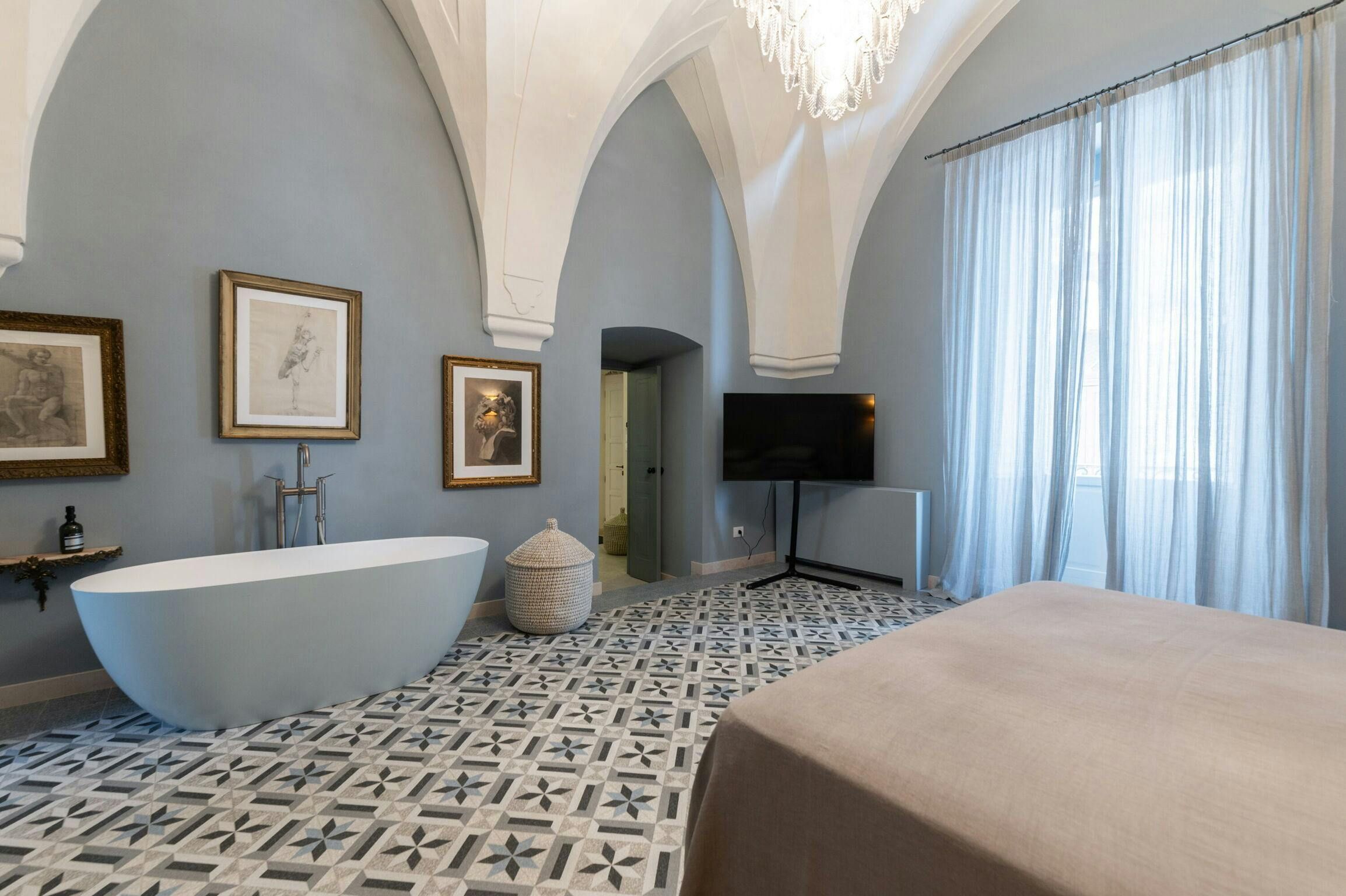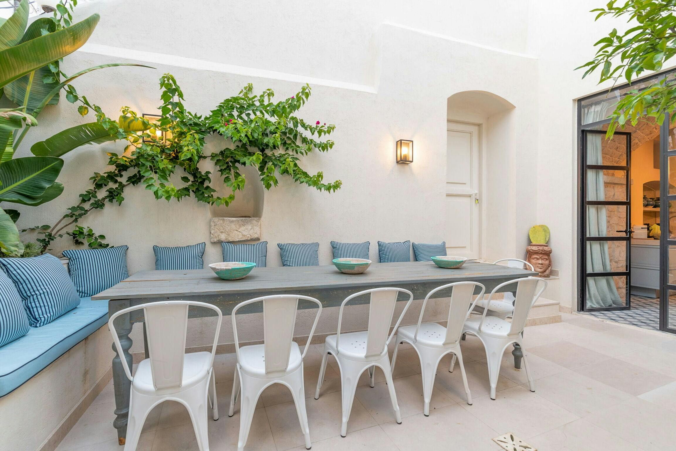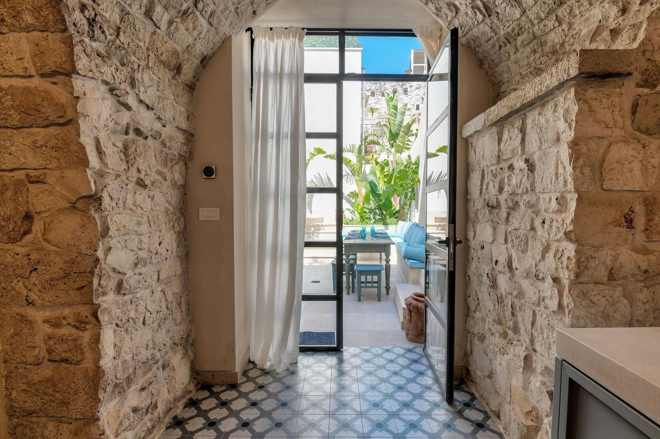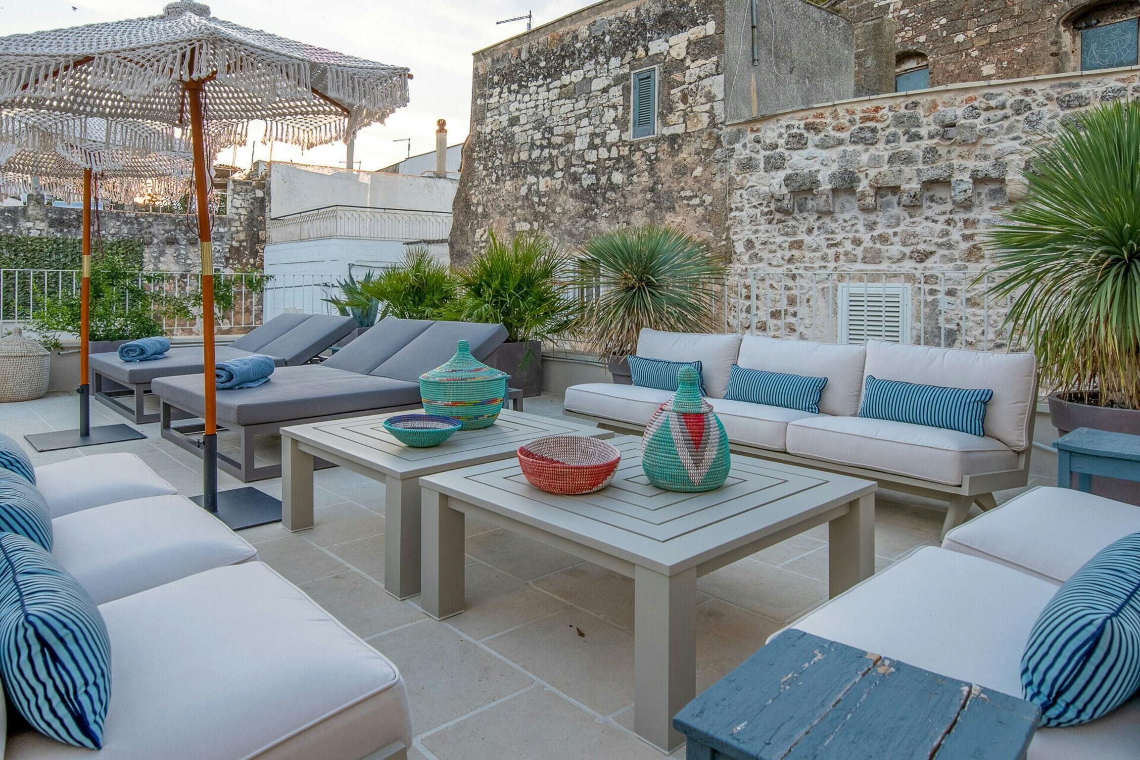 This delightful apartment is just a two-minute walk from the historic centre of Carovigno. Ostuni is a fifteen-minute drive away, and the beautiful Marina di Torre Guaceto nature reserve is only twenty minutes away – a varied holiday awaits here. The apartment is elegant and full of personality, with a blend of authentic features – including vaulted ceilings, exposed stone, and marble floors – and modern touches. The terrace is a wonderful spot for alfresco dining and sunbathing.