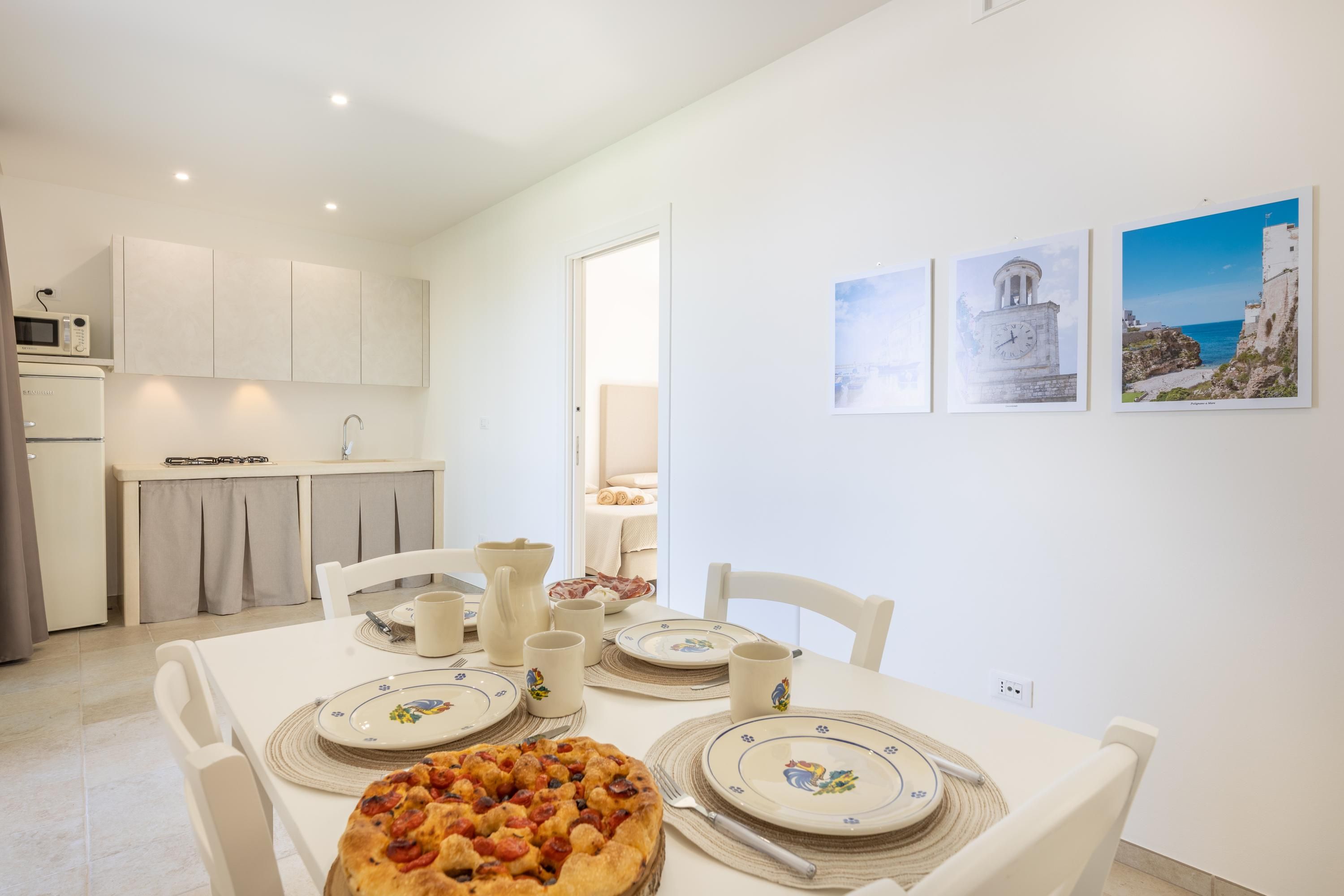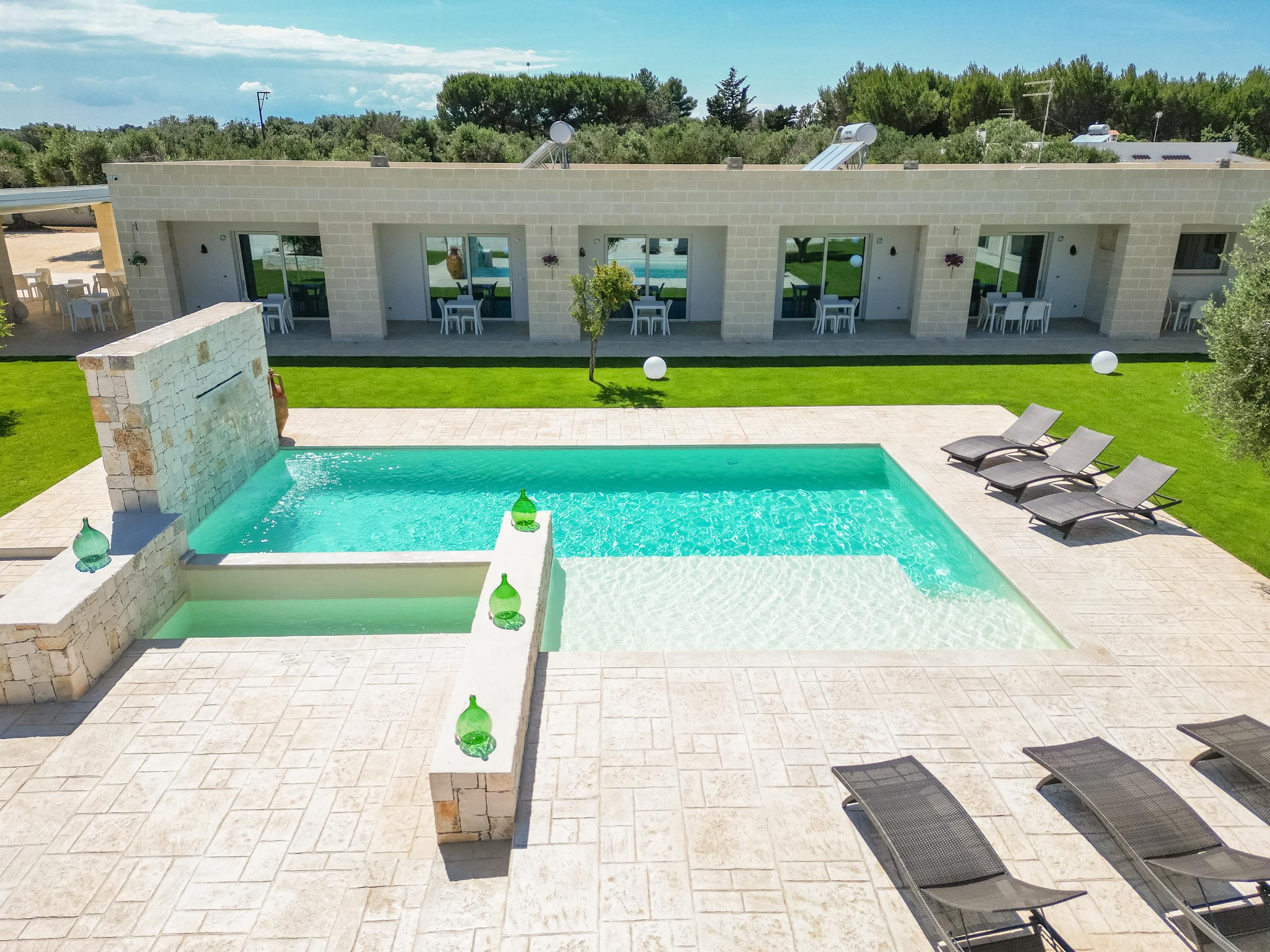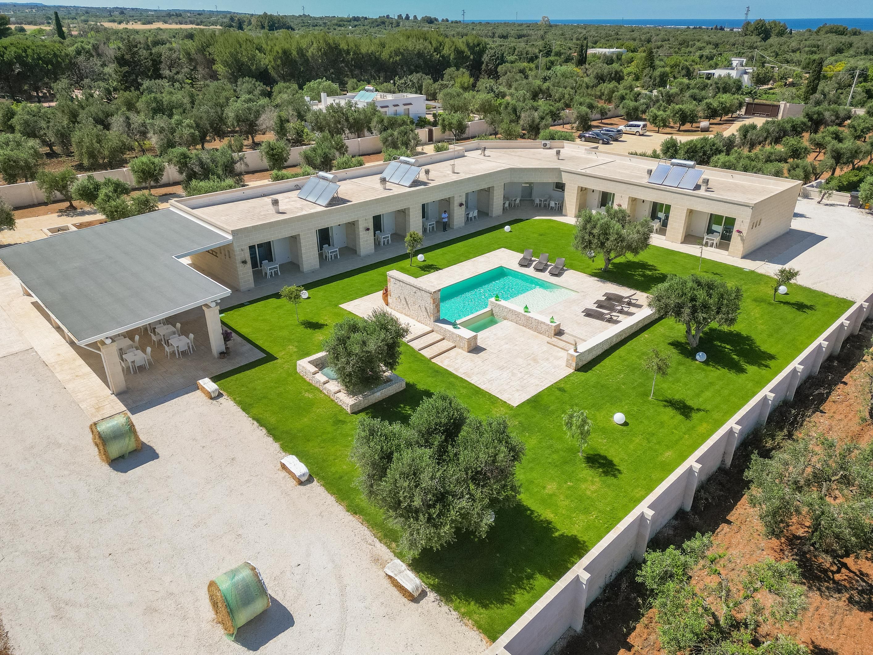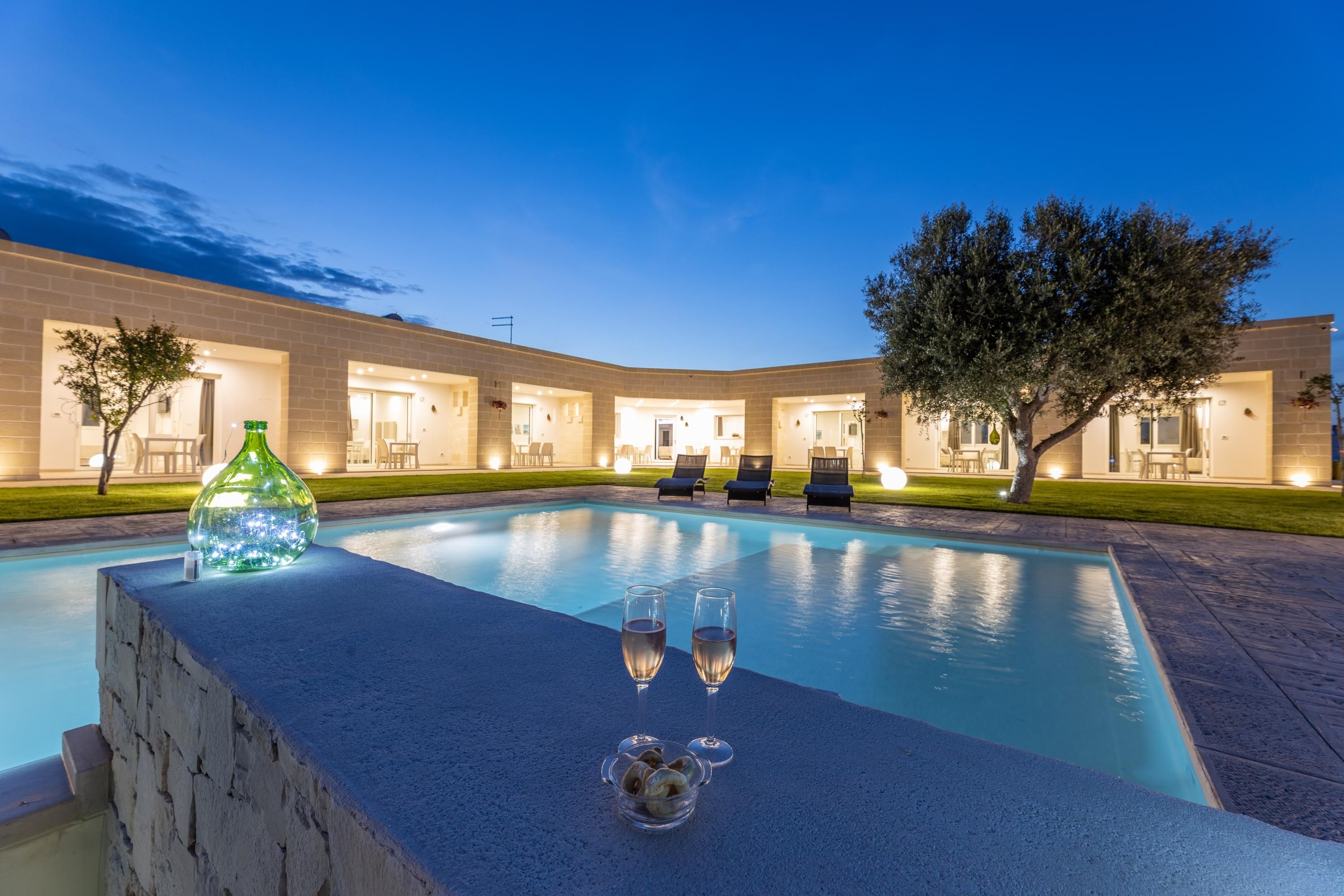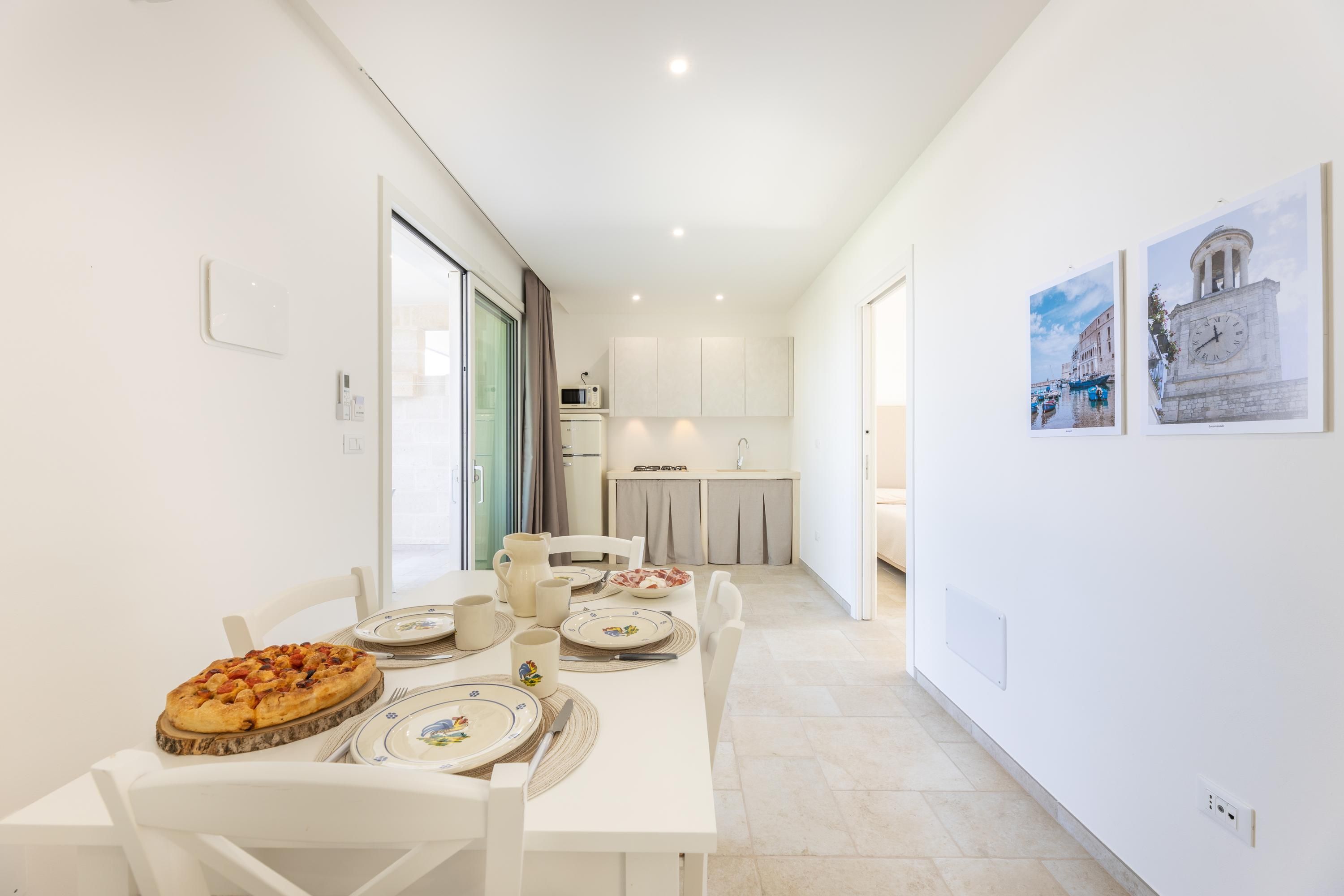 Set among centuries-old olive trees in the Carovigno countryside, this apartment makes a great base for exploring Apulia. Sliding doors open from the living area to your own section of patio for alfresco meals, and you’ll also have access to the shared garden and pool. The interiors are simple, and the kitchen is best suited to preparing light bites. At full capacity, two guests will share the sofa bed, so it may be a bit snug. However, hire a car and you’re just eleven minutes from Carovigno’s restaurants and seven from Spiaggia di Specchiolla beach. Plus, towns including Ostuni, Alberobello, and Locorotondo are all within easy reach.
