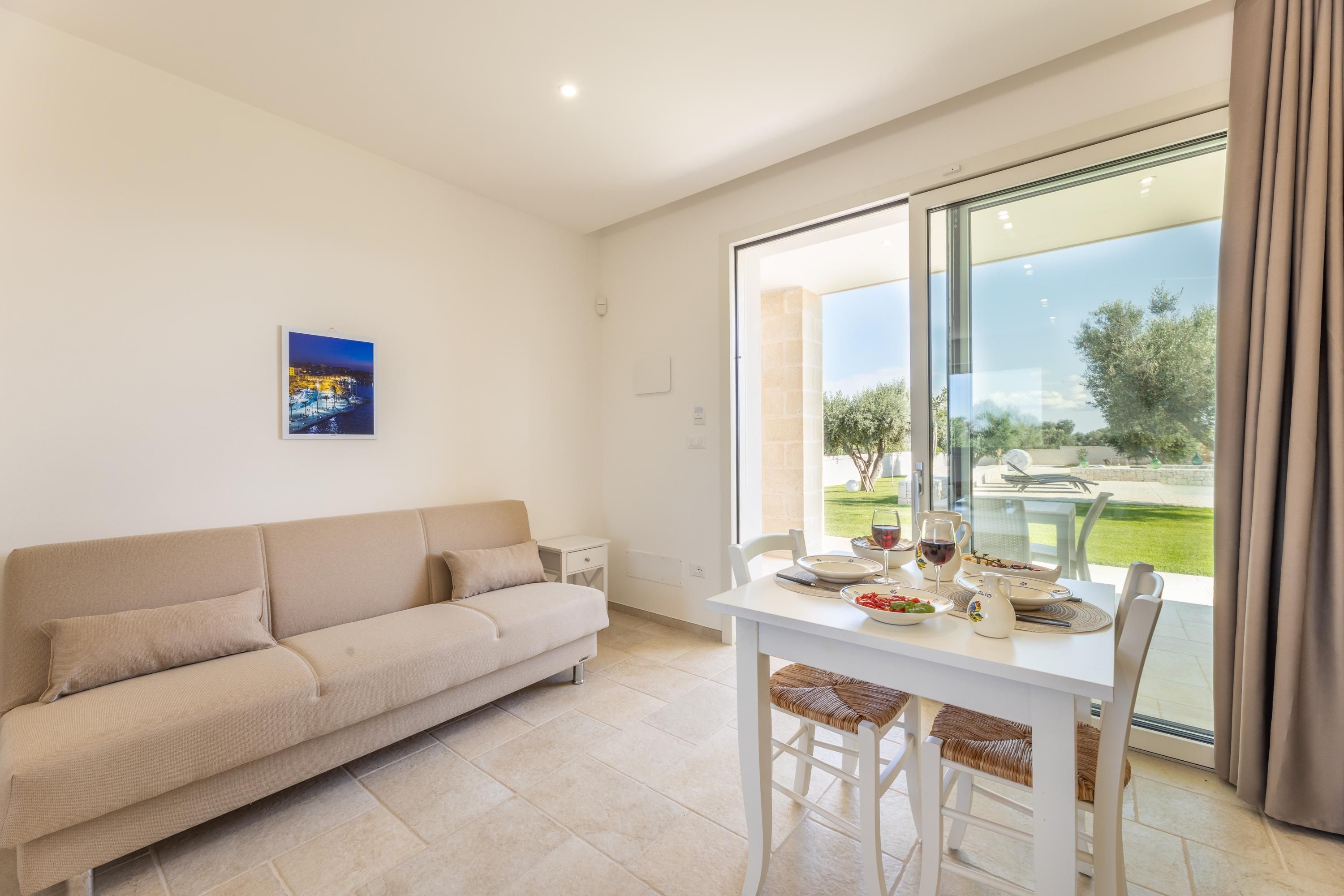 Within easy reach of sandy beaches and historic towns, this apartment is a great choice for a fuss-free Italian escape. We don't blame you if you spend the entire time in the shared garden – there are plenty of spots to unwind, whether on a lounger in the shade of the trees or in the pool. Meanwhile, if you're looking for a bit more privacy, enjoy drinks on the private patio. The limited cooking facilities at this home are hardly likely to dampen your stay – it's less than a thirty-minute drive to Ostuni, where you can sample traditional Apulian cuisine in one of the many restaurants.