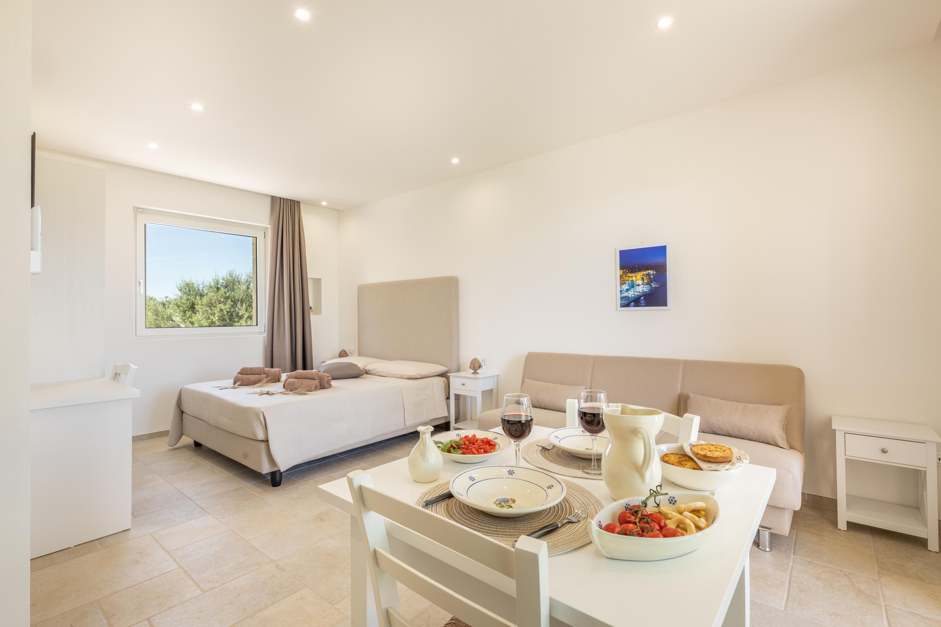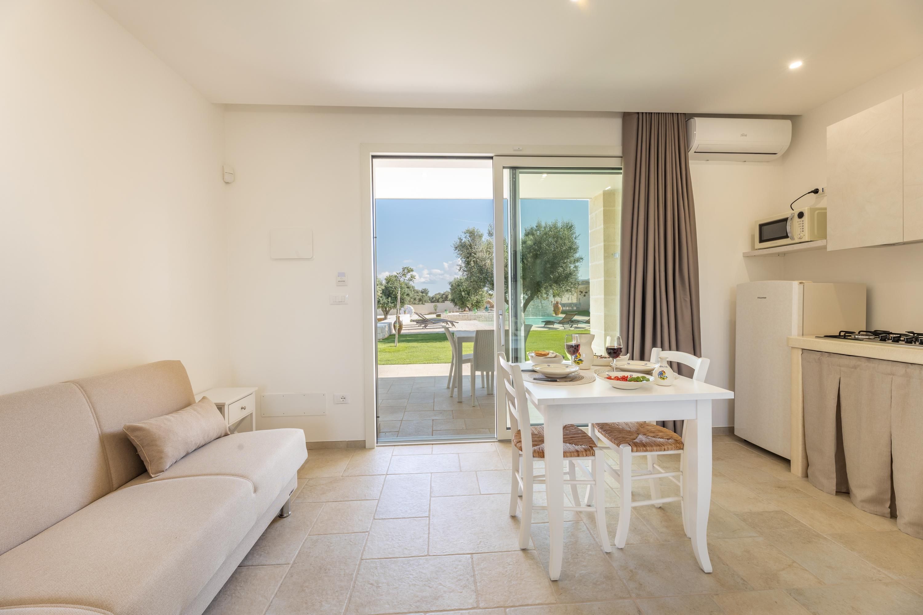 Tucked away in the Carovigno countryside, this apartment is a minimal sanctuary in a serene location. You will need a car to get around here, but it’s just a short scenic drive to the nearest beach, while shops, restaurants and amenities can all be found within easy reach. You’ll also have access to the communal pool for refreshing swims and there’s a private terrace for blissful sunset drinks. Inside, the open-plan layout is perfect for couples and there’s a handy sofa bed in the living area – making this a great option for families.