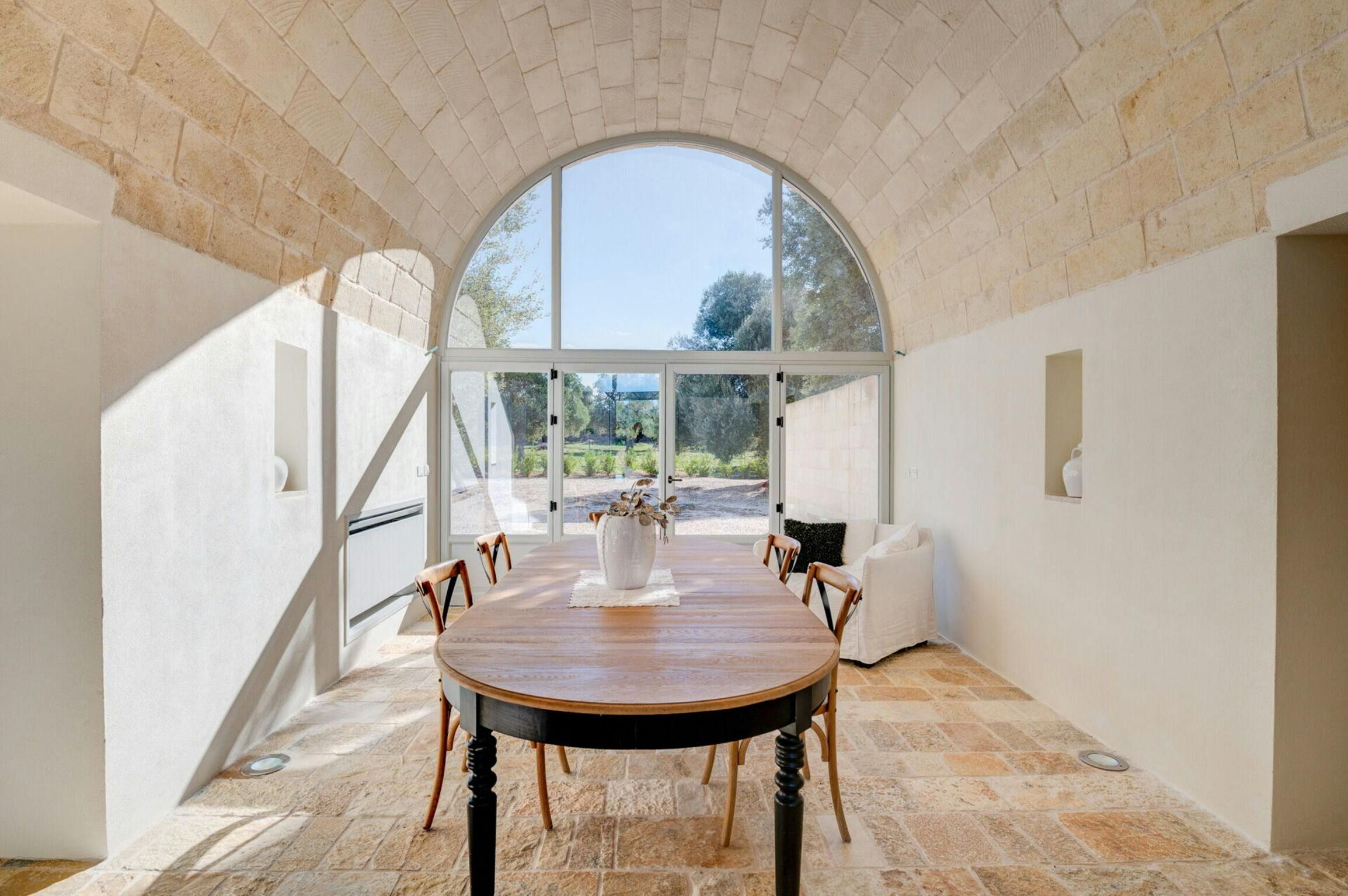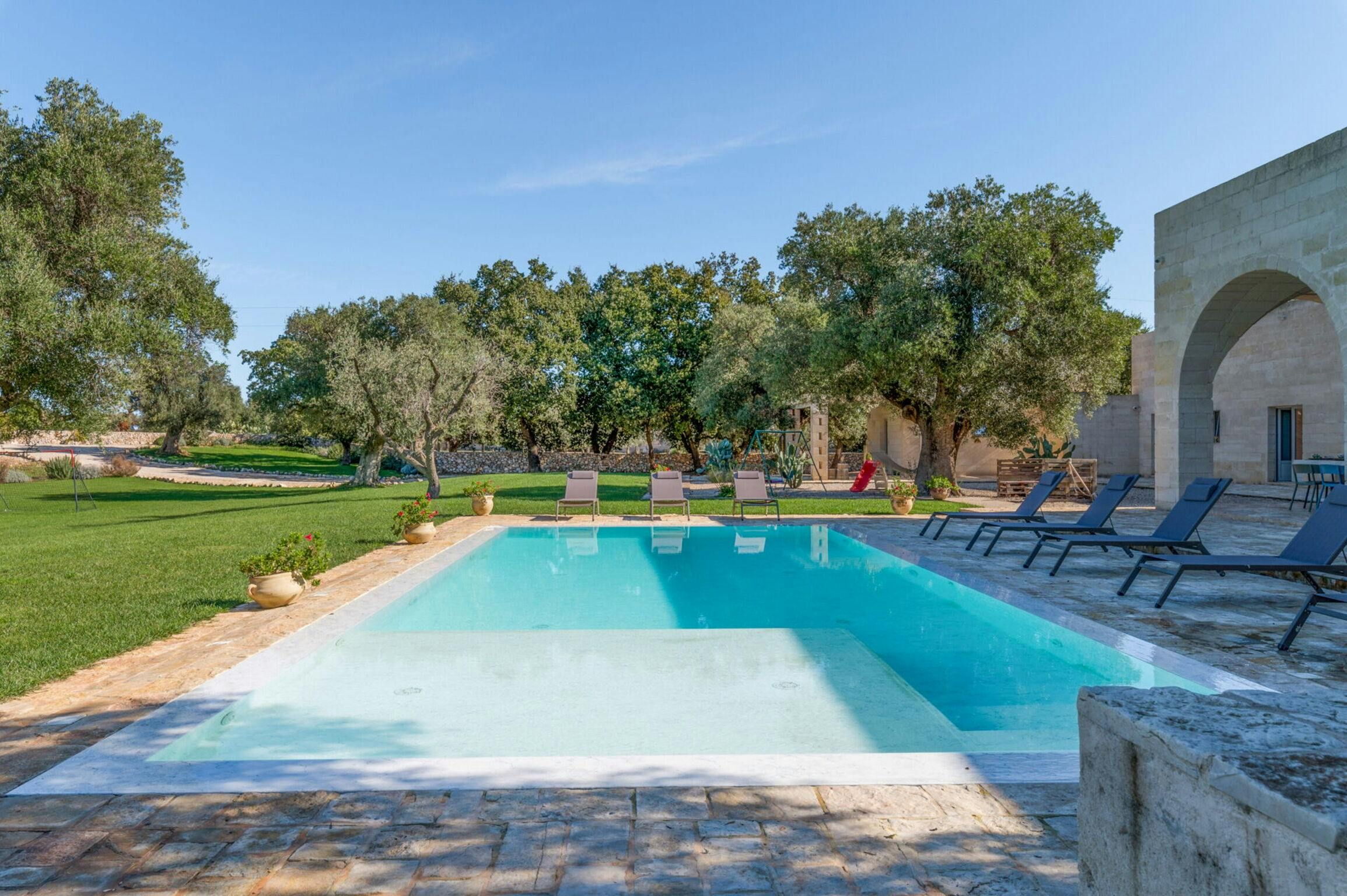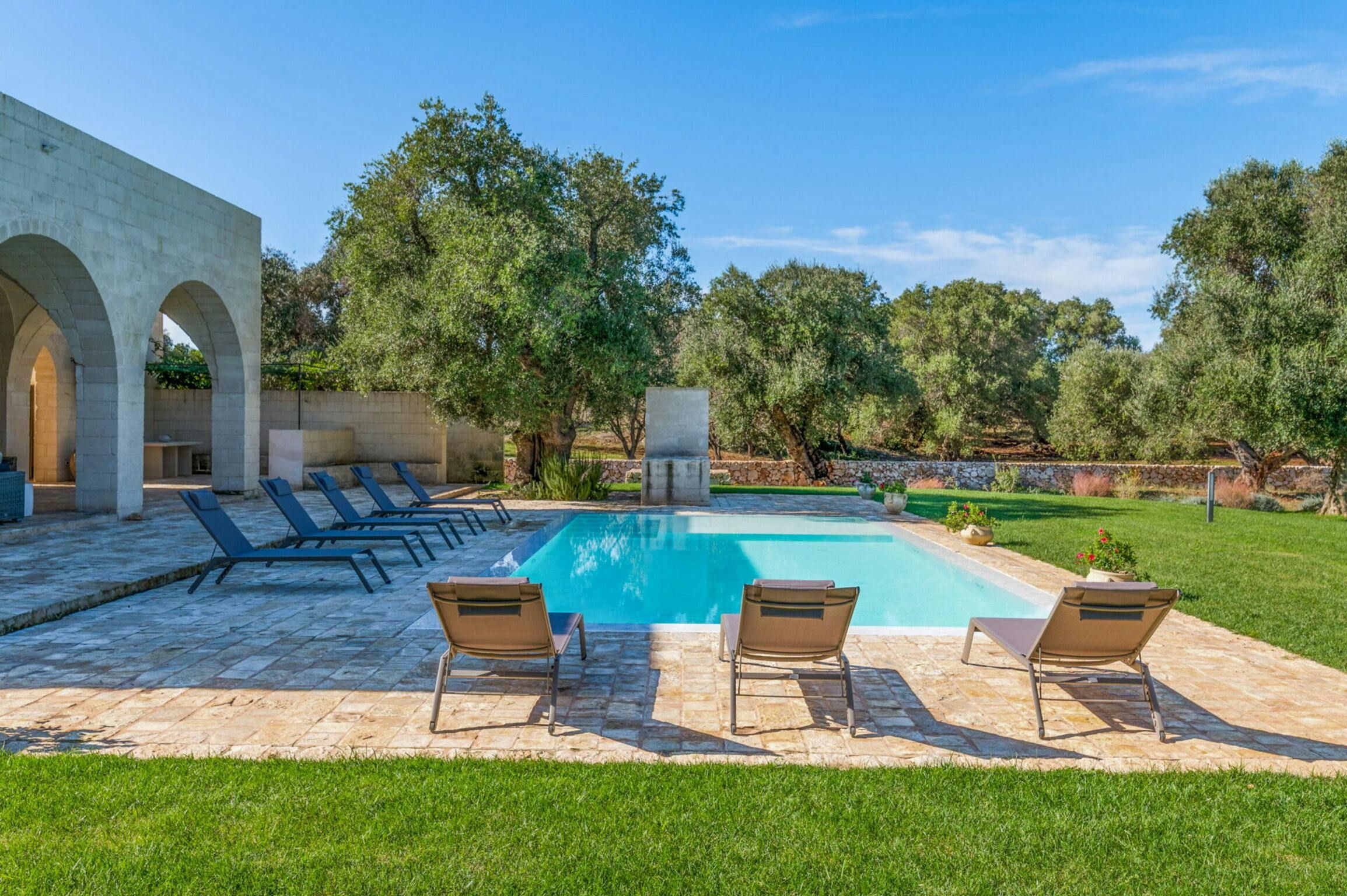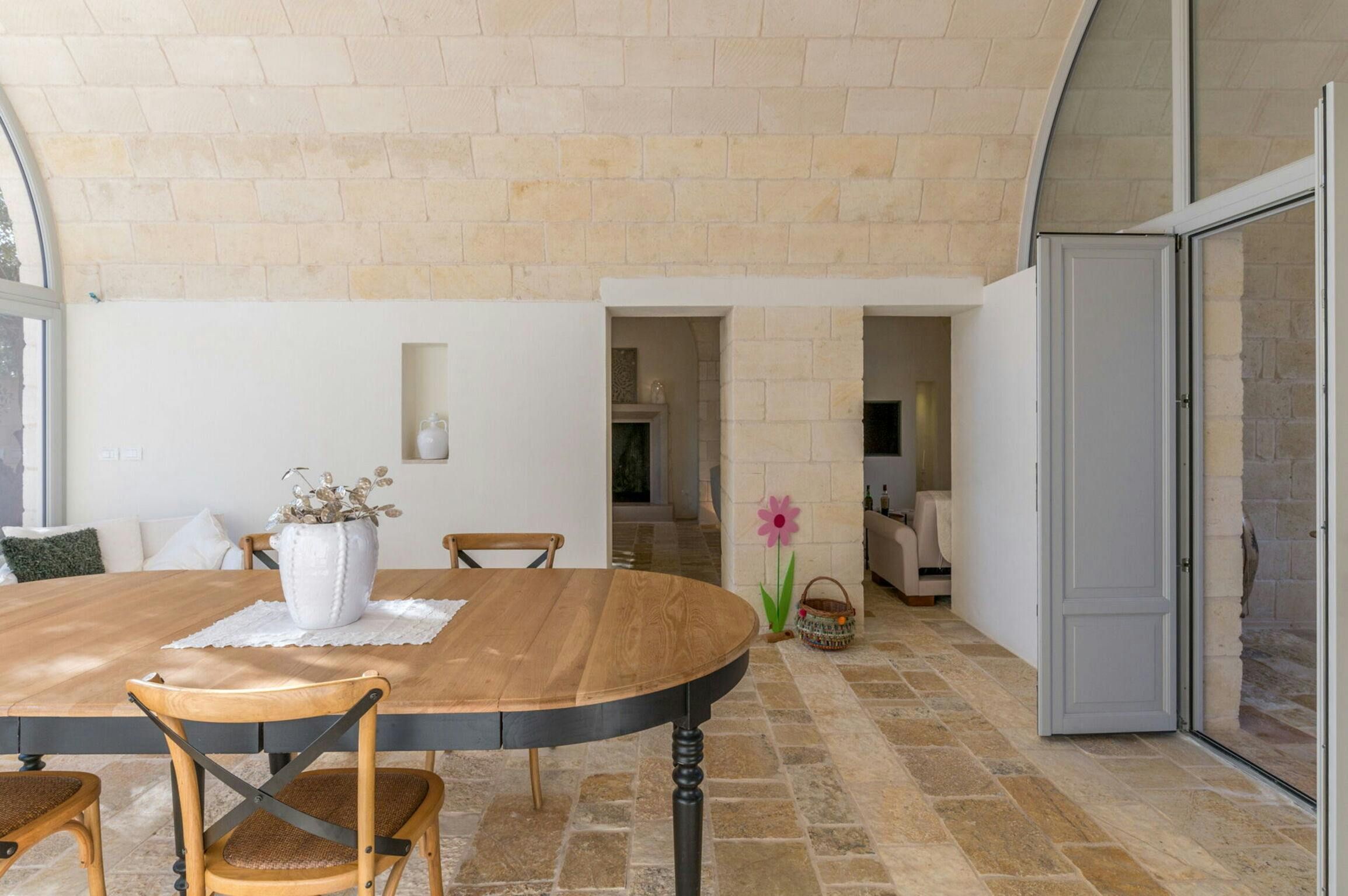 Surrounded by olive trees with beautiful views across the garden, this home makes the ideal setting for a relaxing retreat in the heart of Puglia. You can spend blissful days by the pool and lazy evenings on the terrace. All of the bedrooms come with en-suite bathrooms and there is an independent apartment with a double sofa bed as well as an indoor pool. Housekeeping is included in your stay and you’re host can help organise a private chef for an additional fee. You’ll also find plenty to explore in this beautiful region with the centre of Carovigno just a short drive away.
