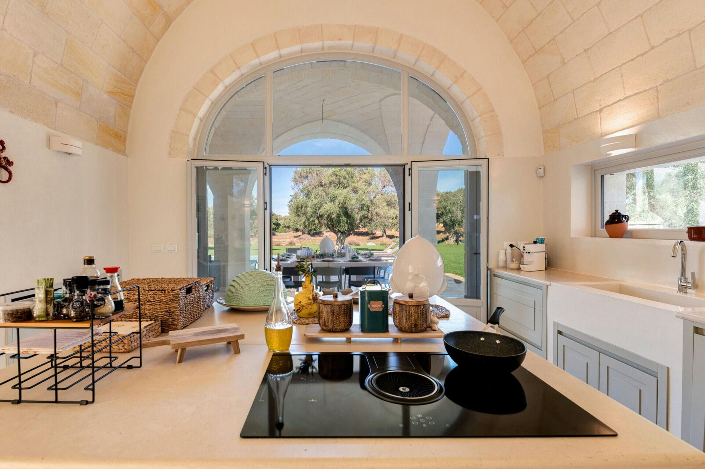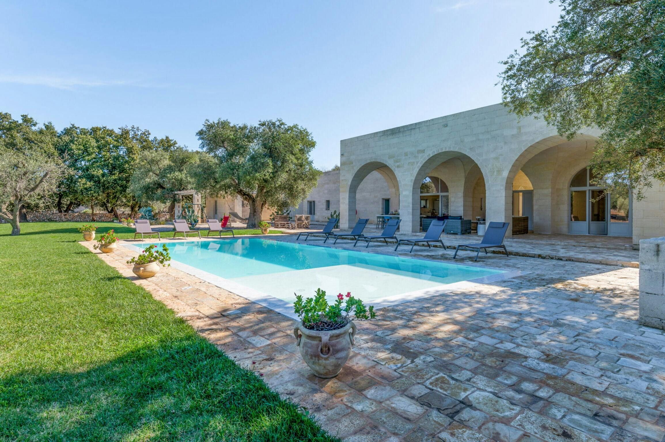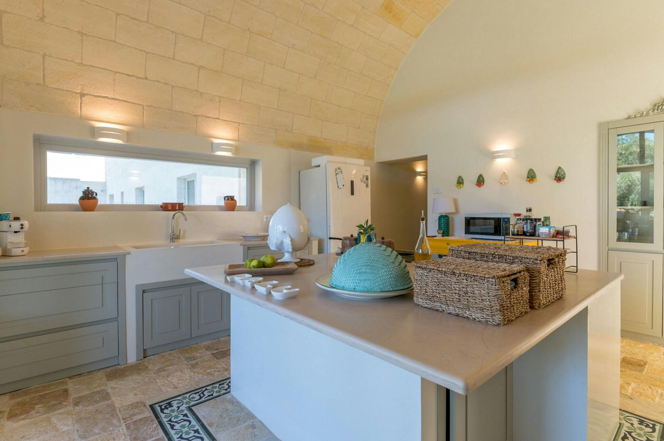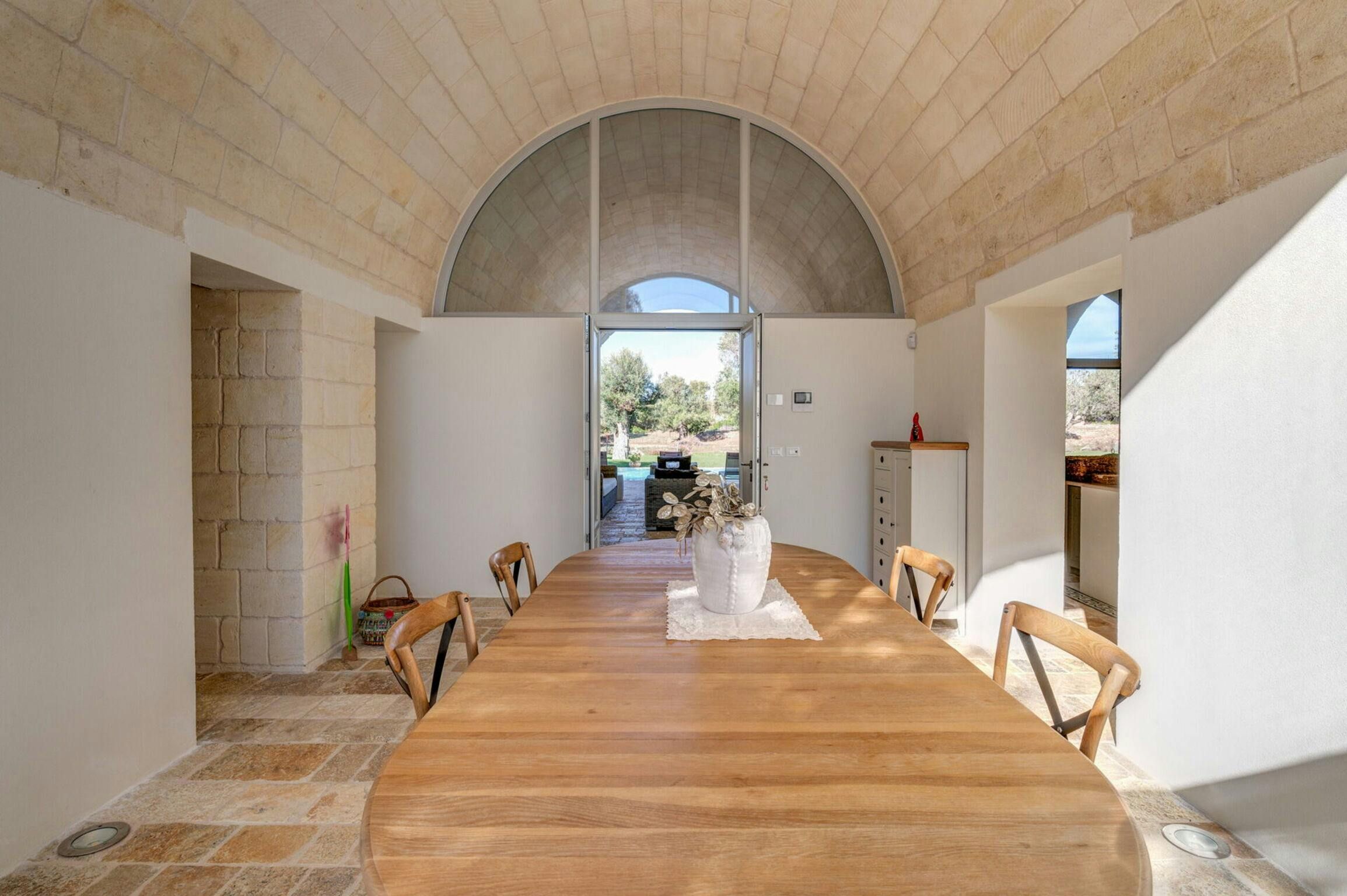 Surrounded by olive trees with beautiful views across the garden, this home makes the ideal setting for a relaxing retreat in the heart of Puglia. You can spend blissful days by the pool and lazy evenings on the terrace. All of the bedrooms come with en-suite bathrooms and there is an independent apartment with a double sofa bed as well as an indoor pool. Housekeeping is included in your stay and you’re host can help organise a private chef for an additional fee. You’ll also find plenty to explore in this beautiful region with the centre of Carovigno just a short drive away.