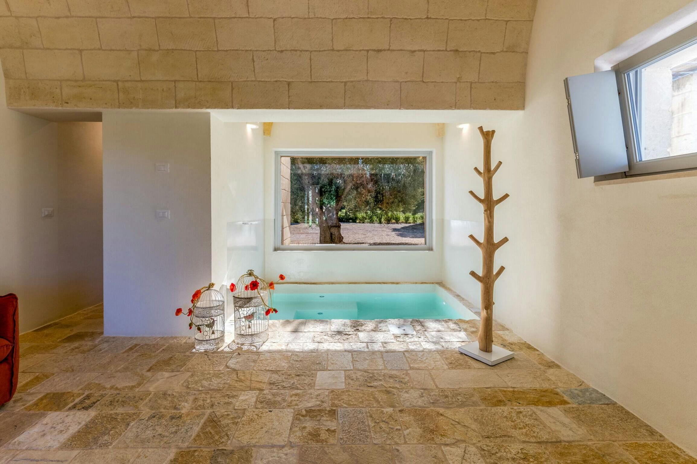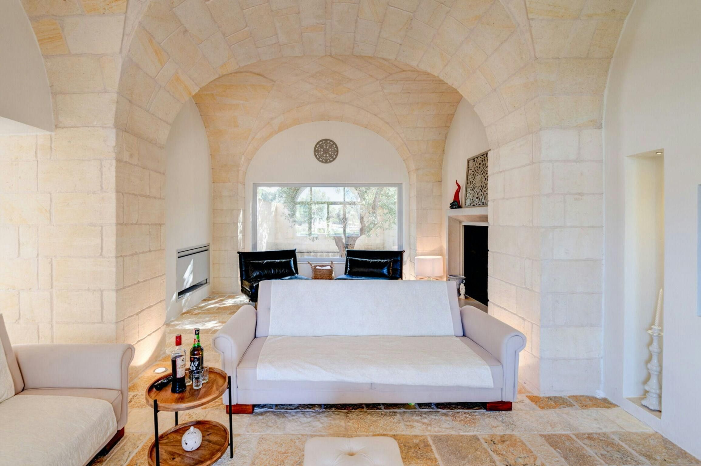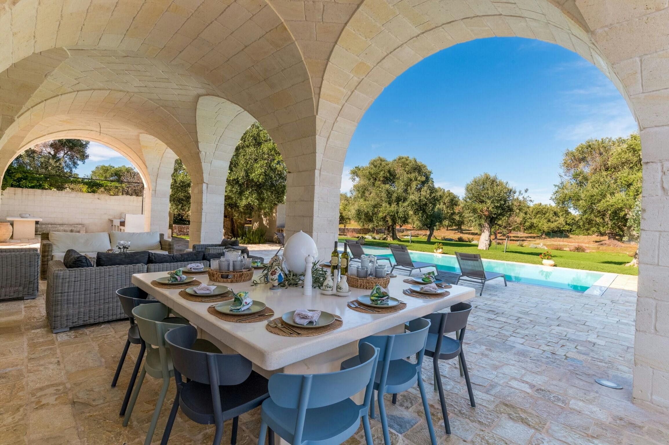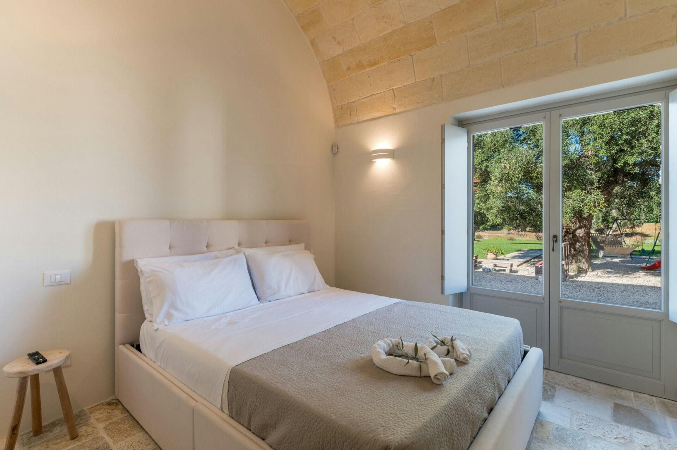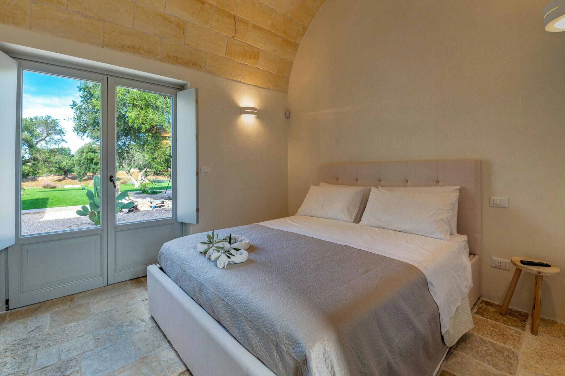 Surrounded by olive trees with beautiful views across the garden, this home makes the ideal setting for a relaxing retreat in the heart of Puglia. You can spend blissful days by the pool and lazy evenings on the terrace. All of the bedrooms come with en-suite bathrooms and there is an independent apartment with a double sofa bed as well as an indoor pool. Housekeeping is included in your stay and you’re host can help organise a private chef for an additional fee. You’ll also find plenty to explore in this beautiful region with the centre of Carovigno just a short drive away.