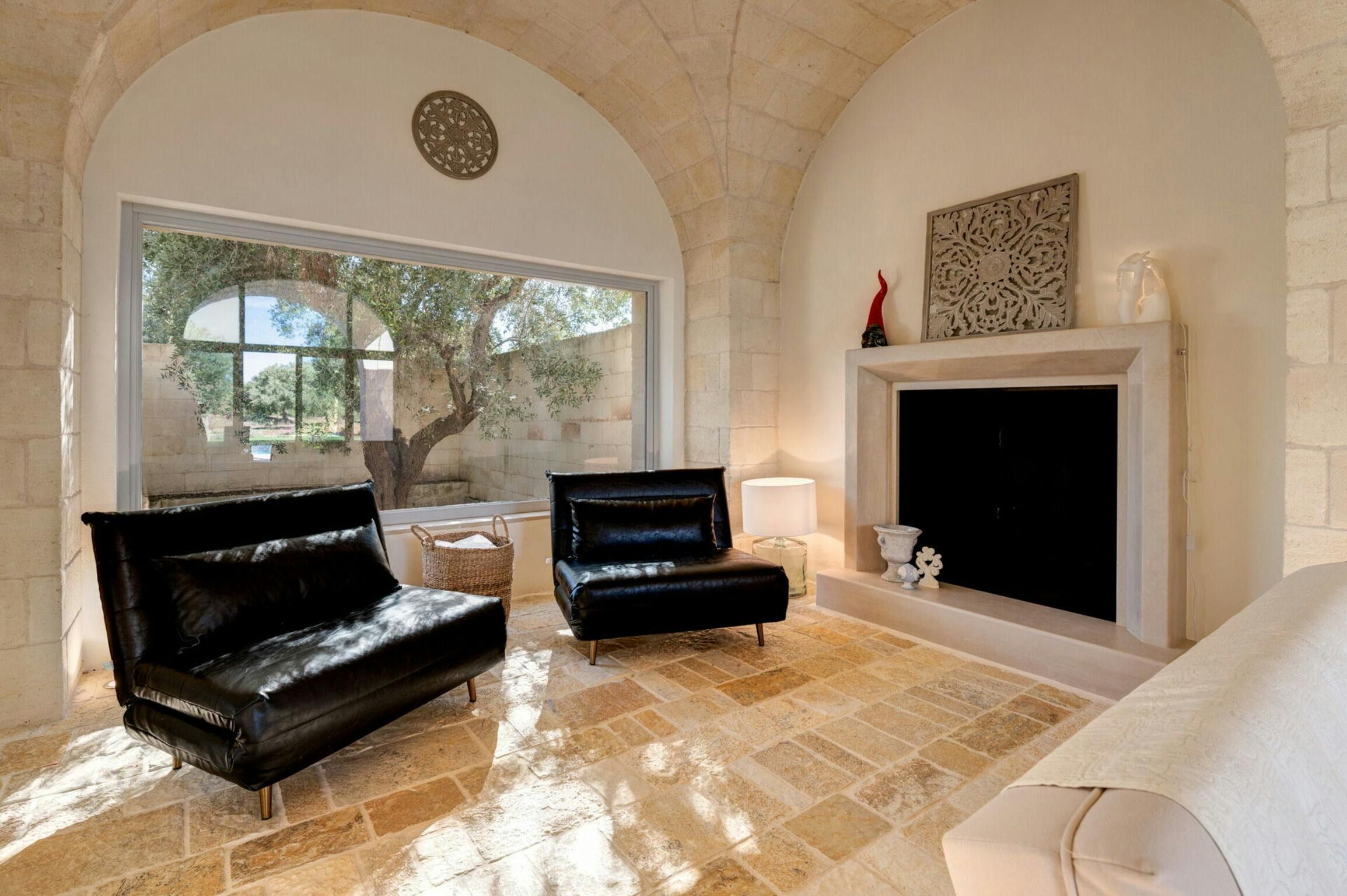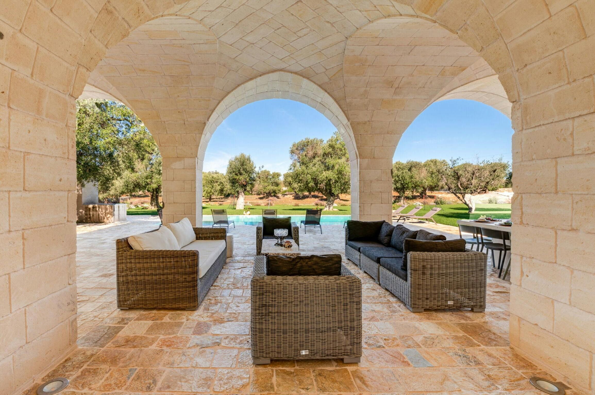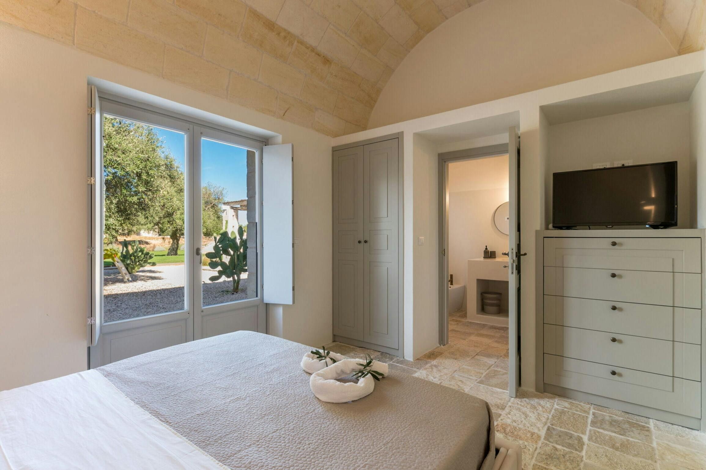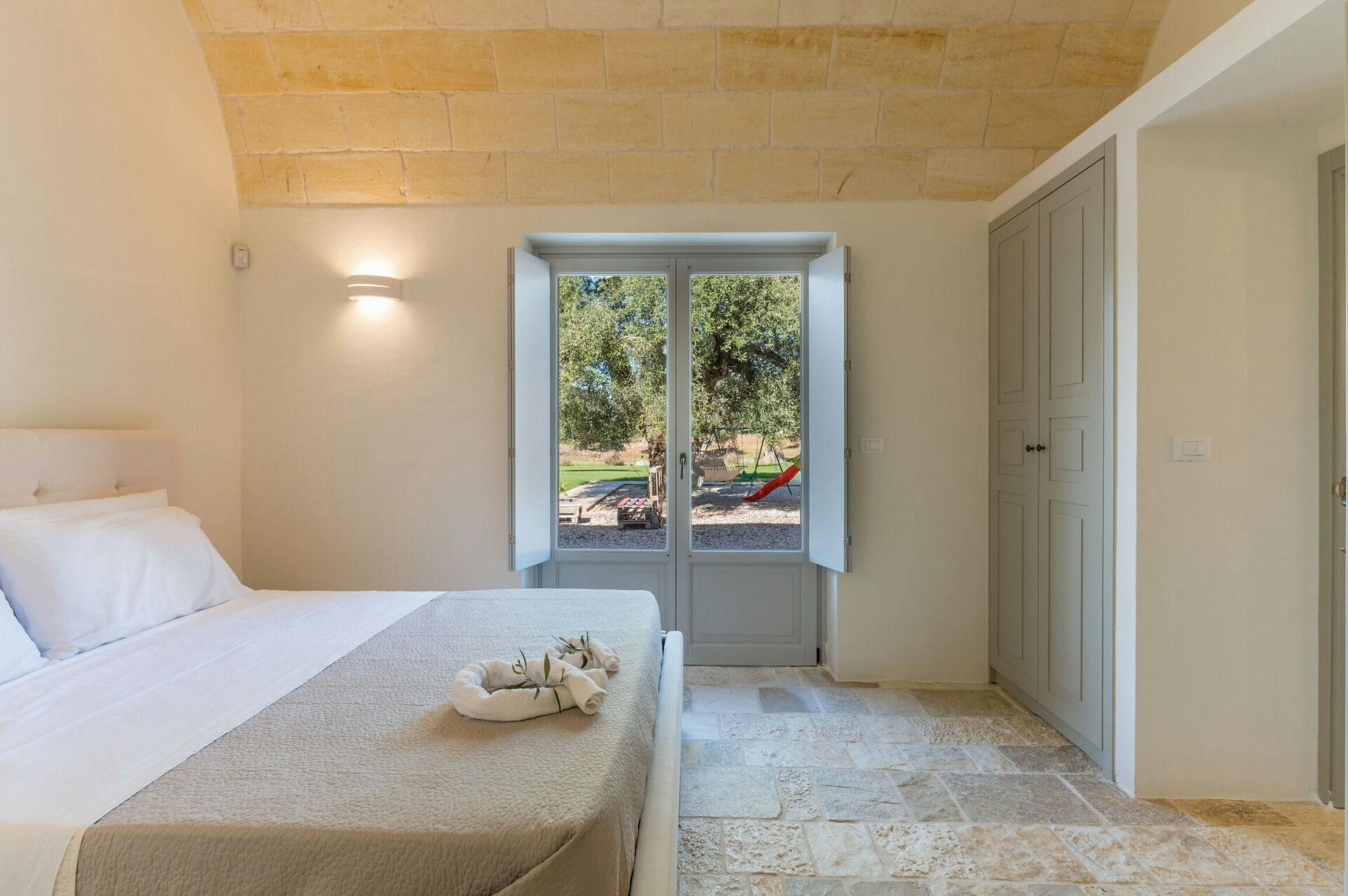 Surrounded by olive trees with beautiful views across the garden, this home makes the ideal setting for a relaxing retreat in the heart of Puglia. You can spend blissful days by the pool and lazy evenings on the terrace. All of the bedrooms come with en-suite bathrooms and there is an independent apartment with a double sofa bed as well as an indoor pool. Housekeeping is included in your stay and you’re host can help organise a private chef for an additional fee. You’ll also find plenty to explore in this beautiful region with the centre of Carovigno just a short drive away.