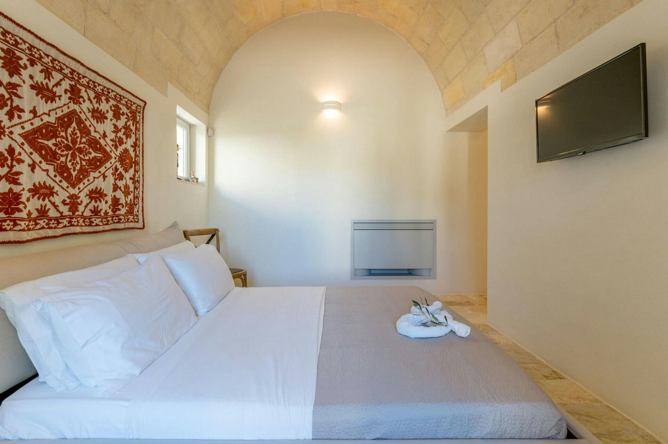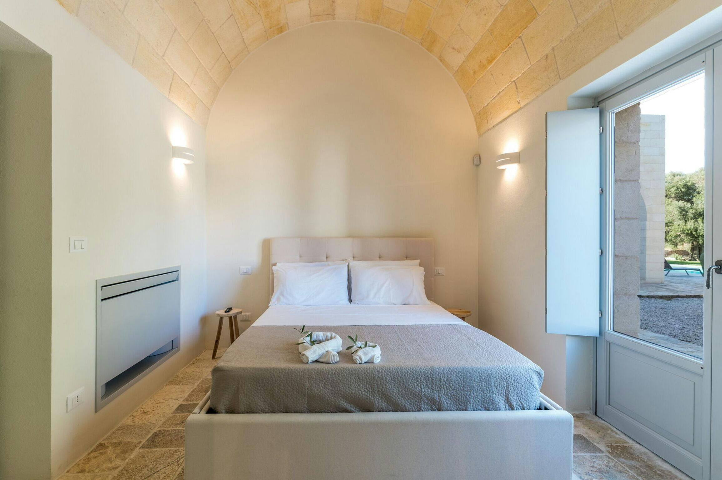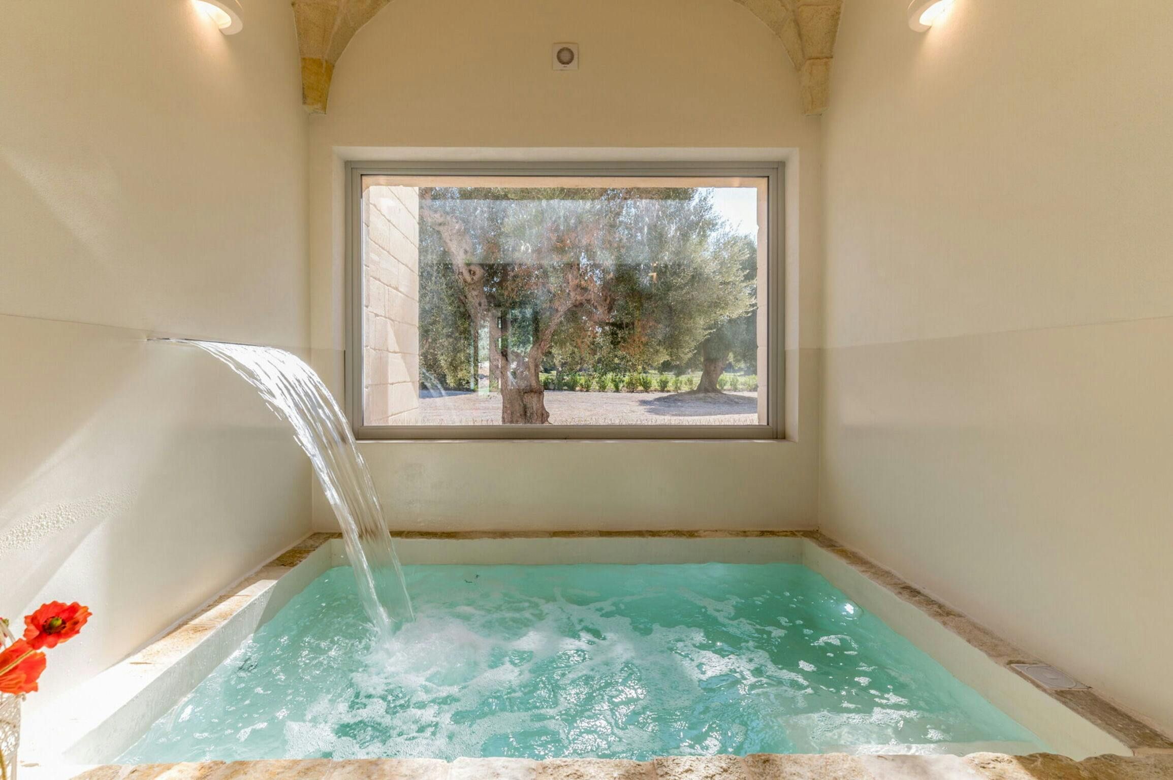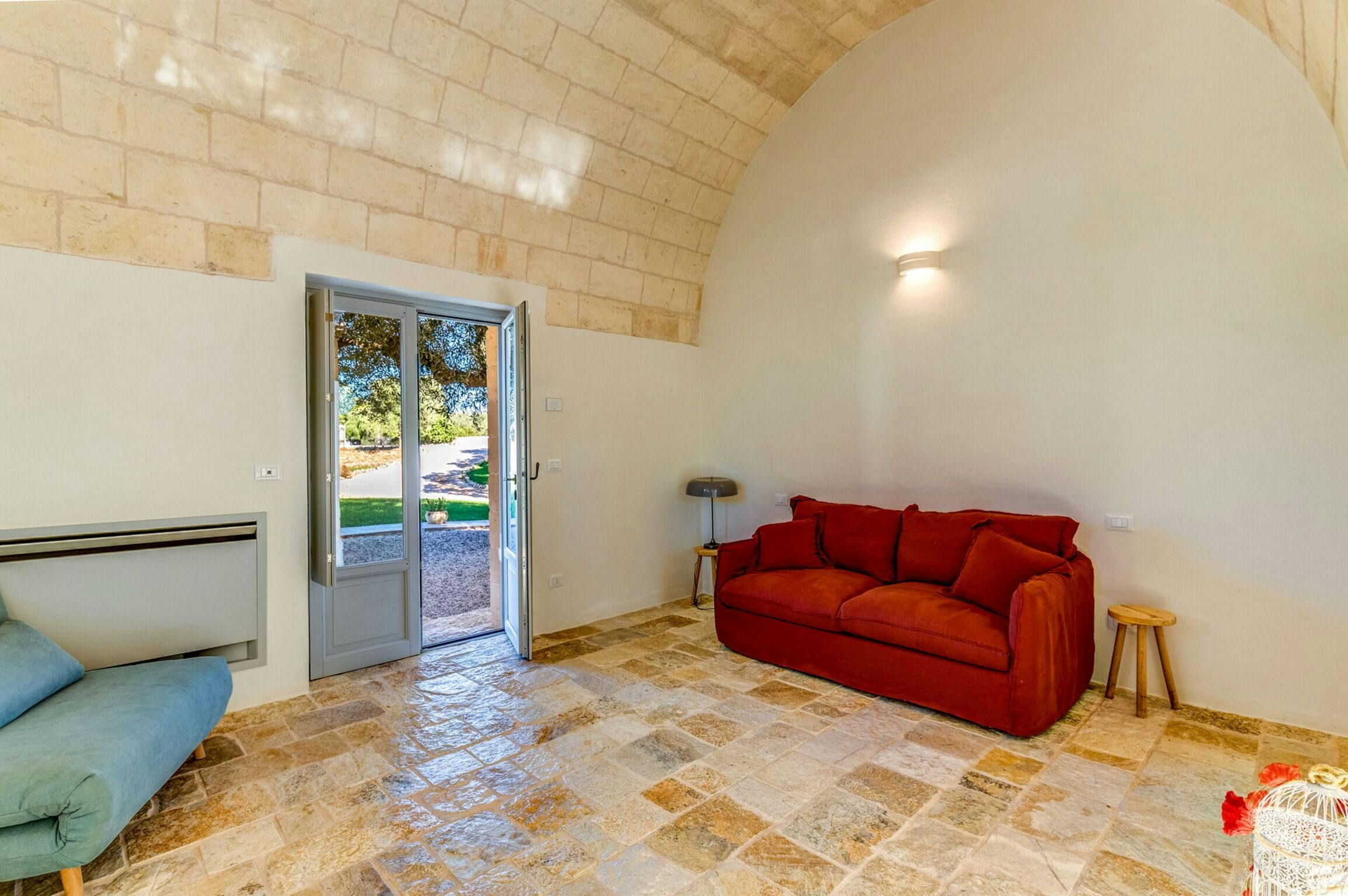 Surrounded by olive trees with beautiful views across the garden, this home makes the ideal setting for a relaxing retreat in the heart of Puglia. You can spend blissful days by the pool and lazy evenings on the terrace. All of the bedrooms come with en-suite bathrooms and there is an independent apartment with a double sofa bed as well as an indoor pool. Housekeeping is included in your stay and you’re host can help organise a private chef for an additional fee. You’ll also find plenty to explore in this beautiful region with the centre of Carovigno just a short drive away.