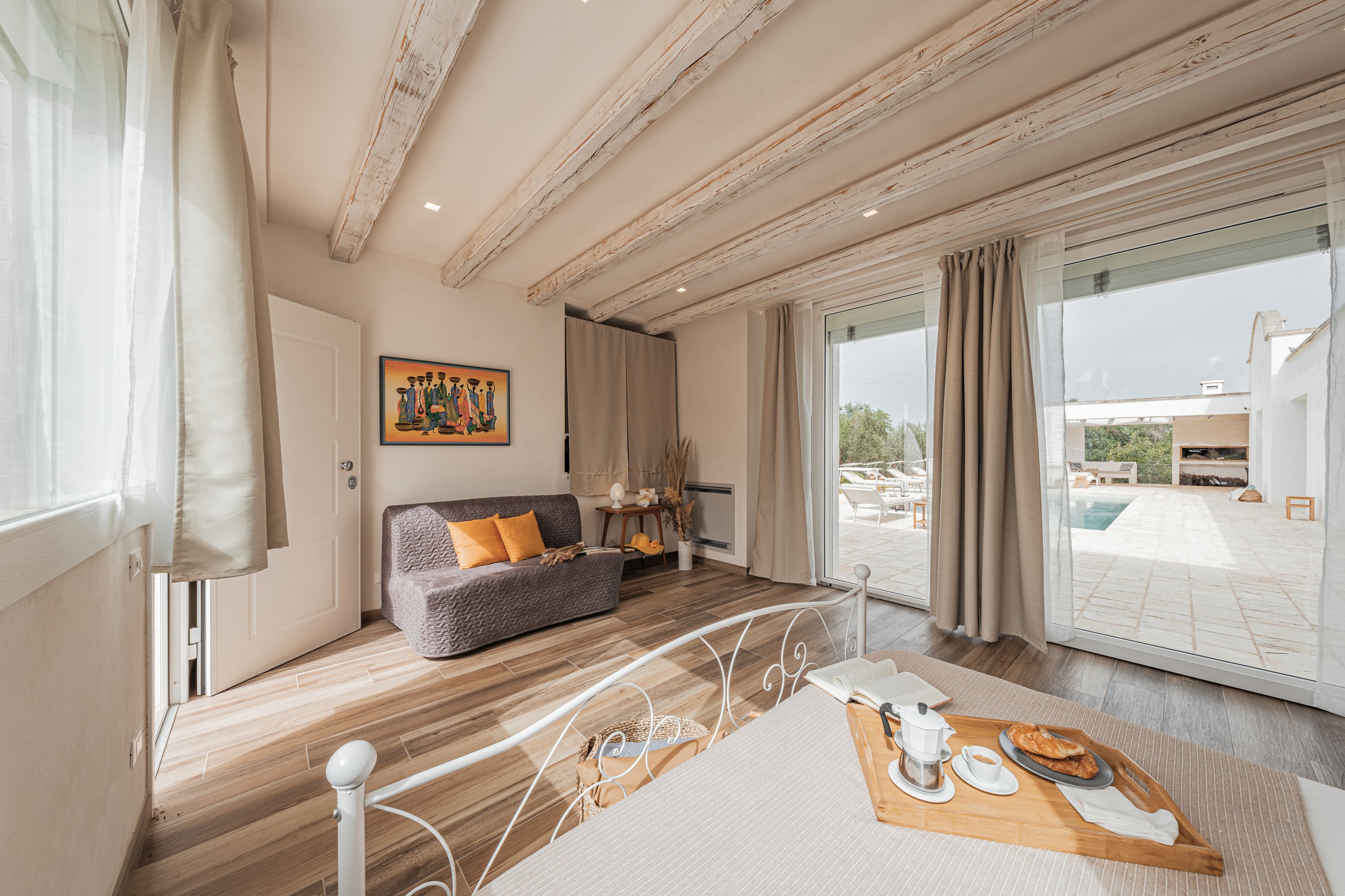 Close to Ostuni and the beaches of Torre Santa Sabina, this home is an excellent base for exploring the countryside. We love the outdoor space. There's a private pool flanked by sunloungers – perfect for an afternoon dip – as well as a covered terrace ideal for alfresco dinners. Those seeking a bit of extra privacy will enjoy the traditional trullo, while the other guests will sleep in the main house. When you're ready to explore, there's plenty to see and do in the vicinity. Carovigno is 9 kilometres away, Ostuni is a short drive away, and the coast is within easy reach by car.