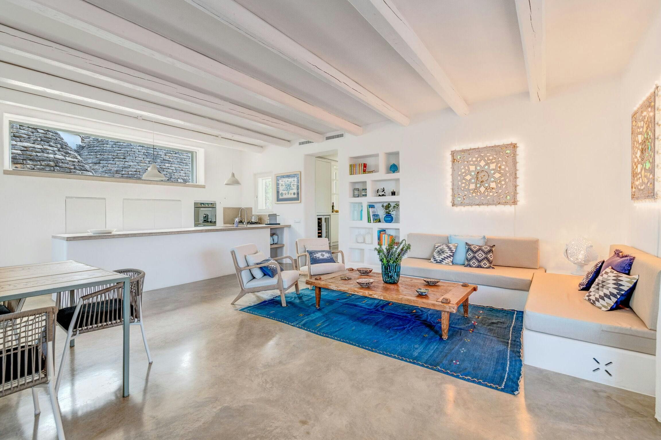 Anyone looking to experience the traditional charm of Puglia will love this home. Featuring the iconic Trullo as well as a range of contemporary comforts, this is the perfect setting for a relaxing retreat. There’s a saltwater pool for refreshing dips and the terrace lends itself perfectly to alfresco dining. Inside, the rooms are simple and family friendly with each of the bedrooms featuring en-suite bathrooms. Housekeeping is included in your stay and your host can help organise a private chef and airport transfers. Plus, it’s just 2 kilometres to the historic centre of Carovigno, while Ostuni is just a ten-minute drive away.