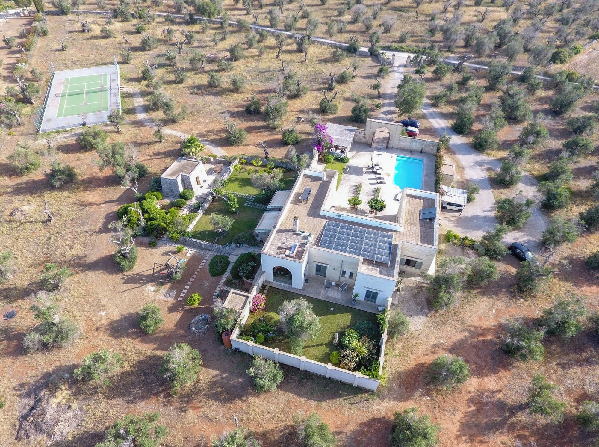 Surrounded by centuries-old olive trees and just a short drive from both the baroque beauty of Lecce and Puglia’s pristine beaches, this home is a peaceful Italian countryside escape. Within the gated two-hectare estate, you’ll find a heated infinity pool, a tennis court, a rooftop terrace with sea views, and even a wood-fired pizza oven. Spend your mornings lounging by the pool, your afternoons exploring charming local villages like Martano or Otranto, and your evenings dining under the stars, a local wine in hand.
