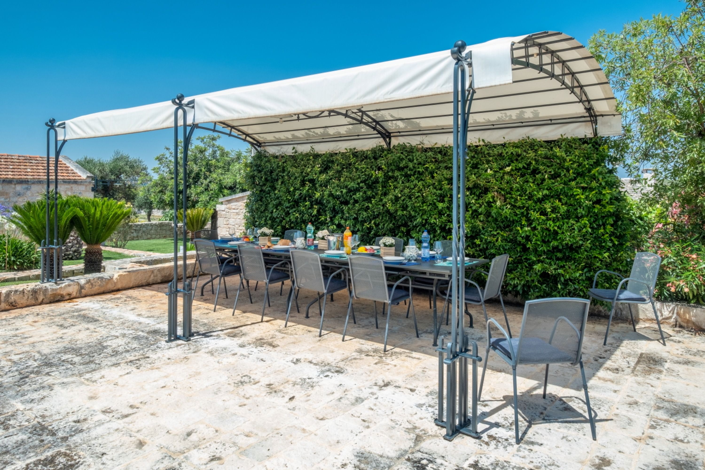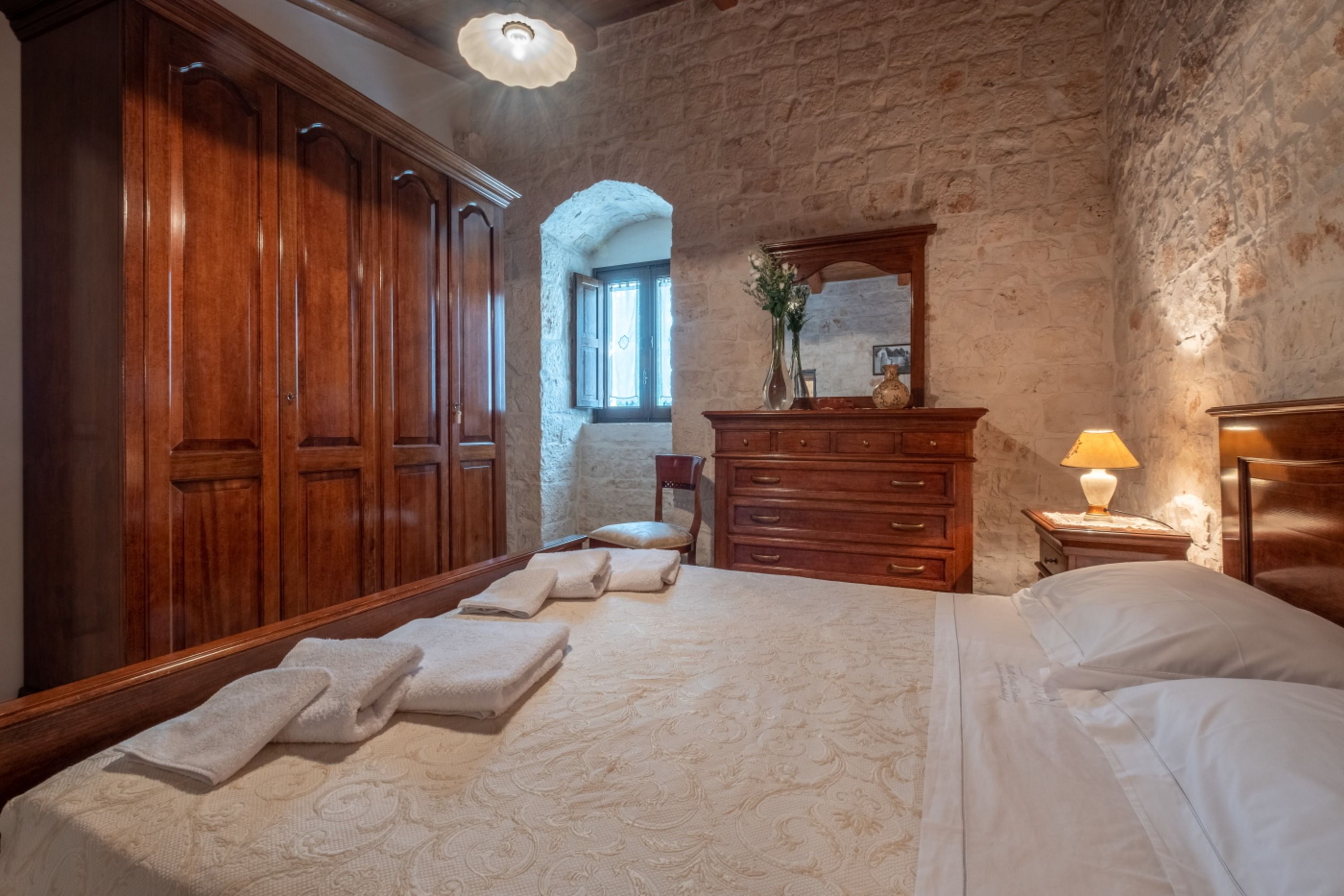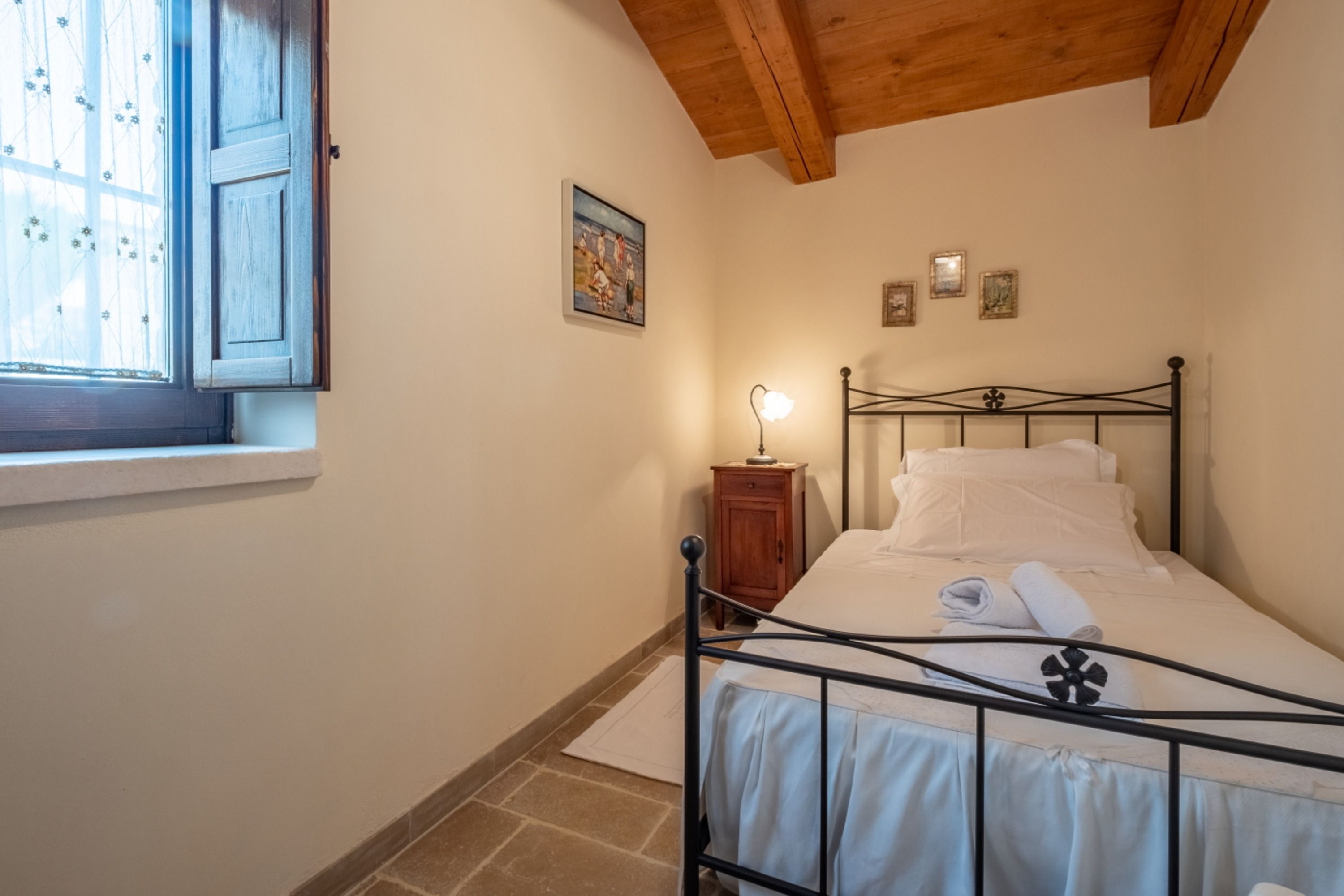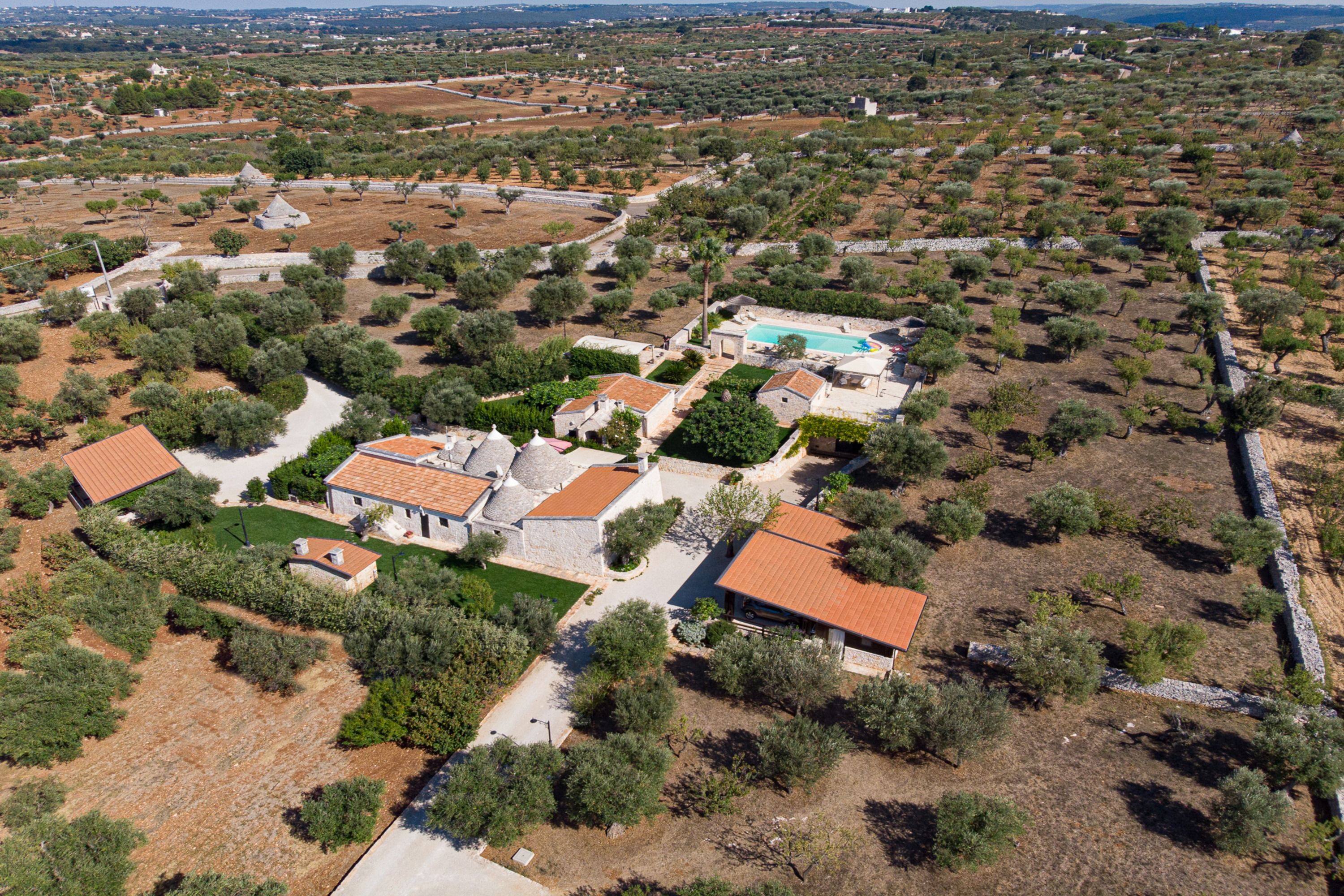 With four self-contained homes, sleeping up to fourteen people, this is a great option for a group getaway or big family holiday. Spend your days sharing the sunny swimming pool or enjoying long lunches on the terrace, then retreat to your own space to relax and unwind. Each home has its own kitchen, living area, and patio, so there’s plenty of room to get comfy, and they all share similar rustic charm and antique furnishings. Location-wise, you’ll be on the outskirts of Castellana Grotte – a town with all the amenities you could need (shops, restaurants, a train station), along with a captivating cave system that’s open to visitors.