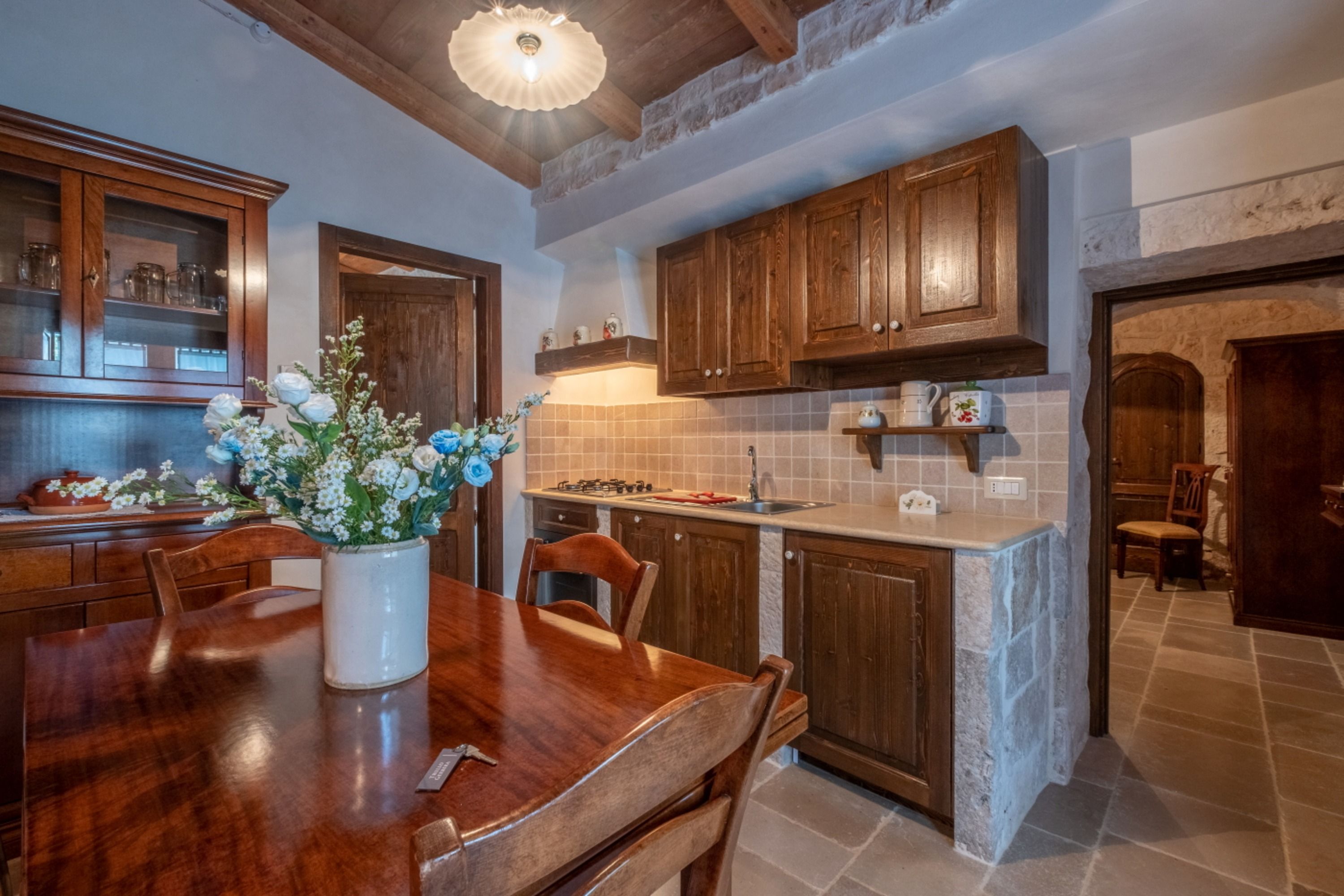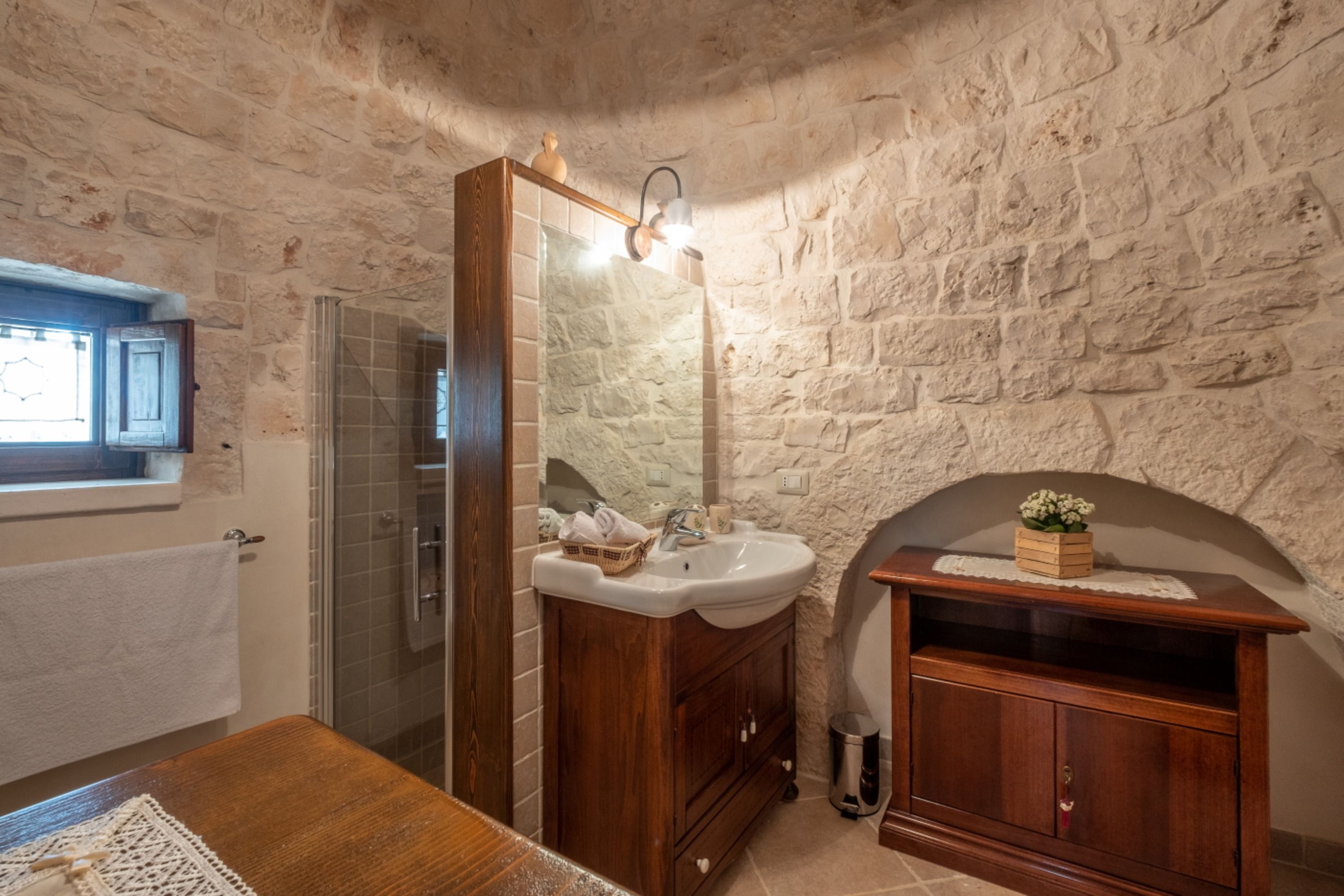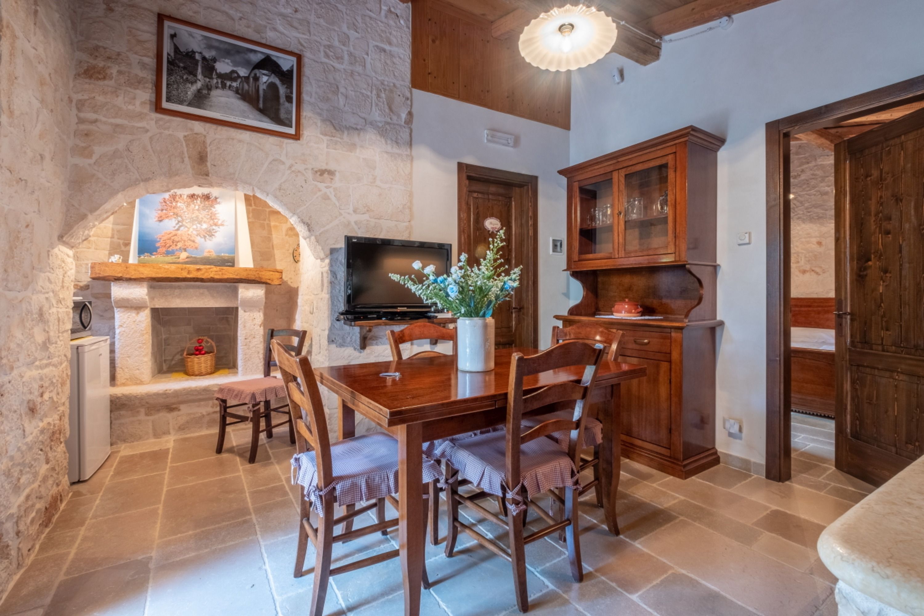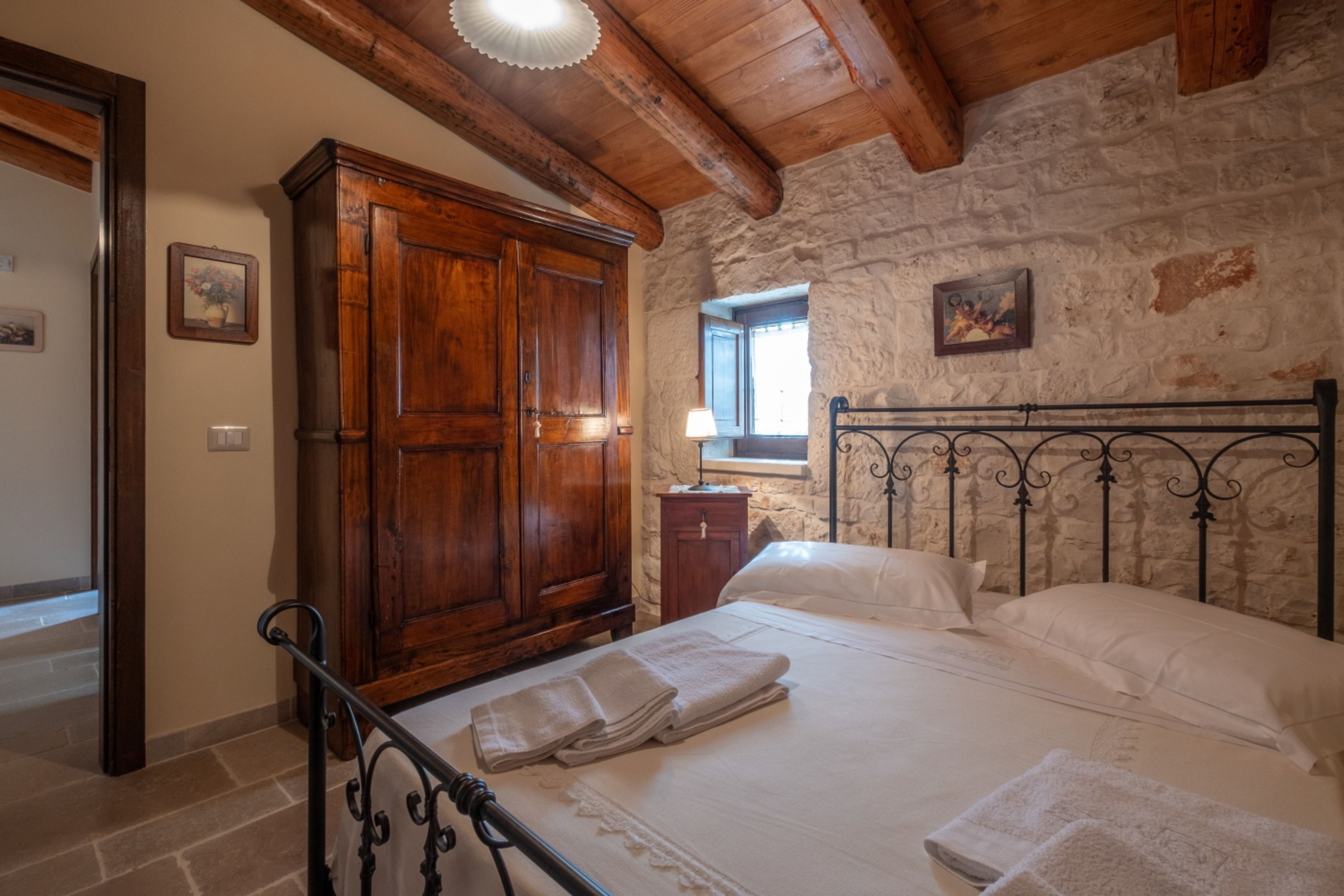 With four self-contained homes, sleeping up to fourteen people, this is a great option for a group getaway or big family holiday. Spend your days sharing the sunny swimming pool or enjoying long lunches on the terrace, then retreat to your own space to relax and unwind. Each home has its own kitchen, living area, and patio, so there’s plenty of room to get comfy, and they all share similar rustic charm and antique furnishings. Location-wise, you’ll be on the outskirts of Castellana Grotte – a town with all the amenities you could need (shops, restaurants, a train station), along with a captivating cave system that’s open to visitors.