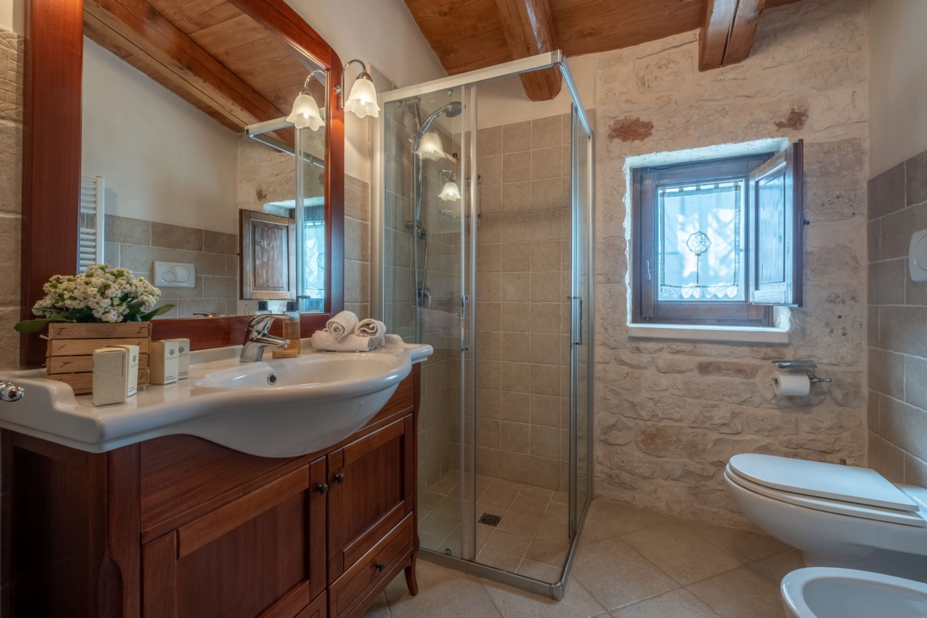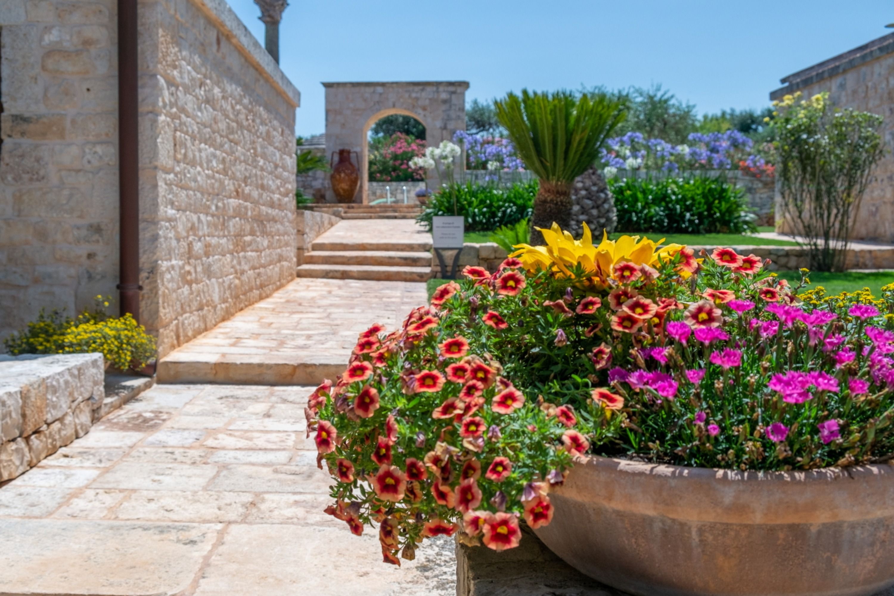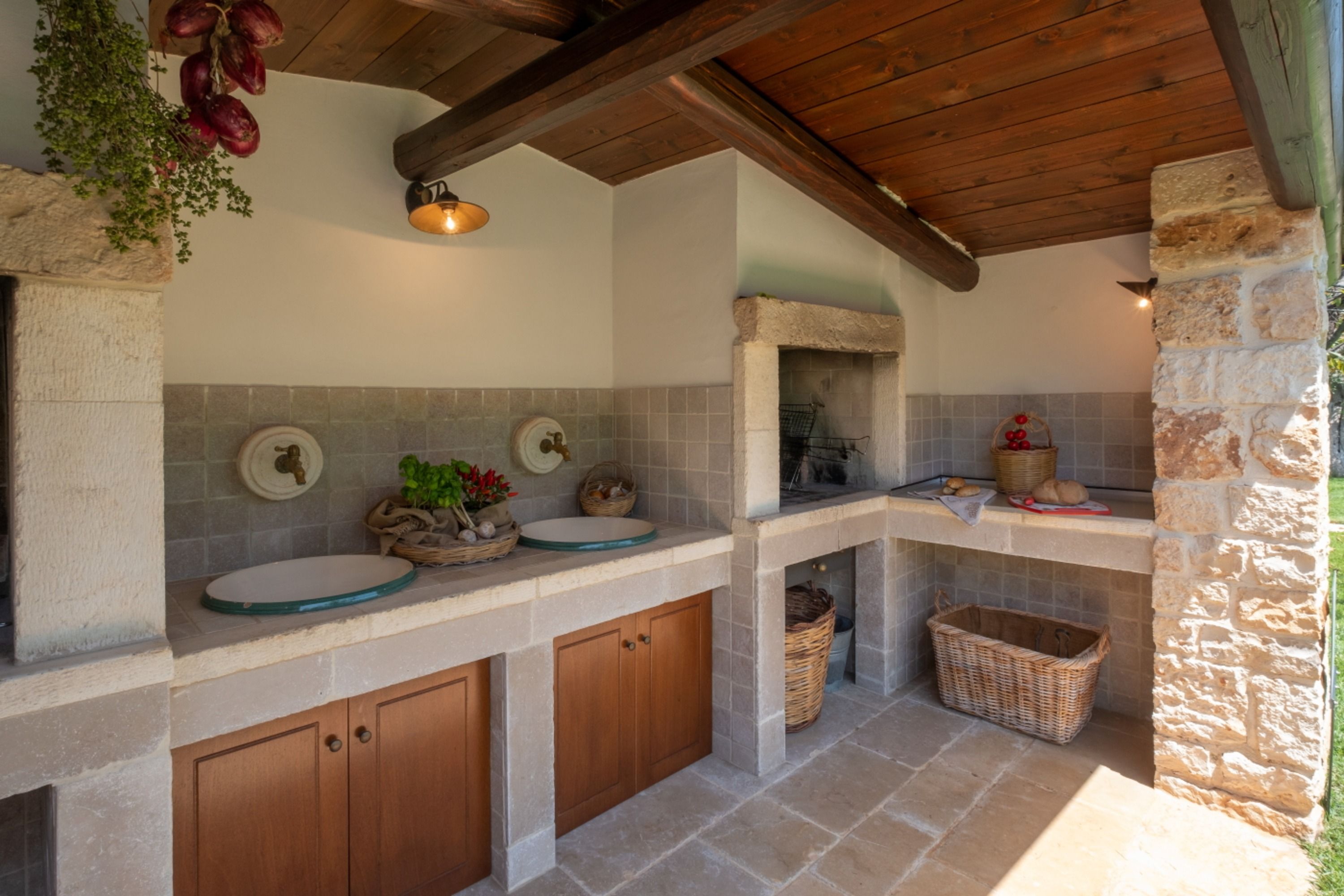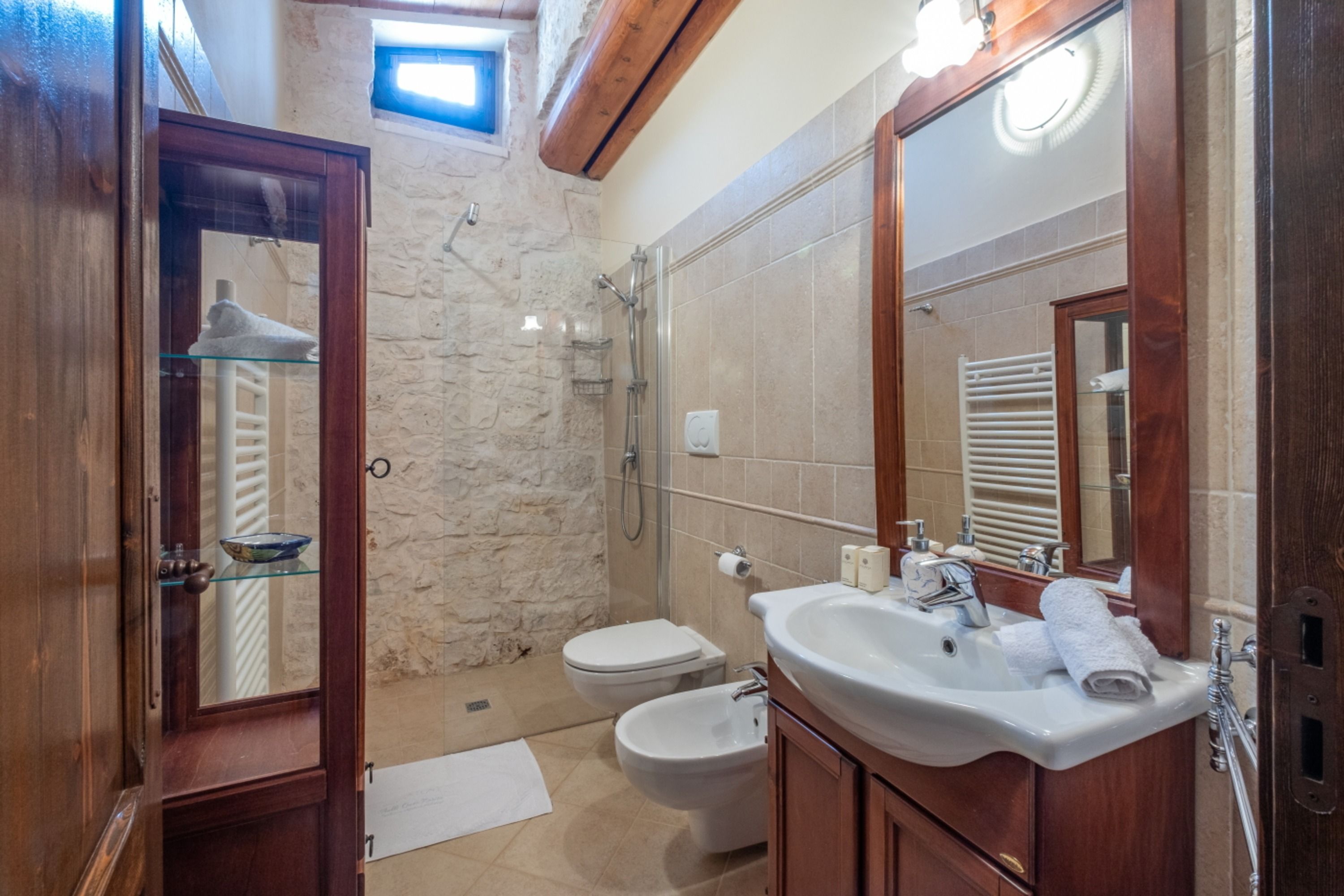 With four self-contained homes, sleeping up to fourteen people, this is a great option for a group getaway or big family holiday. Spend your days sharing the sunny swimming pool or enjoying long lunches on the terrace, then retreat to your own space to relax and unwind. Each home has its own kitchen, living area, and patio, so there’s plenty of room to get comfy, and they all share similar rustic charm and antique furnishings. Location-wise, you’ll be on the outskirts of Castellana Grotte – a town with all the amenities you could need (shops, restaurants, a train station), along with a captivating cave system that’s open to visitors.