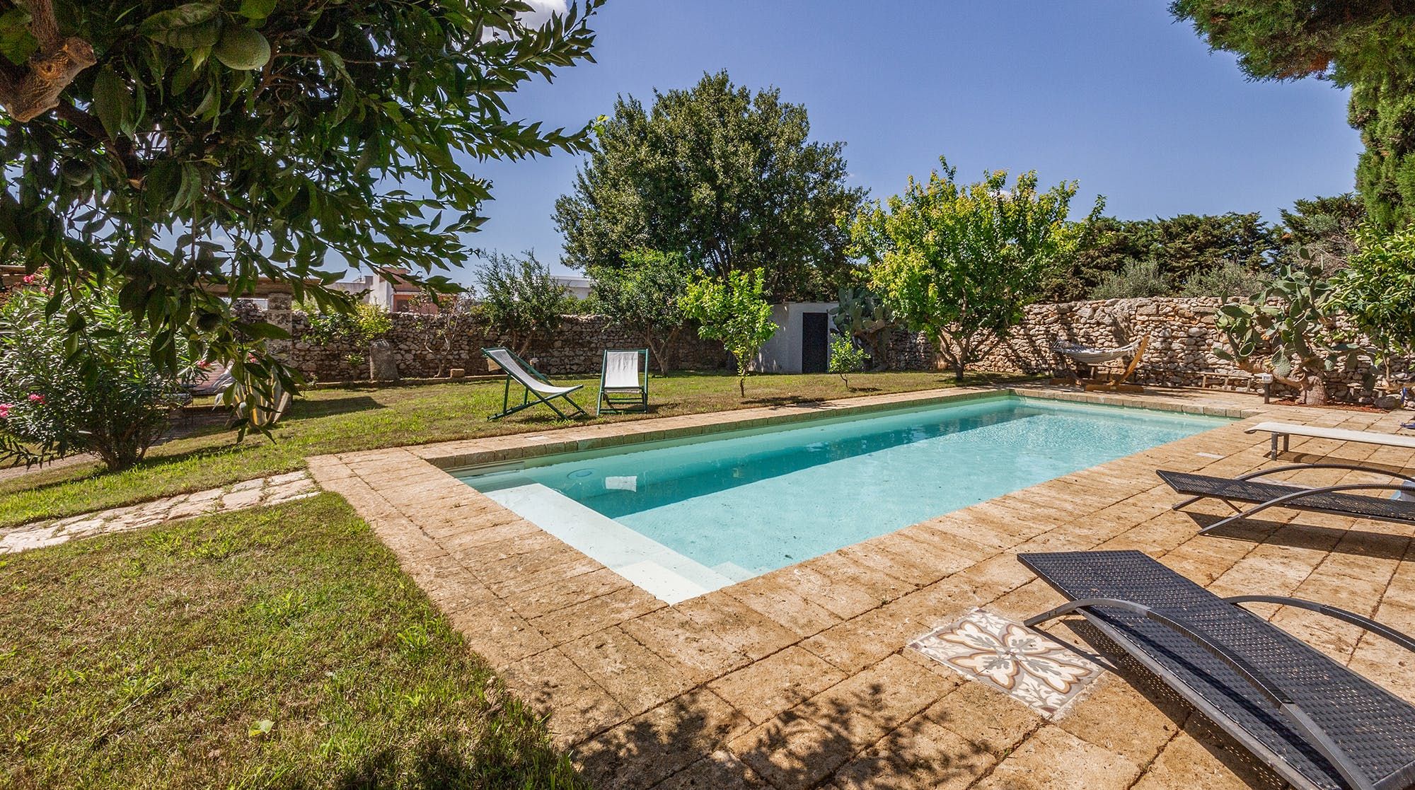 Situated in Lecce's hamlet of Salignano, this villa boasts a heated private pool and a lovely garden with space for sitting out in the sunshine or dining in the shade. The decor here is quite traditional and perhaps won't be to everyone's taste, but we think the location is great. The ancient Heroon Centopietre, an enigmatic tomb of the noble hero Gimignano, is a short walk away, while the Ionian Sea is easily reached by car, whether you head west to the Marina di San Gregorio beach or east to Il Ciolo.