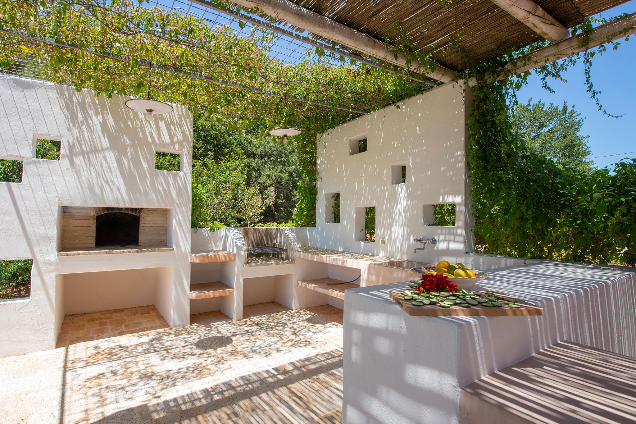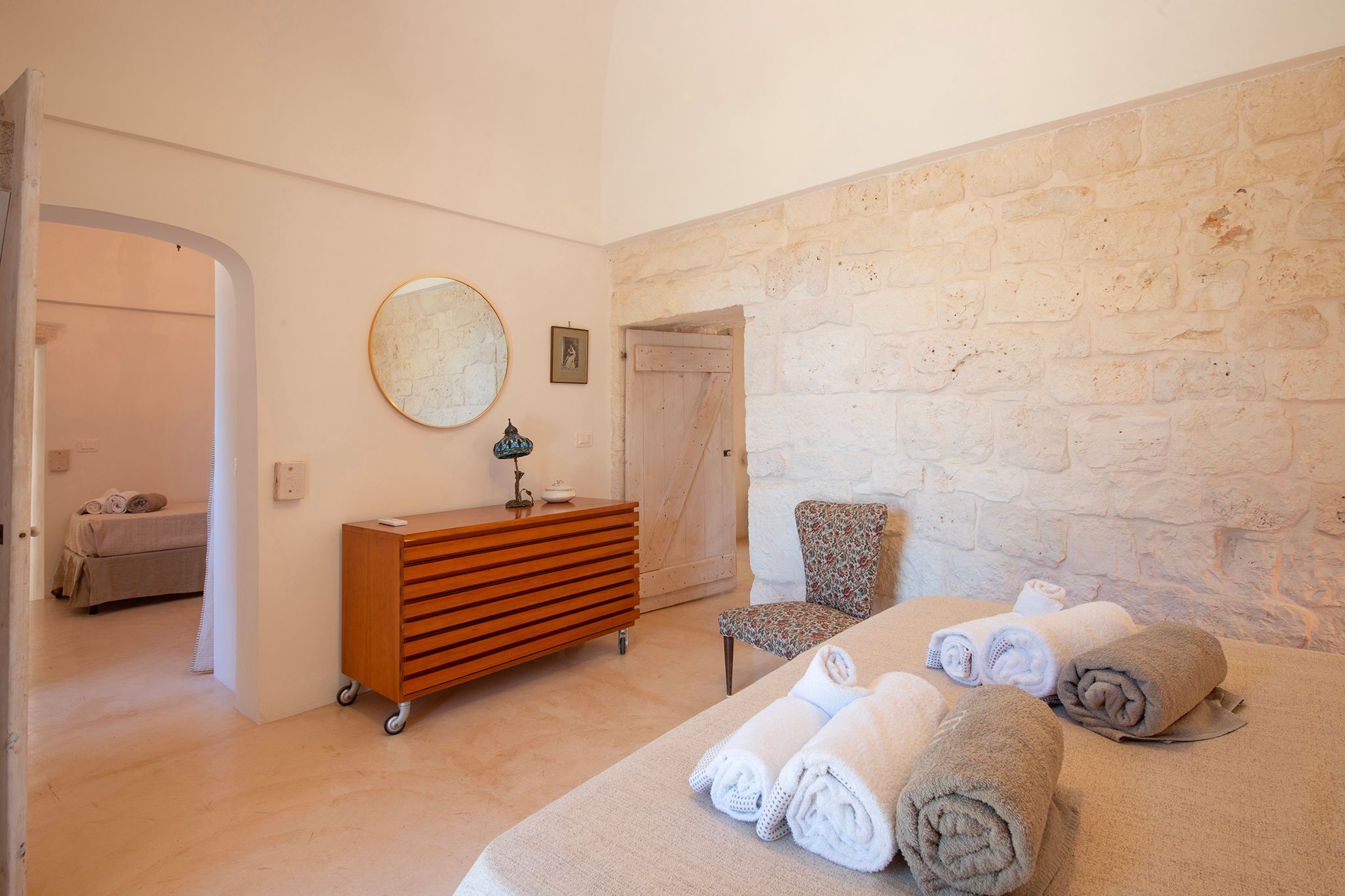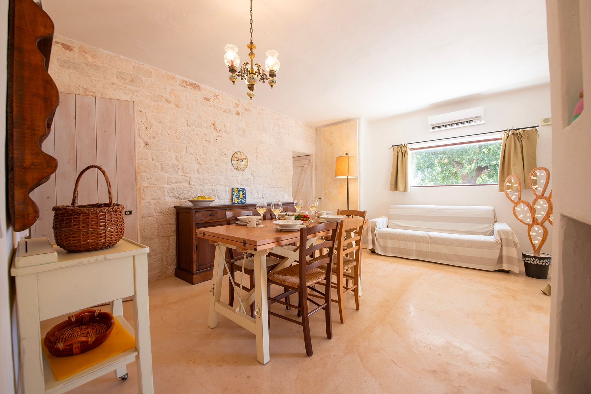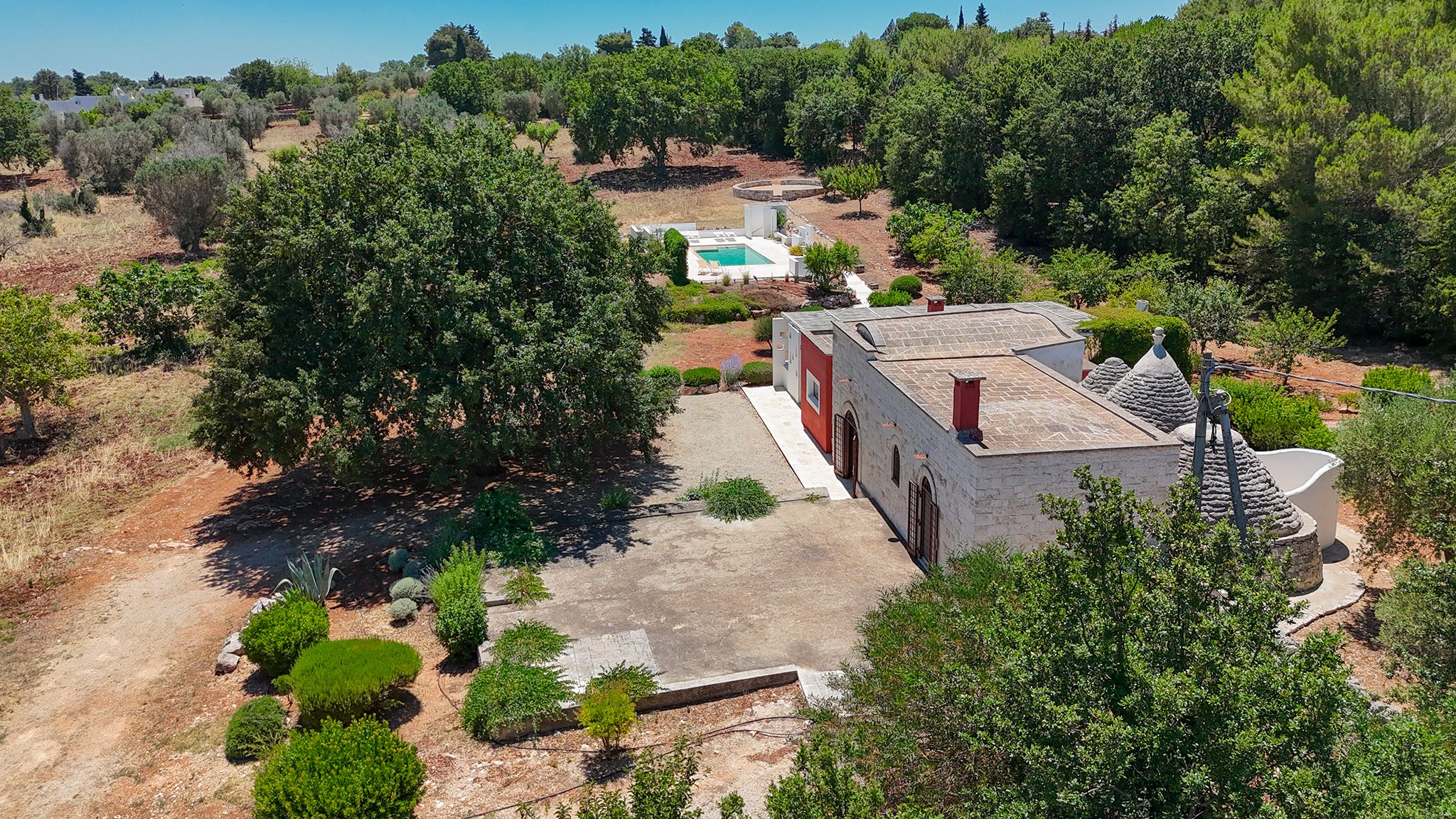 Set deep within the Apulian countryside, this villa offers a true taste of rural Italian life. Comprising a historic trullo and two smaller buildings, the space has a rustic, homely feel, with bare stone walls and cave-like ceilings. Days here are best spent lounging by the pool or cooking up an alfresco feast in the outdoor kitchen – better yet, bring in a chef to prepare local delicacies while you relax. Location-wise, the surrounding countryside is dotted with vineyards and olive groves, while the charming town of Ceglie Messapica is just 6 kilometres away and a scenic thirty-minute drive brings you to the Adriatic coast.
