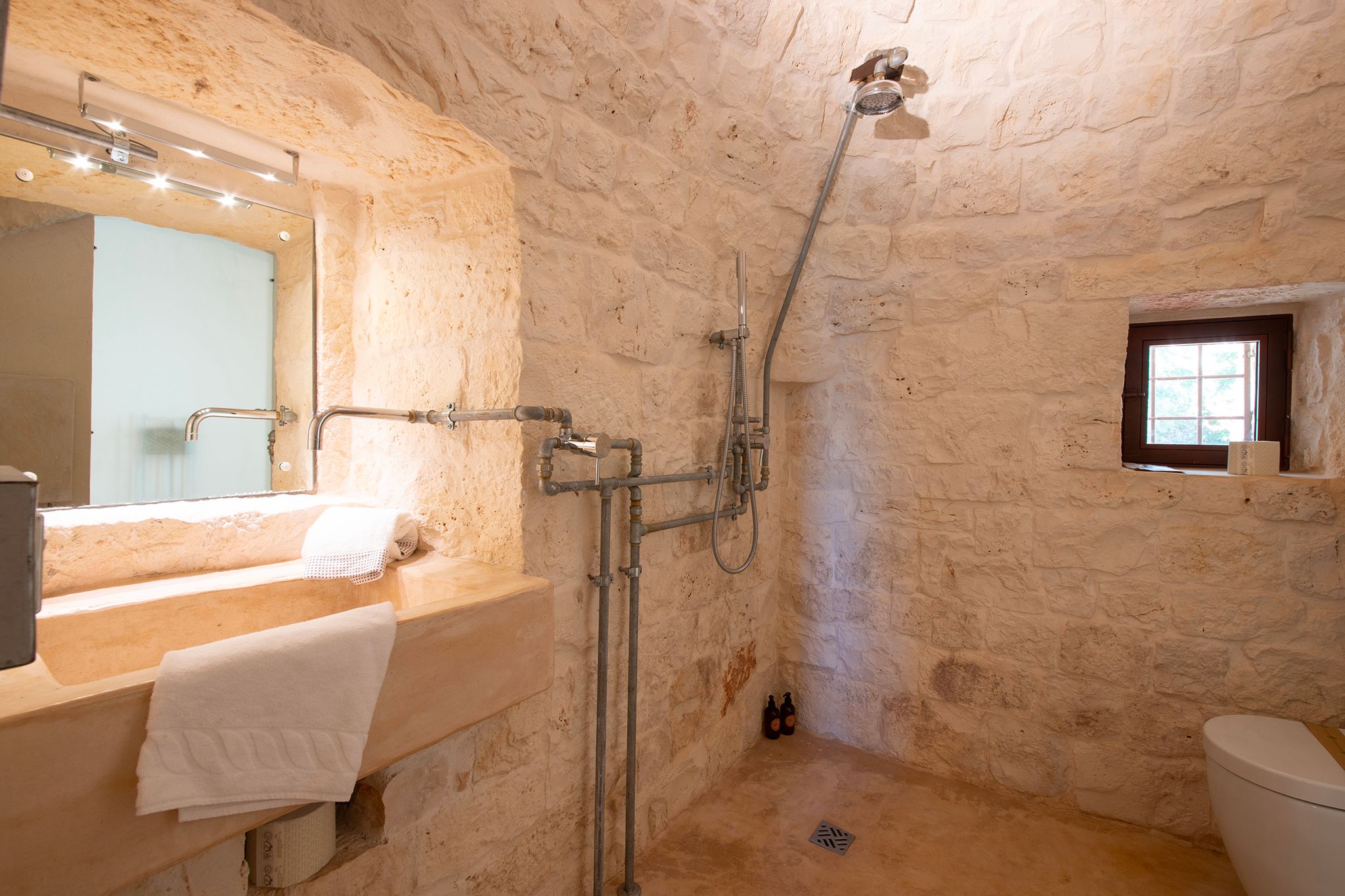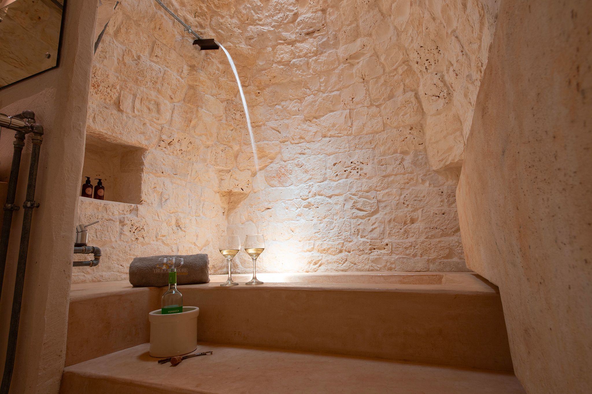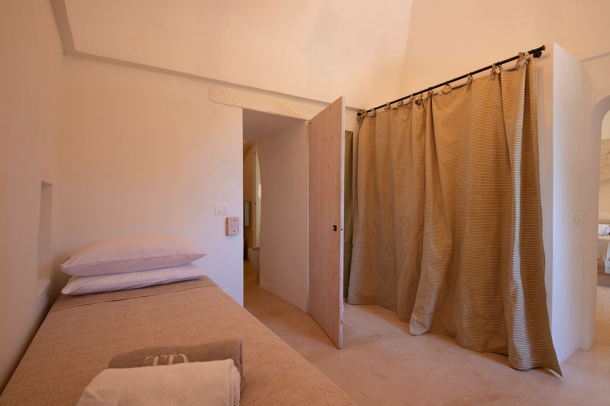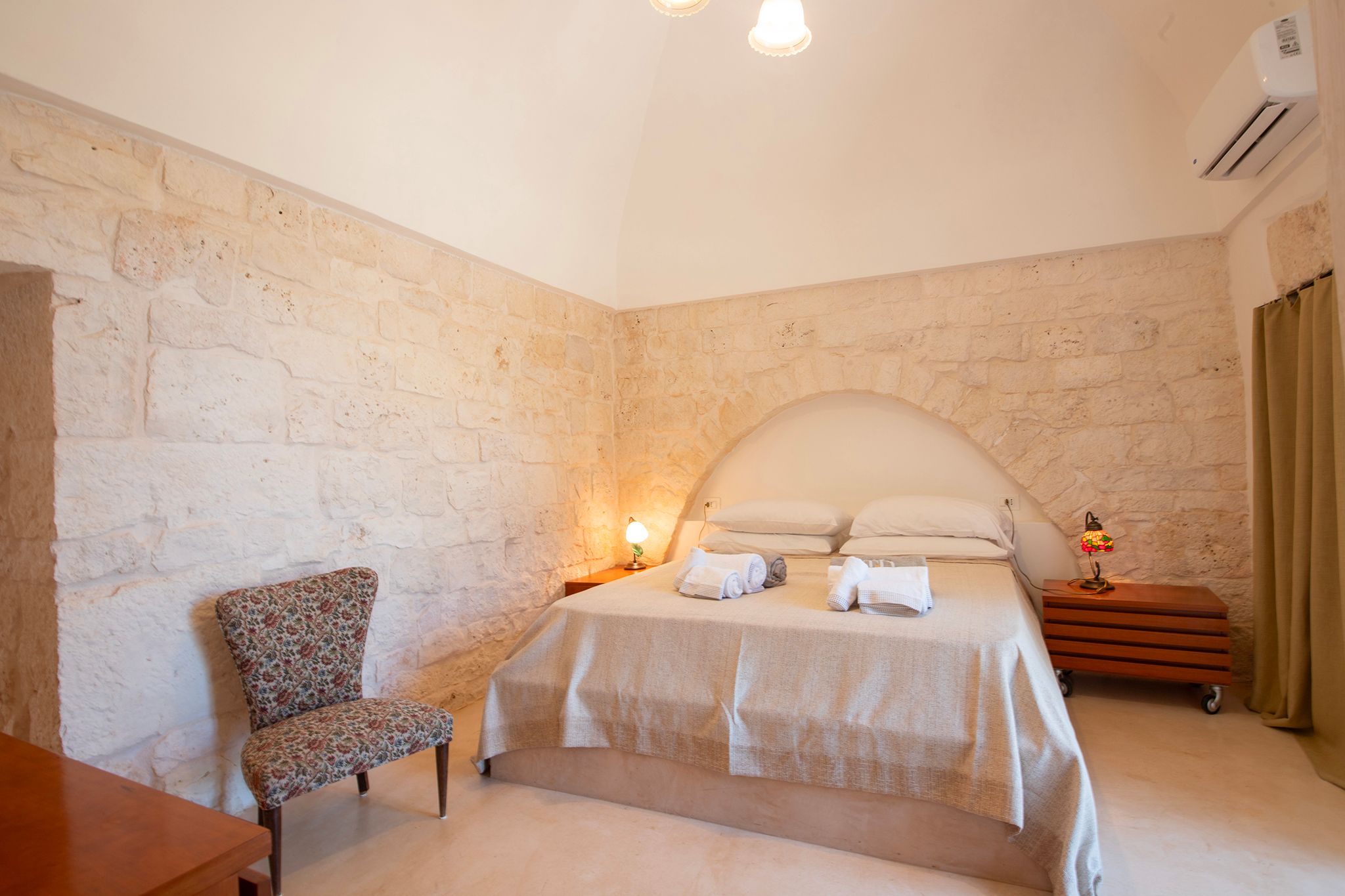 Set deep within the Apulian countryside, this villa offers a true taste of rural Italian life. Comprising a historic trullo and two smaller buildings, the space has a rustic, homely feel, with bare stone walls and cave-like ceilings. Days here are best spent lounging by the pool or cooking up an alfresco feast in the outdoor kitchen – better yet, bring in a chef to prepare local delicacies while you relax. Location-wise, the surrounding countryside is dotted with vineyards and olive groves, while the charming town of Ceglie Messapica is just 6 kilometres away and a scenic thirty-minute drive brings you to the Adriatic coast.