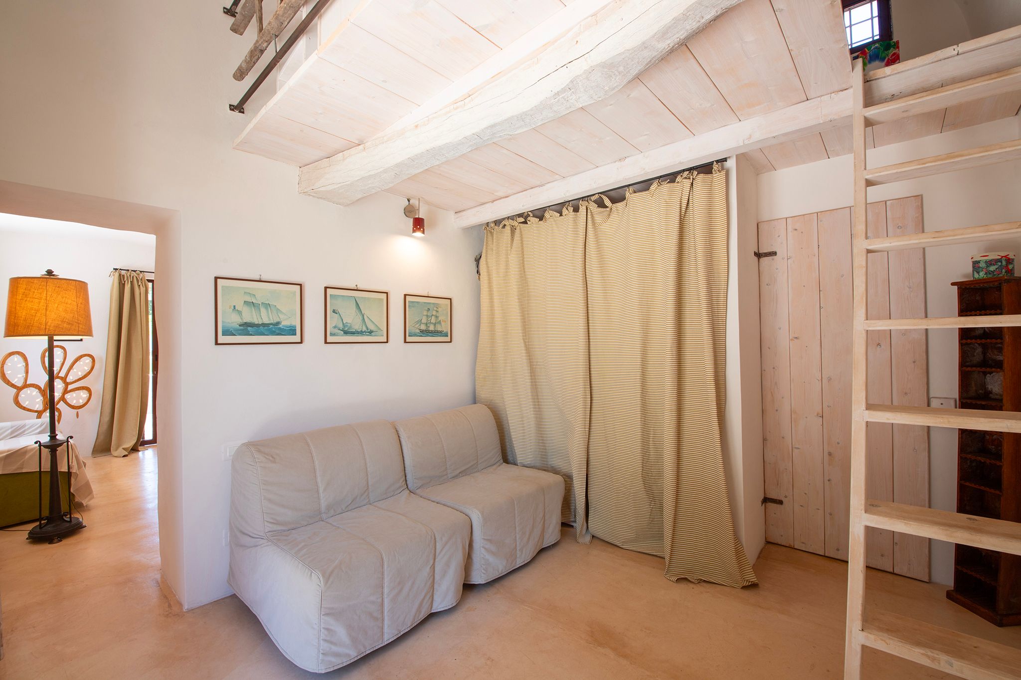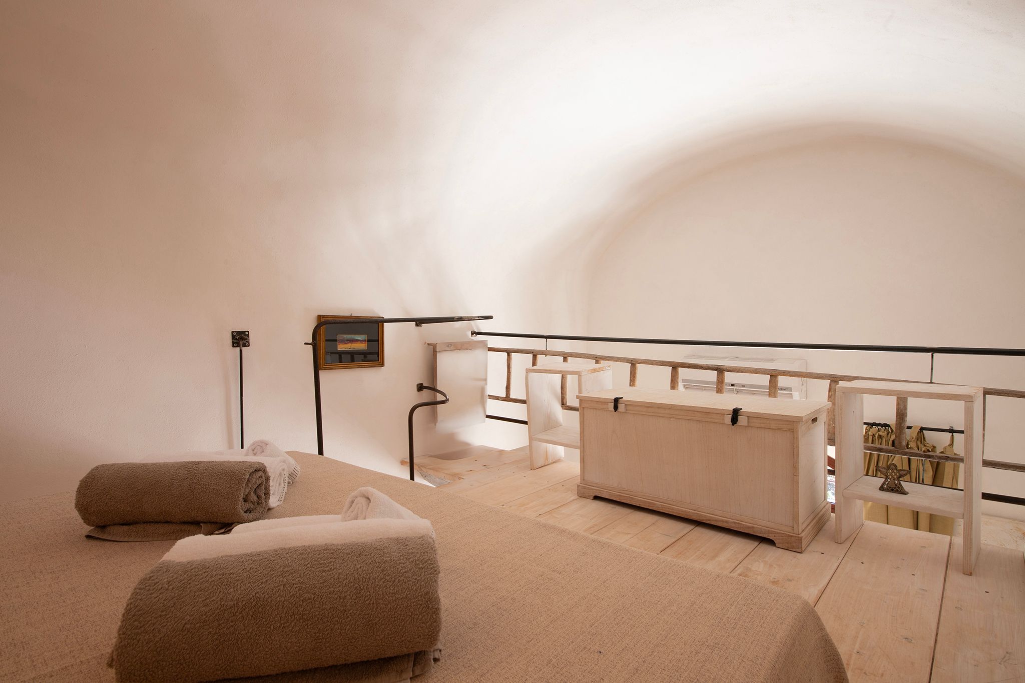 *One of the bedrooms is located on the mezzanine level, which is accessed via narrow stairs and is semi-open to the space below, so privacy is limited.