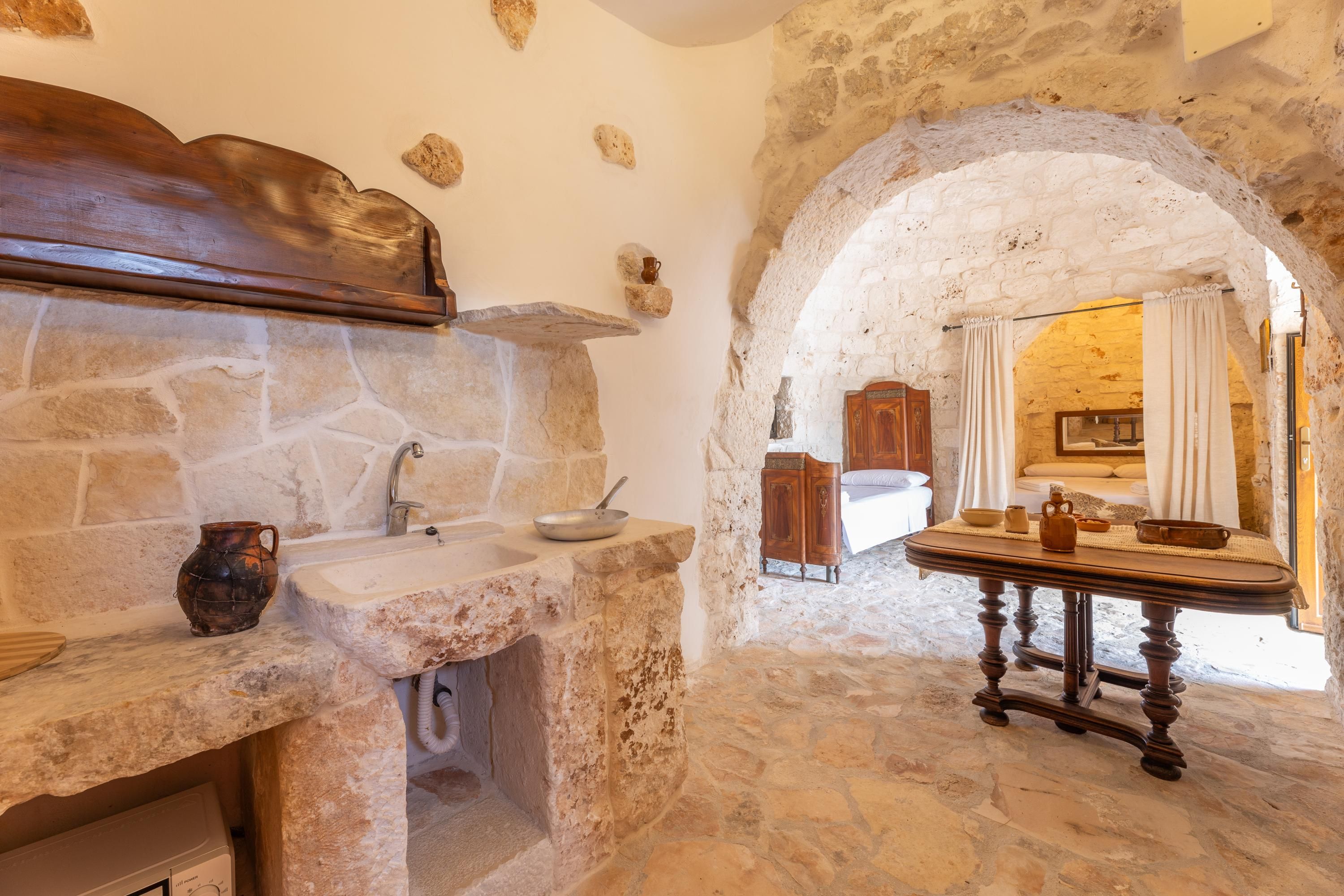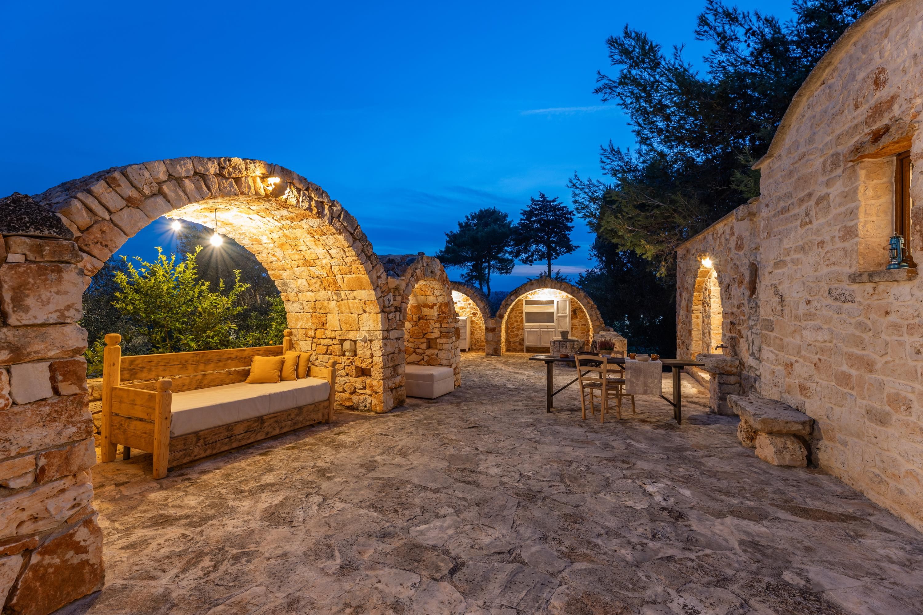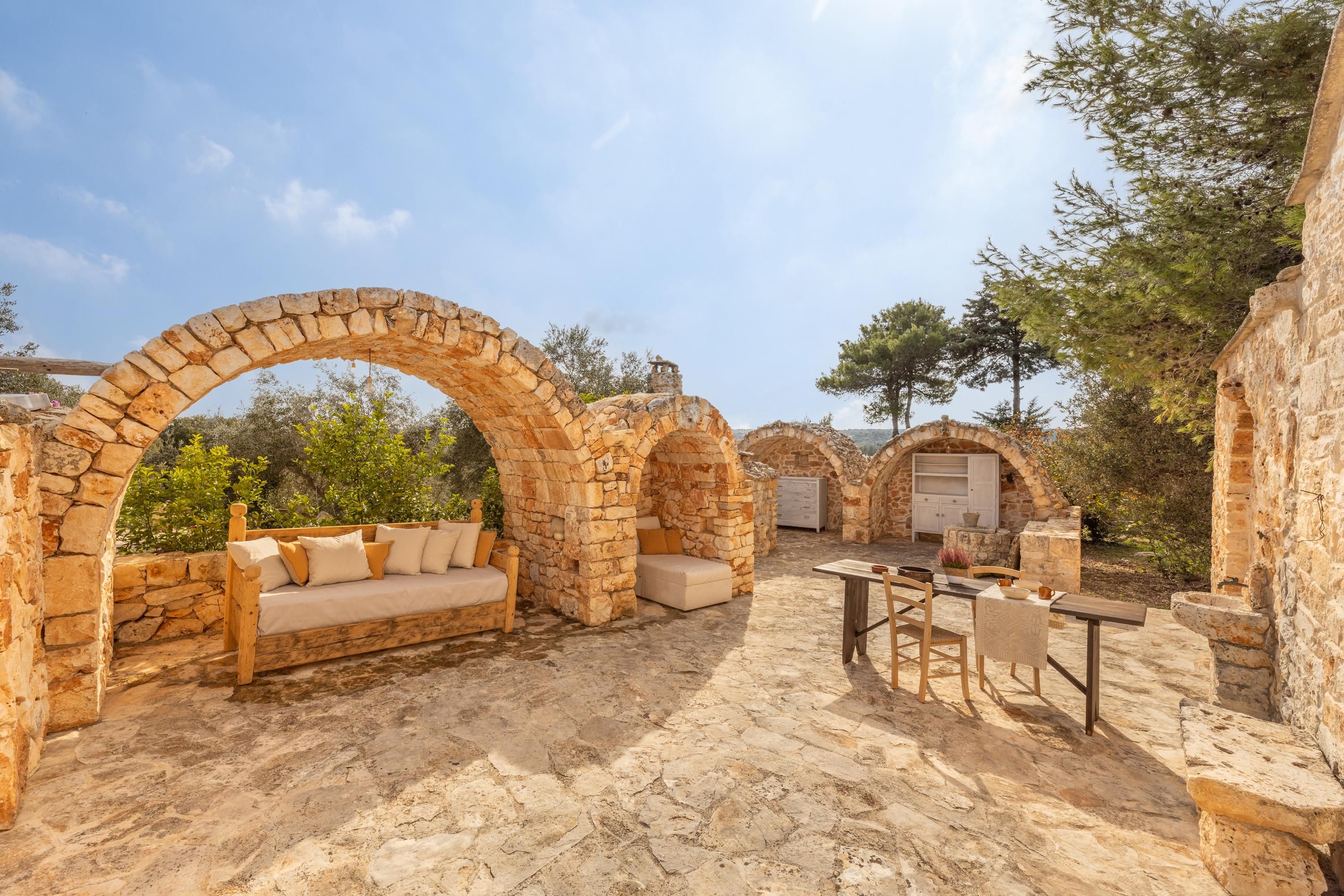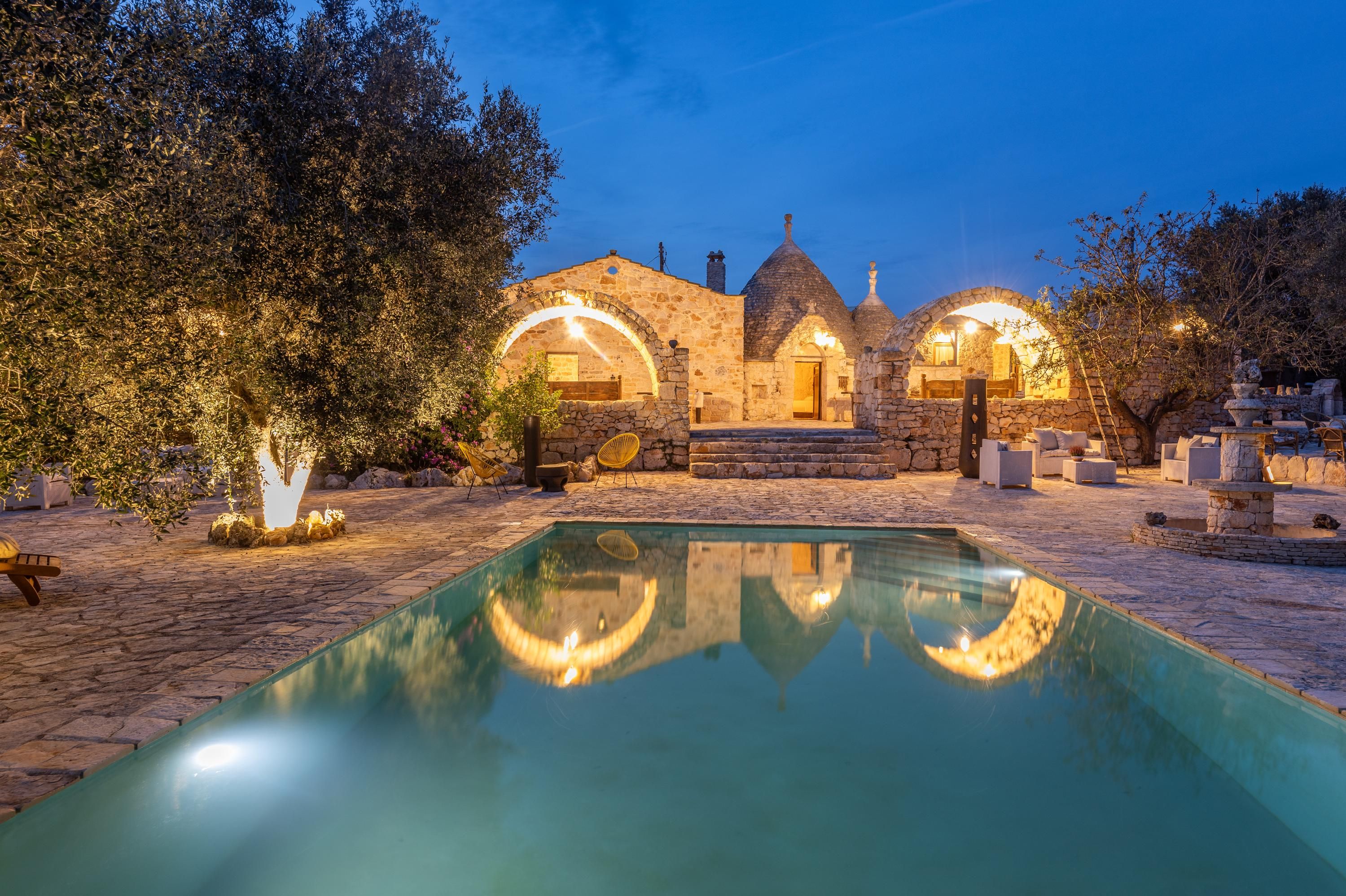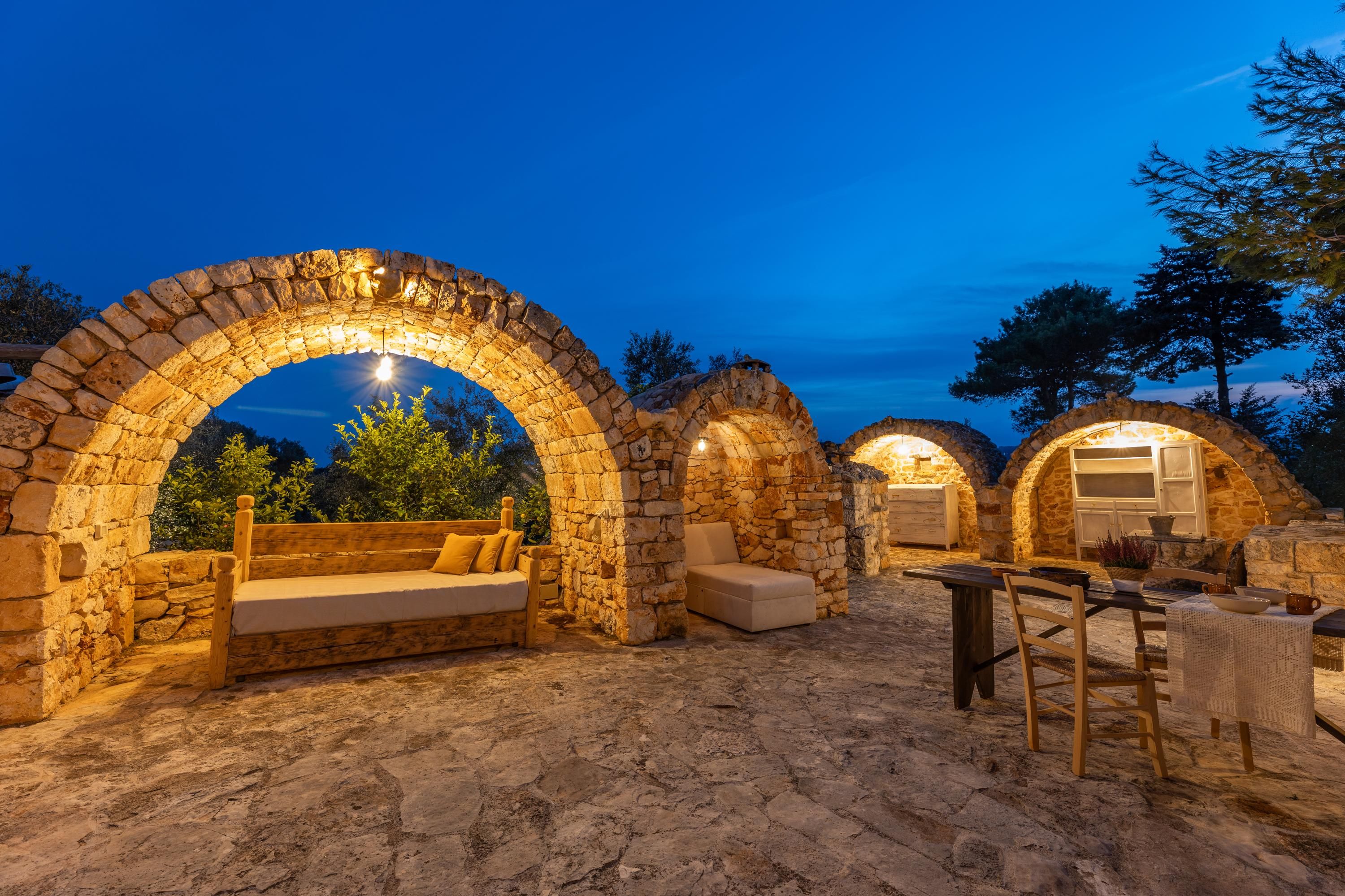 Exploring Puglia’s prettiest towns couldn’t be easier from this cluster of traditional trulli. You’re just minutes from Ceglie Messapica’s old town and restaurants, and a short drive from postcard-perfect spots like Ostuni and Locorotondo. The trulli might be simple inside, but the charm of their rustic stone walls, archways, and unique shape is undeniable. Outside is where the real magic happens, though – lazy afternoons by the pool, long lunches in the outdoor kitchen, and plenty of space for everyone to stretch out on the daybeds and soak up the southern sunshine.