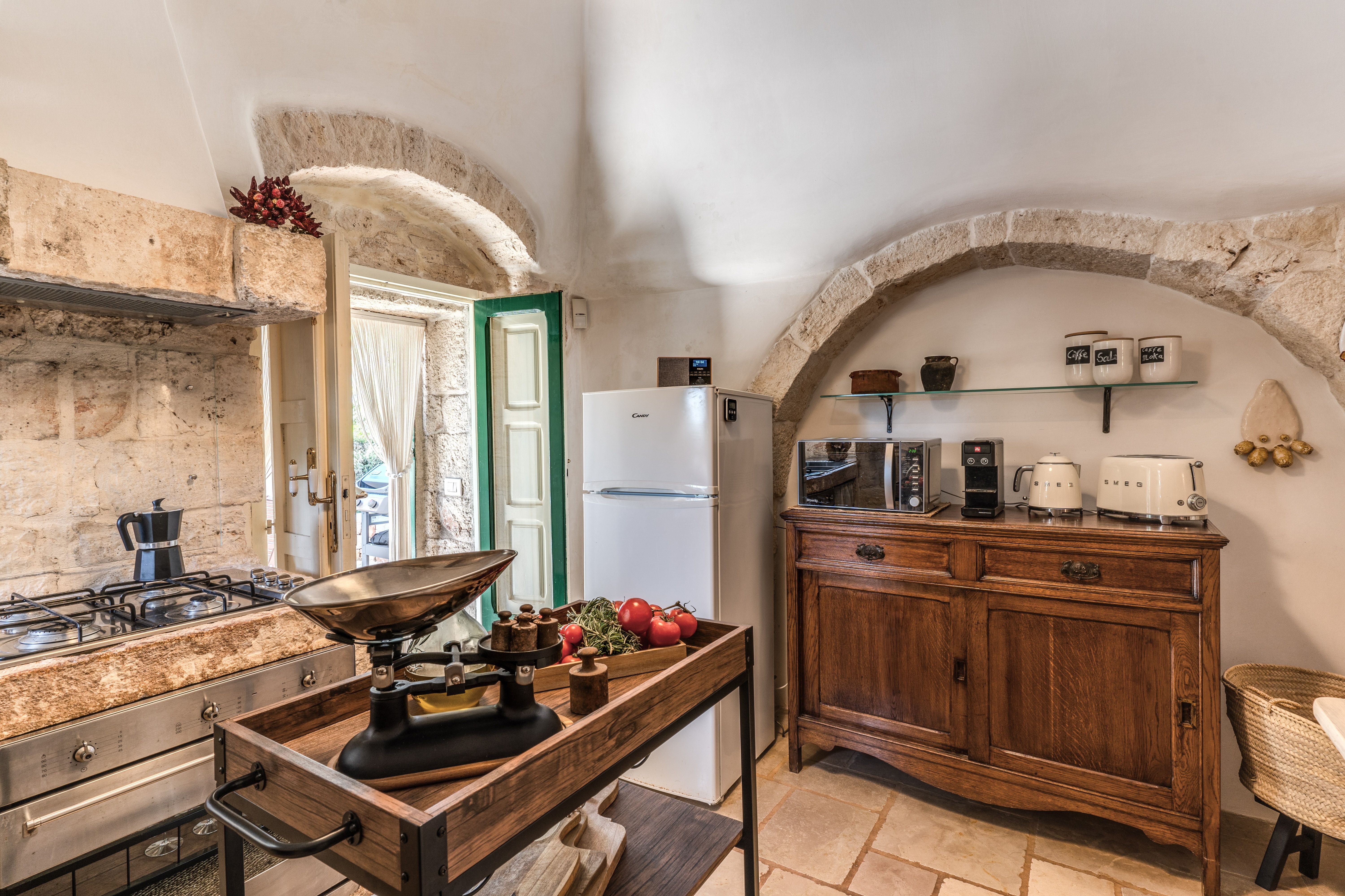 The traditional stone building has plenty of original touches – you'll love the conical roofs and decorative fireplace that provides a rustic charm. When you get hungry, you can head to the kitchen and cook up your favourite pasta dishes using fresh local ingredients. And, there's no better place to serve up your culinary creations than outside on the patio, as you breathe in the fresh air and admire the lush greenery surrounding you.
