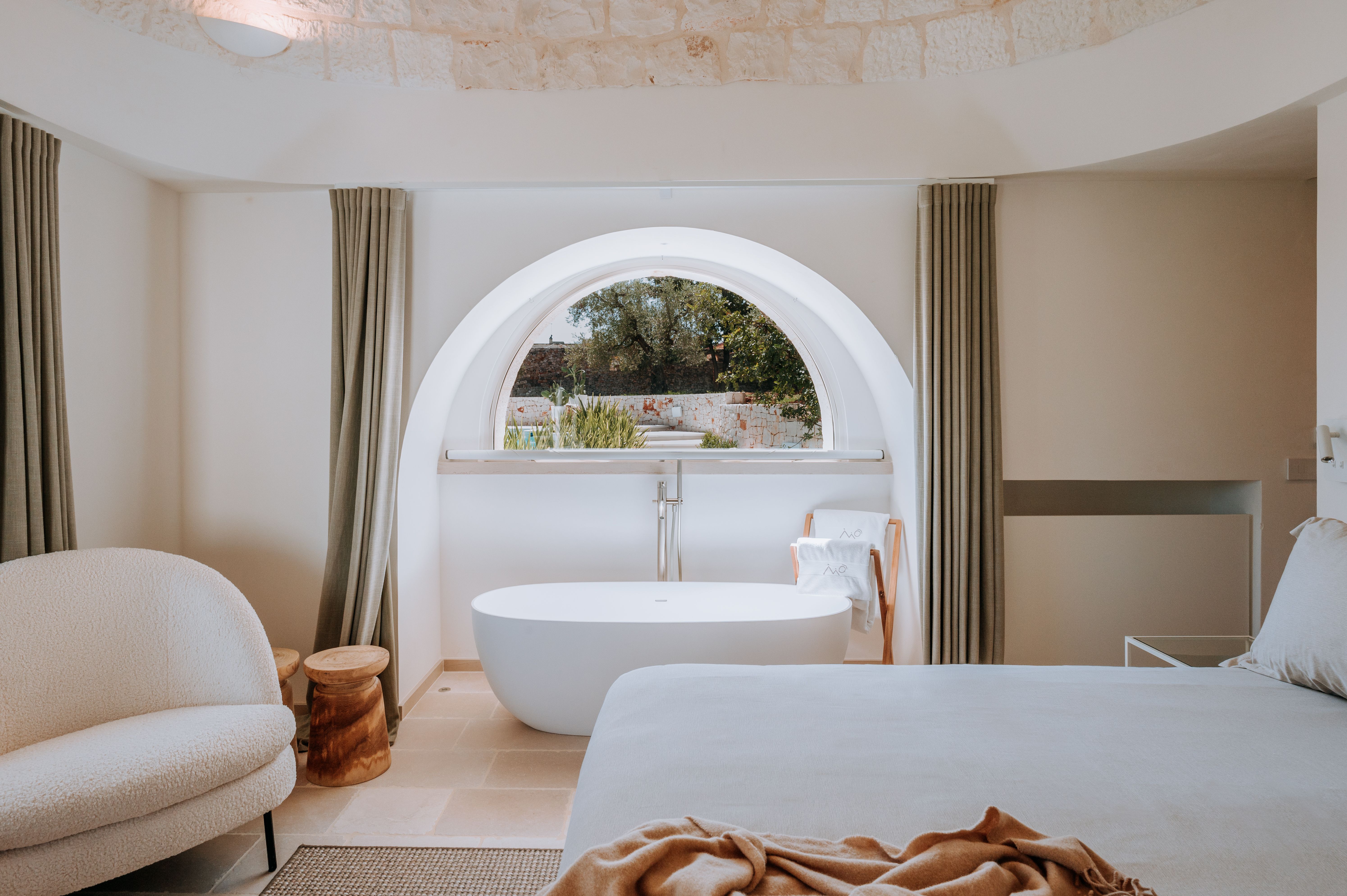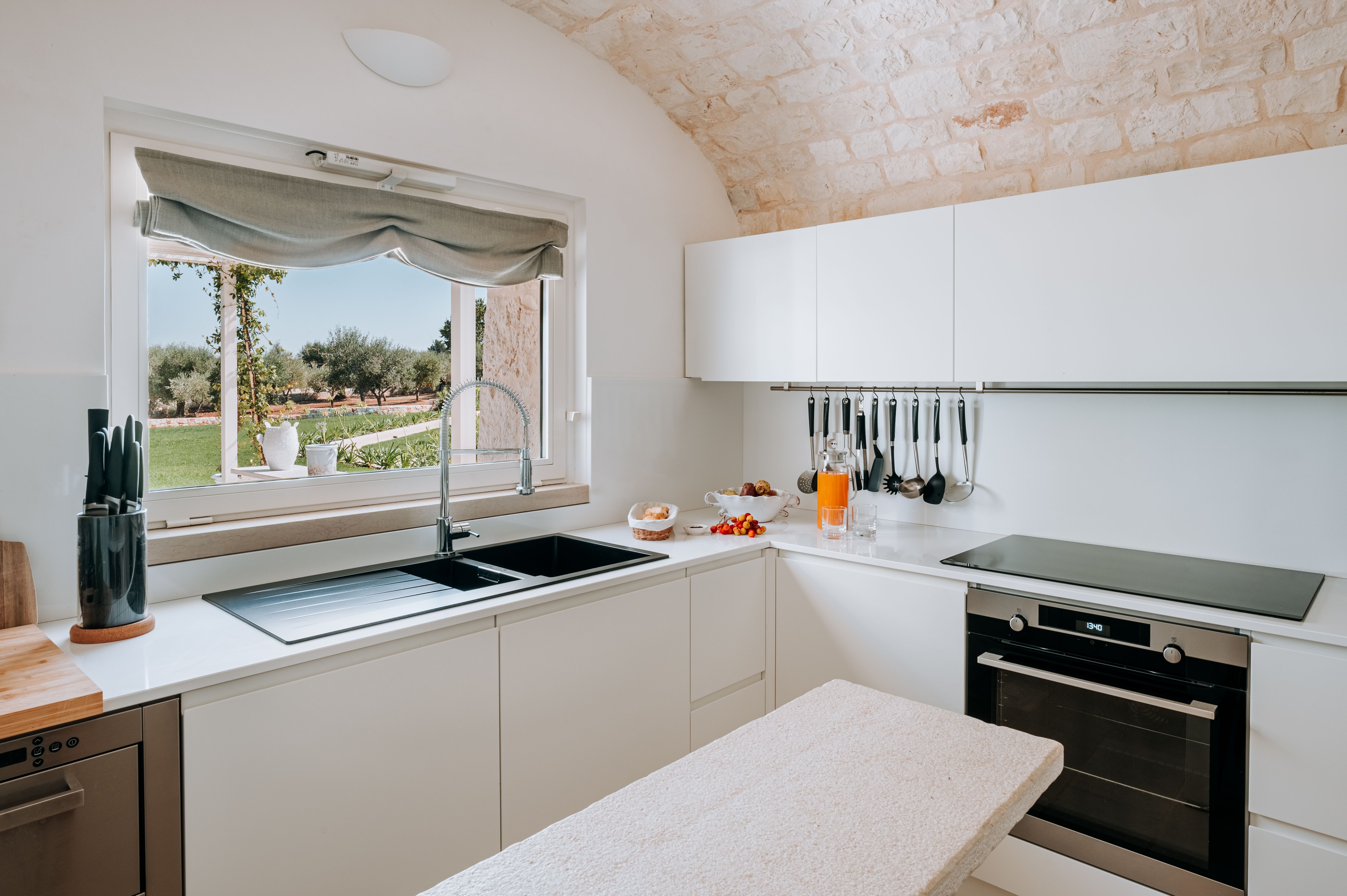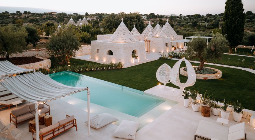 Rest and relaxation are key at this beautiful Puglian home. It’s spread between the main house and a one-bedroom annex, so is ideal for a big family group, or friends travelling together. Inside, you’ll find tranquil spaces decked out in local stone, while outside is all about the surroundings – this home is situated amid six hectares of parkland, surrounded by centuries-old olive trees and Mediterranean gardens. If you’re anything like us, you’ll spend most of your time in the heated salt-water pool or dining alfresco in the summer kitchen. Your host can arrange yoga classes and massages on the pavilion, in addition to gourmet dinners – it’s practically impossible to feel stressed here.