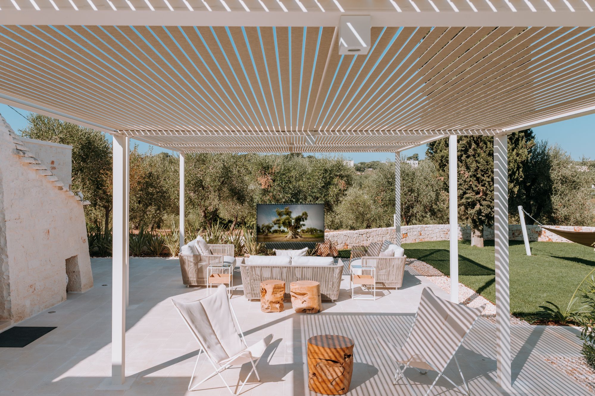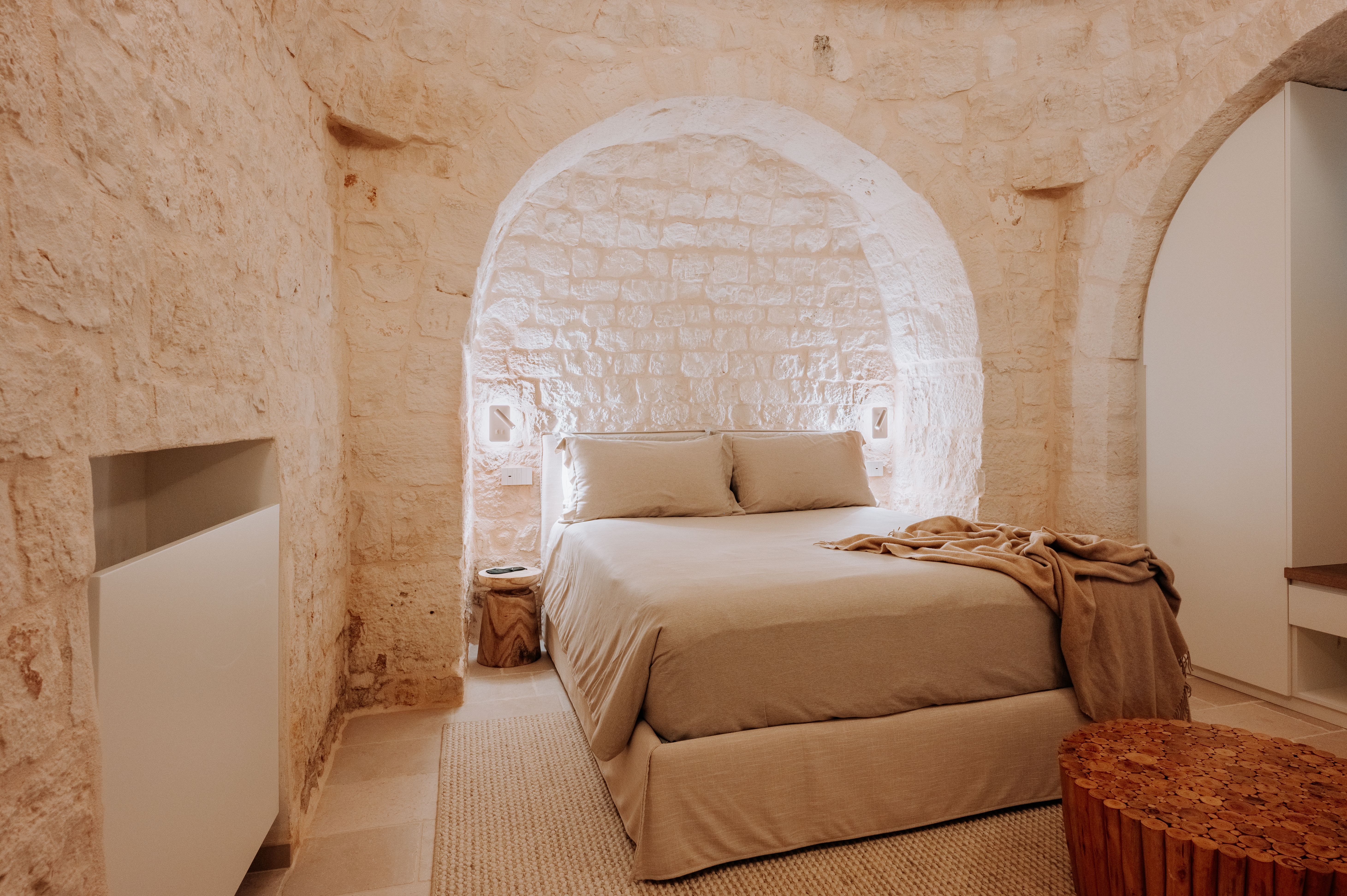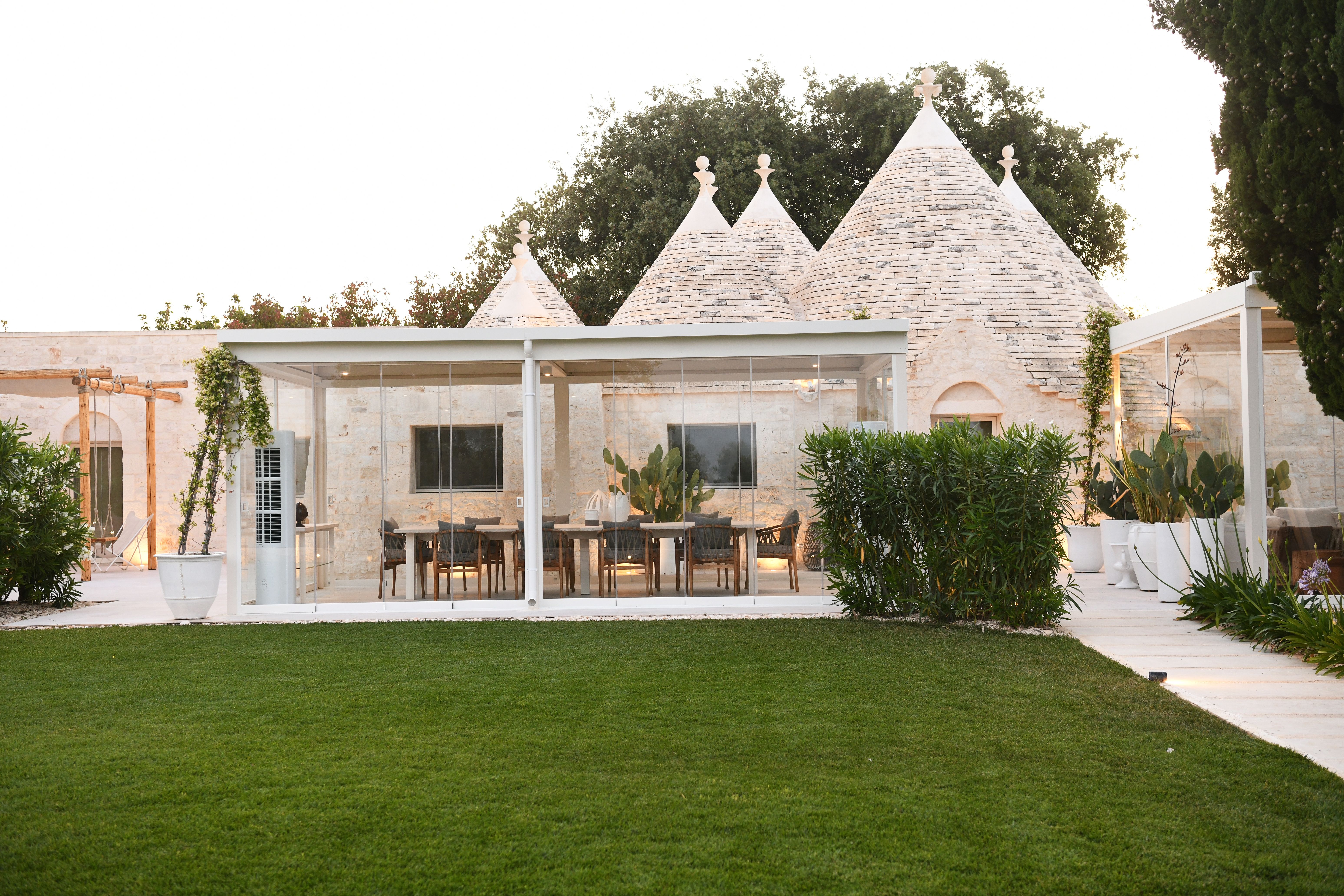 Rest and relaxation are key at this beautiful Puglian home. It’s spread between the main house and a one-bedroom annex, so is ideal for a big family group, or friends travelling together. Inside, you’ll find tranquil spaces decked out in local stone, while outside is all about the surroundings – this home is situated amid six hectares of parkland, surrounded by centuries-old olive trees and Mediterranean gardens. If you’re anything like us, you’ll spend most of your time in the heated salt-water pool or dining alfresco in the summer kitchen. Your host can arrange yoga classes and massages on the pavilion, in addition to gourmet dinners – it’s practically impossible to feel stressed here.
