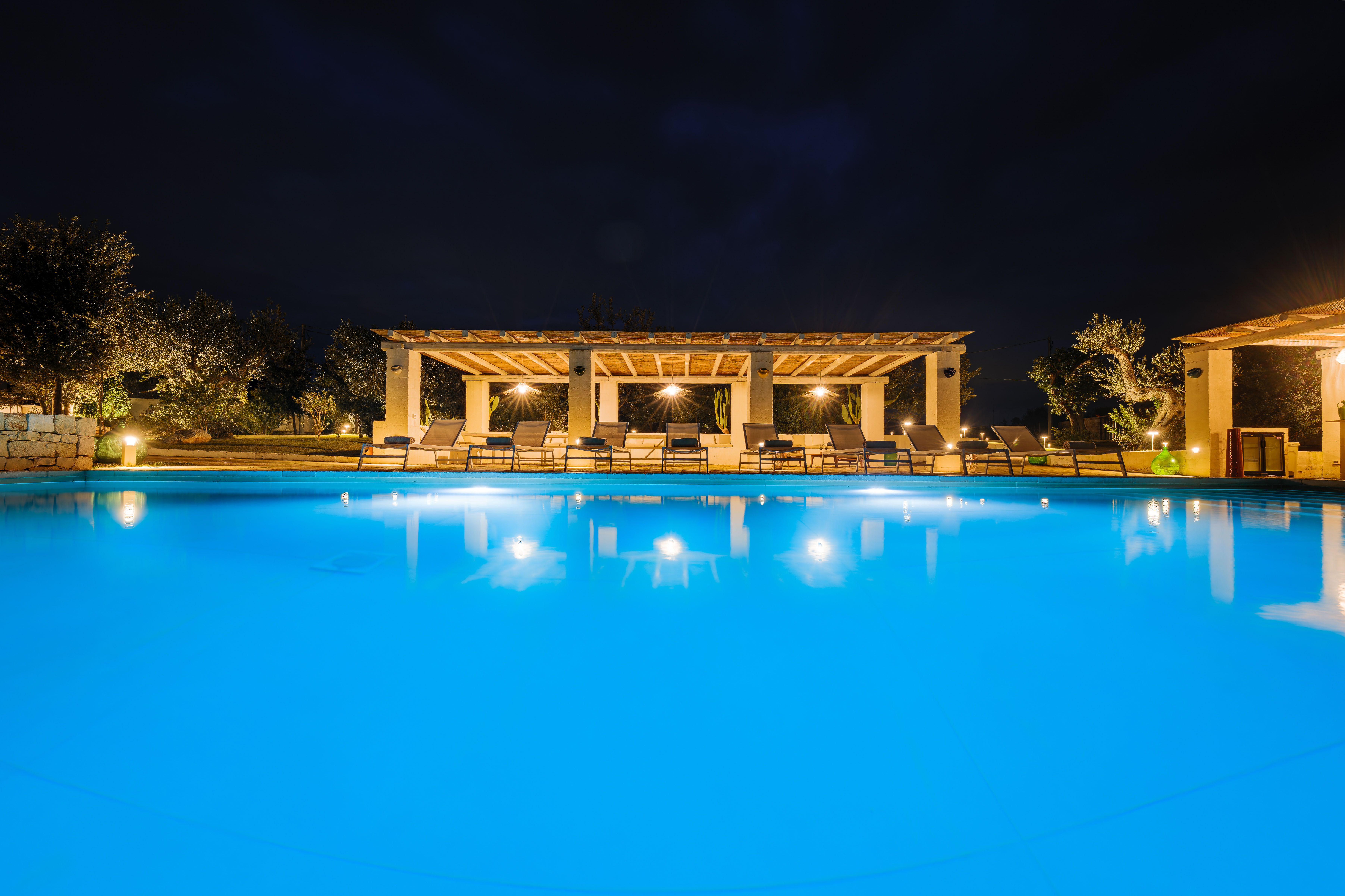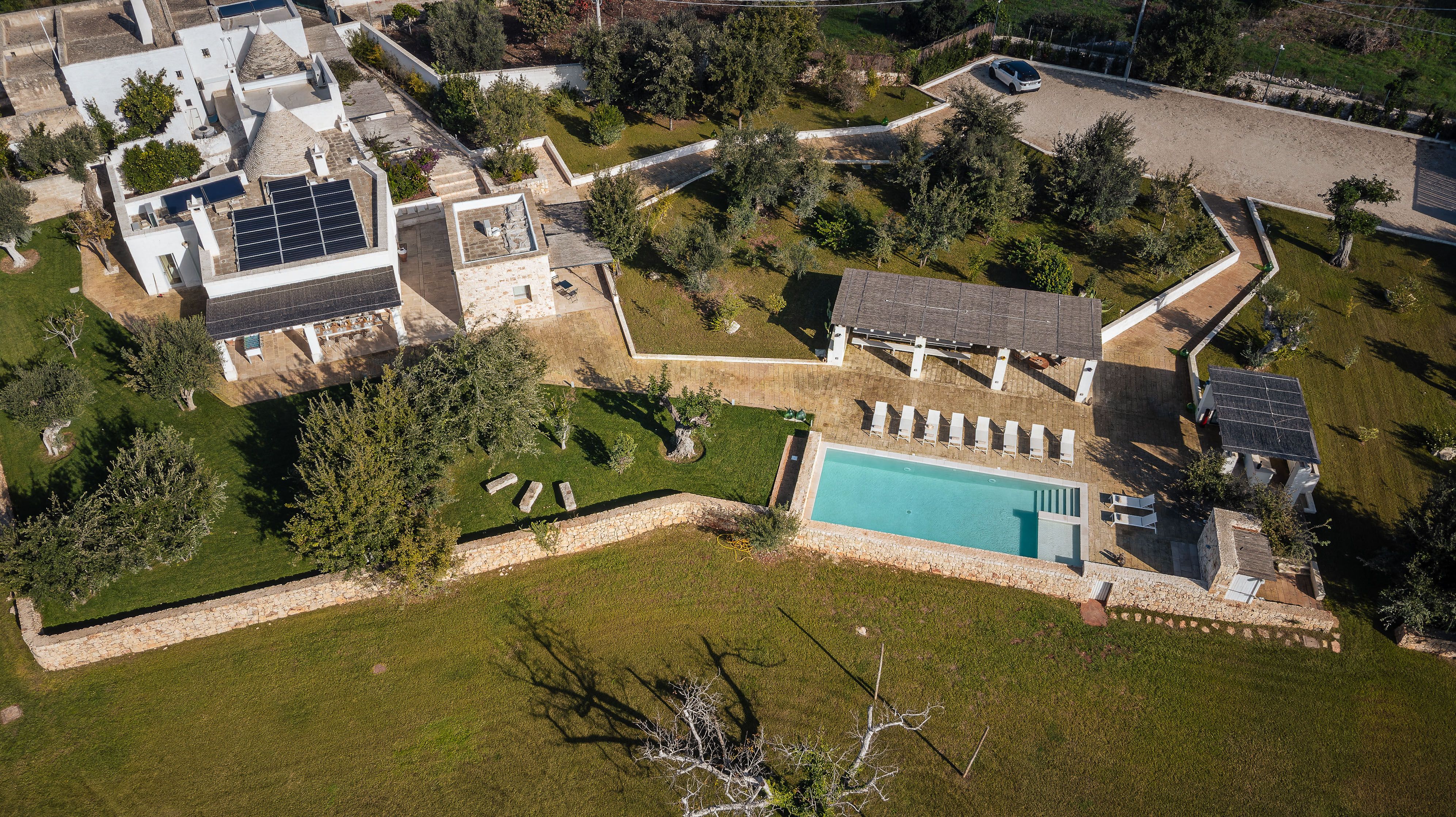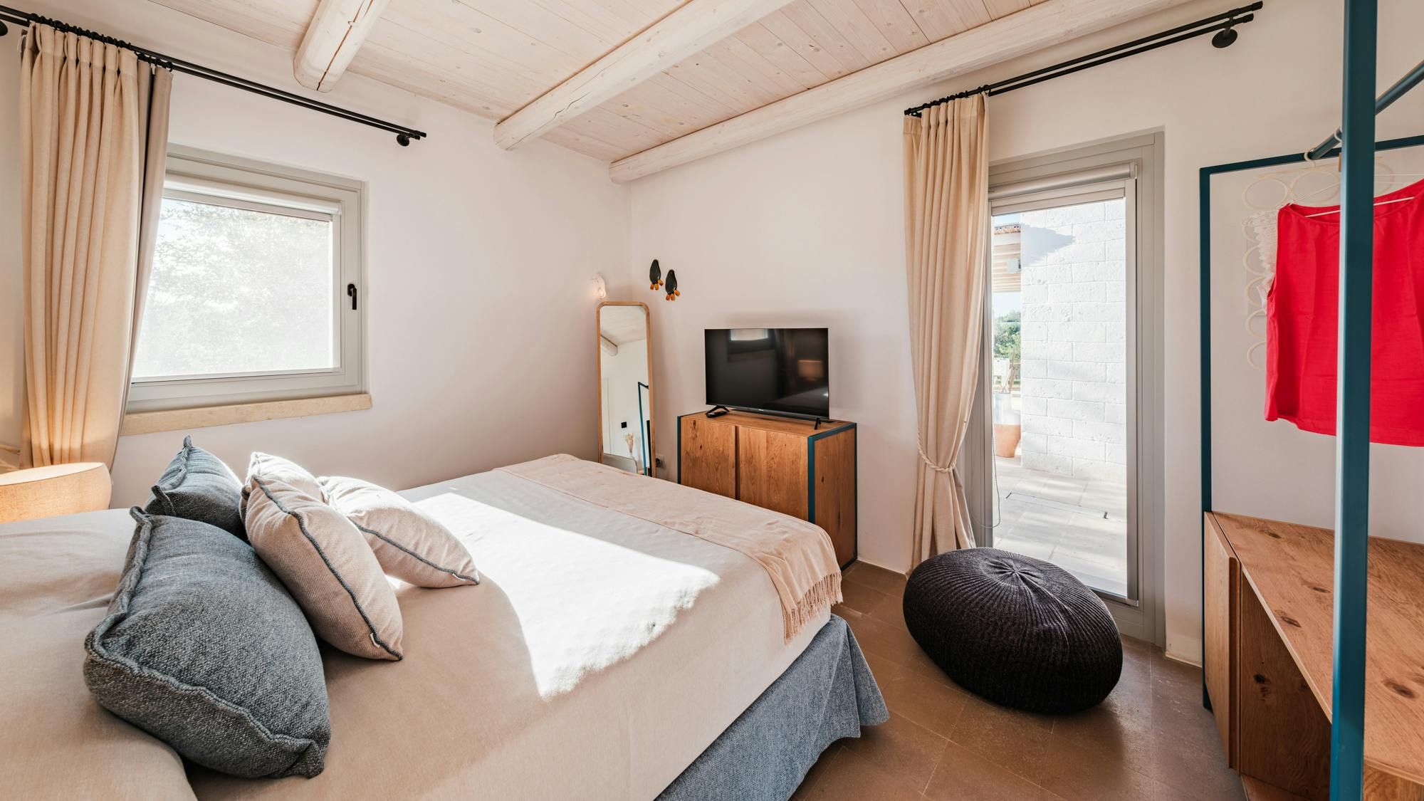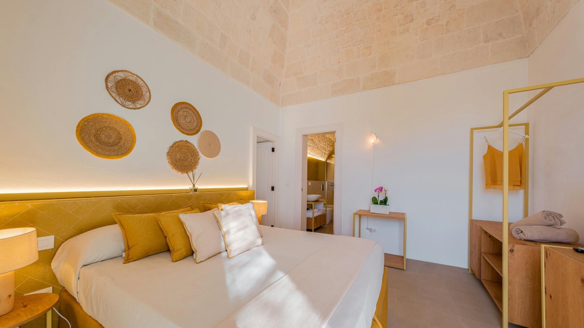 A magnificent base for an Italian escape, this beautiful home has it all. It’s close to the beaches of Polignano a Mare in the picturesque Apulian countryside, surrounded by lawns and lush vegetation, including citrus and olive trees. The outside space includes a salt-water swimming pool and an orange grove atmospherically lit in the evening. There’s also a gazebo and barbecue for alfresco dining. Thanks to a thorough restoration, the villa preserves its authentic historic charm while incorporating modern amenities and style – this is an attractive, chic home. We love the use of natural stone and wood, particularly in the open-plan living and dining space.